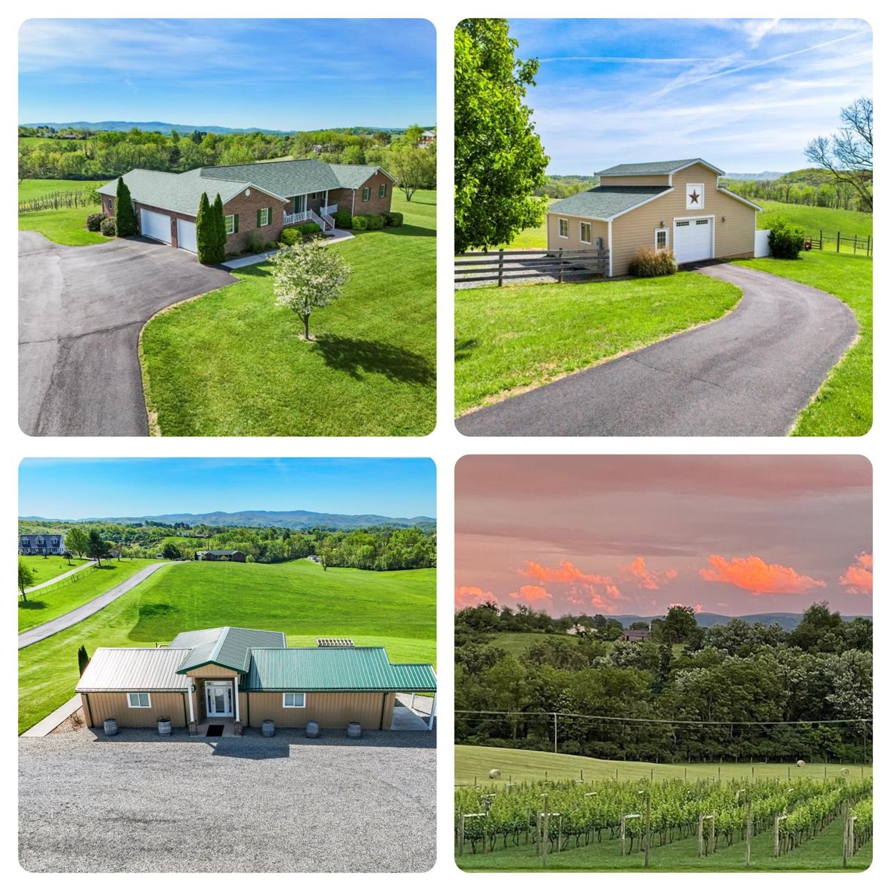 36+acre farm & winery is nestled in the rolling hills of the Blue Ridge Mountains. Stunning Views from this Custom Built One Owner home w/ 4400+ sqft, 3 car garage, covered front porch & rear deck. Open layout w/ 5 bedrooms & 4.5 baths. New Arch. Shingle Roof on House & Barn '24. New HP 4/25. 3-stall barn w/hayloft & heated tack, ideal for equestrian use. The land, 75–80% fenced, includes a riding arena & suited for horses, cattle, hay, &/or vineyard operations. 1840 sqft. winery facility is a turn-key production & tasting event venue operating since August 2018. 695' on the scenic New River Trail, enjoy direct access to 57 miles of trail w/39 miles of it along The New River for biking, hiking, & horseback riding. Located less than 1 mile from I-81,Exit 92 in the Village of Draper near the Draper Community Park & Claytor Lake. This property blends serene country living with prime convenience. Income producing & perfect working farm, horse boarding, winery business, or private retreat.