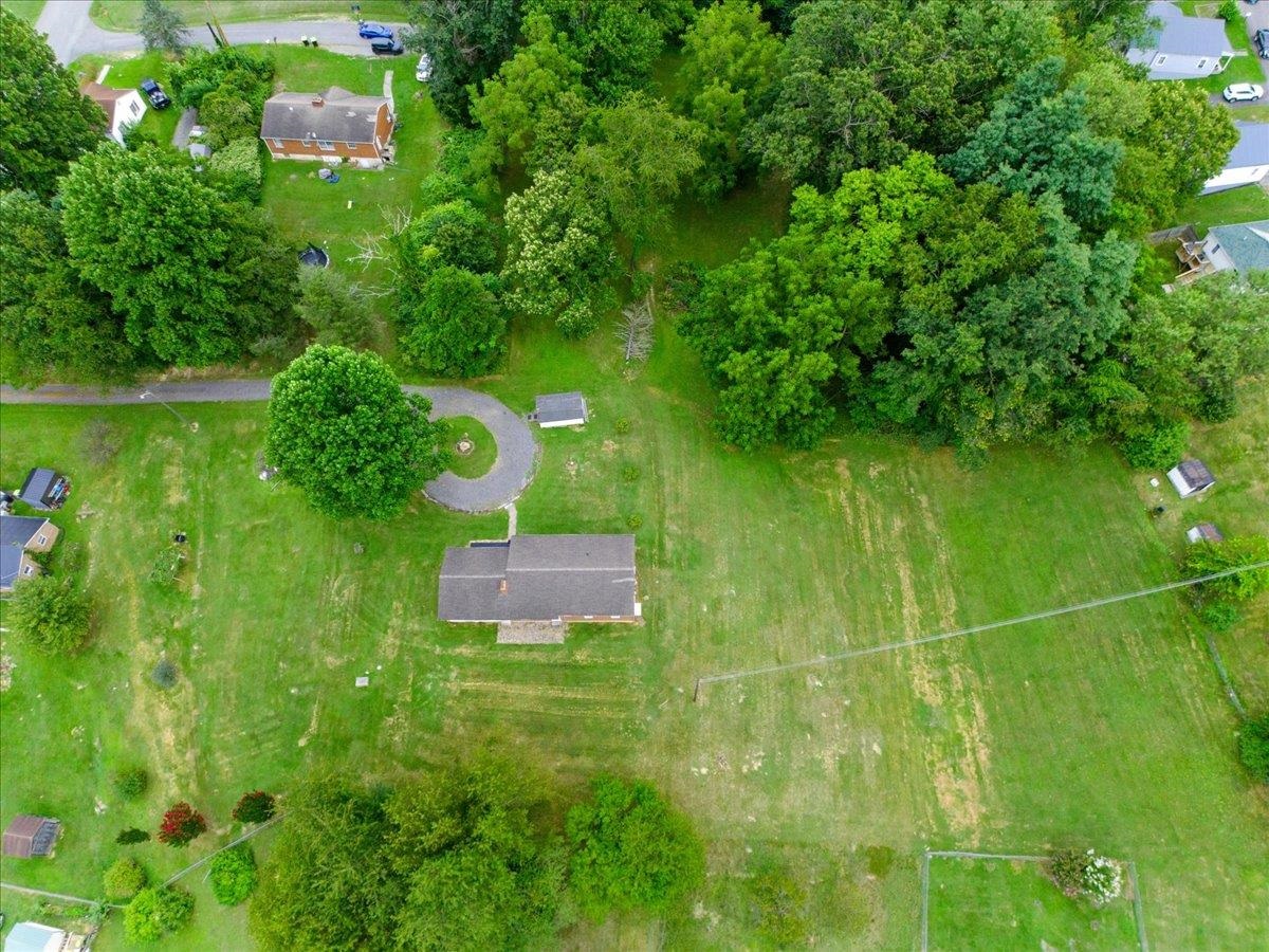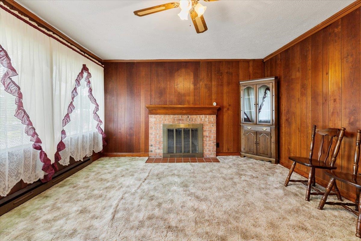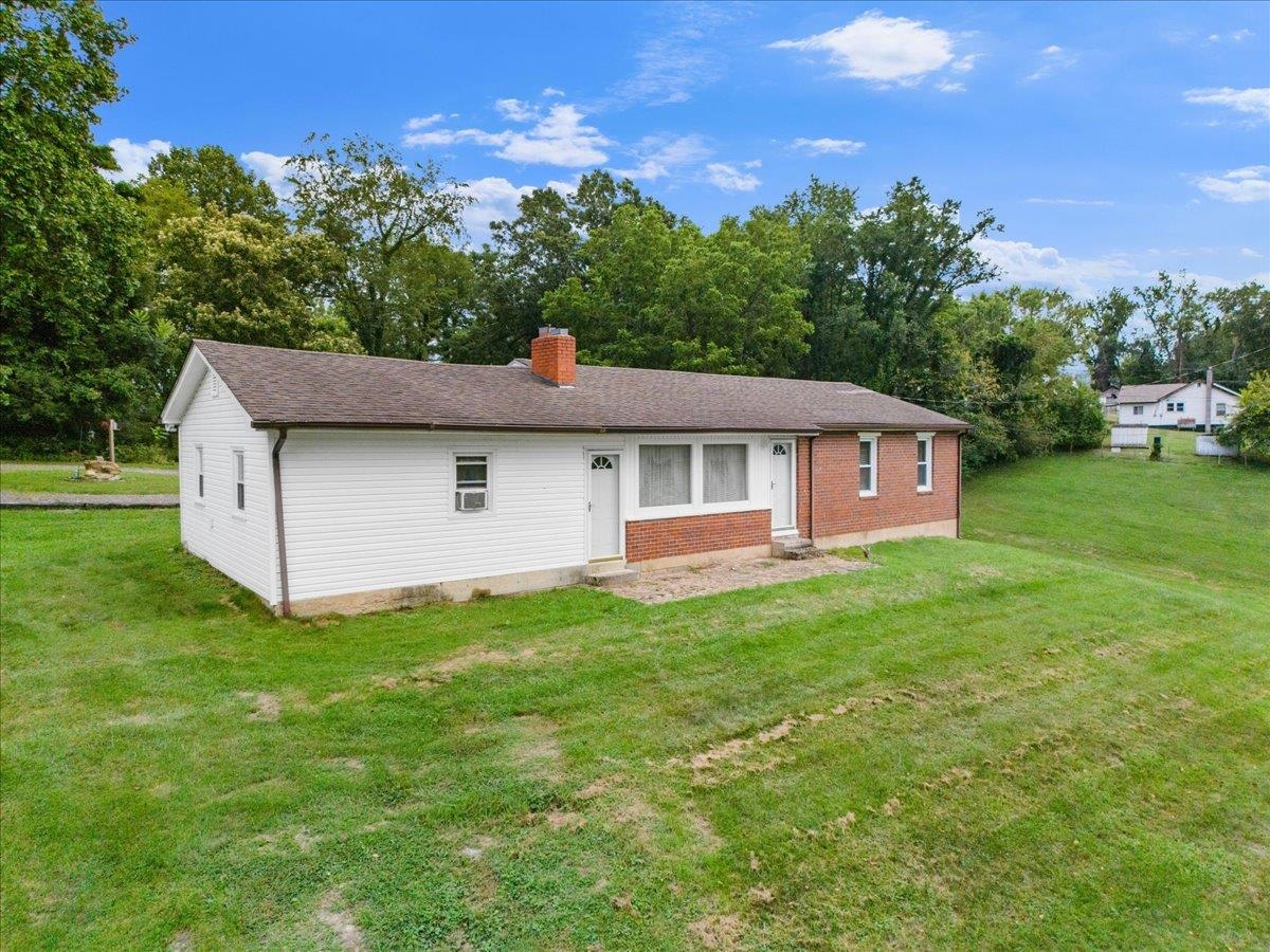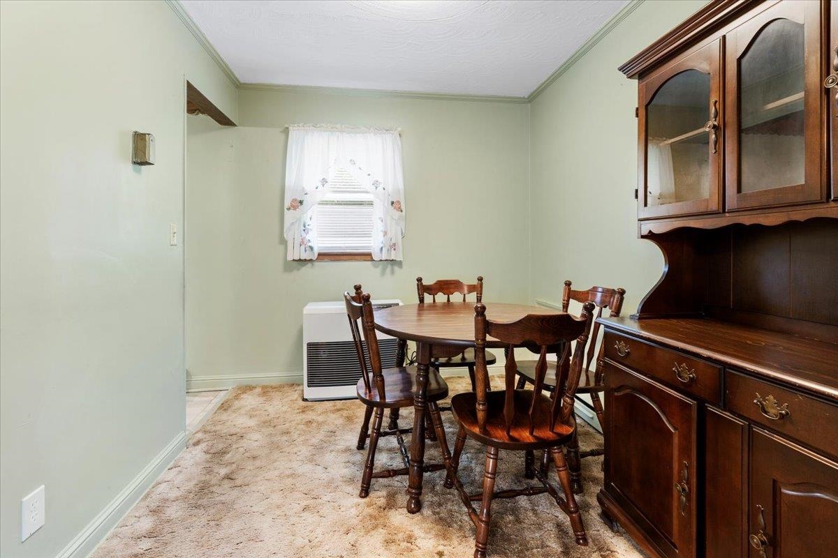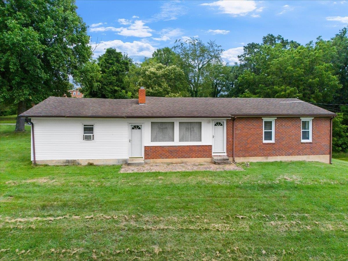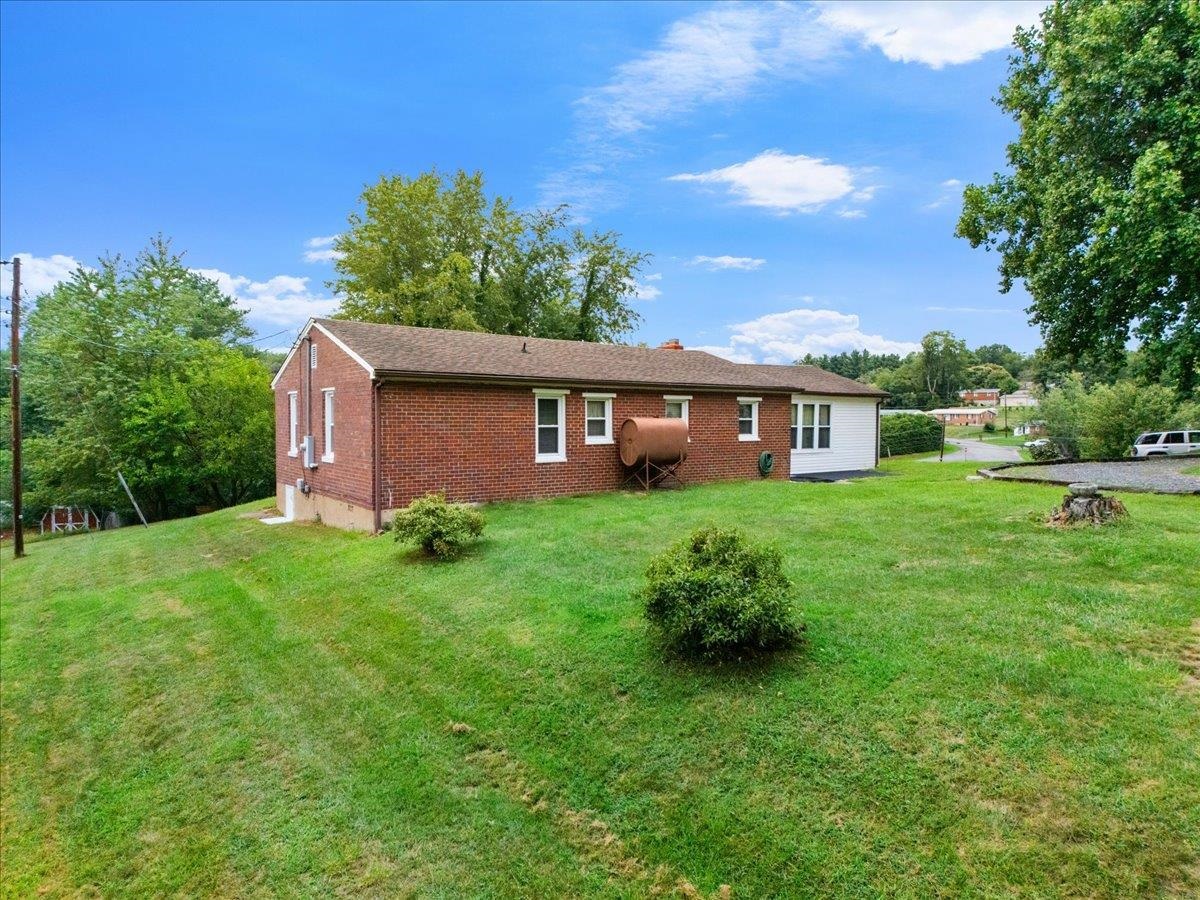 PRICE IMPROVEMENT - Charming Brick Ranch w/Vinyl trim w/3 BR & 1 Bth. Room to add 4th BR & Bath #2. This 0.88-acre property offers a perfect blend of comfort & potential, featuring ample living space & desirable updates. Spacious living room with brick fireplace and ceramic tile hearth (capped, not in use), formal dining room with flue. Large laundry room w/space to add a 2nd full bath, Kit- Recently updated w/NEW vinyl, Range & Ref convey, Carpet over HW in LR, hall, & all 3 BRS. Remodeled bath w/ceramic tile floor & 2 medicine cabinets. EBB w/Room controls, 4 window A/C units convey. MPT kerosene heater in DW convey. Outside - Stone Patio/Carpeted rear patio & stg Bldg w/RIDING MOWER CONVEYS. See documents for details. Septic system w/pump to public sewer. New replacement windows- 2005, DR table, six chairs, & Hutch convey. This well-maintained home offers a rare opportunity to own a large, private lot with great potential for future upgrades/expansion.