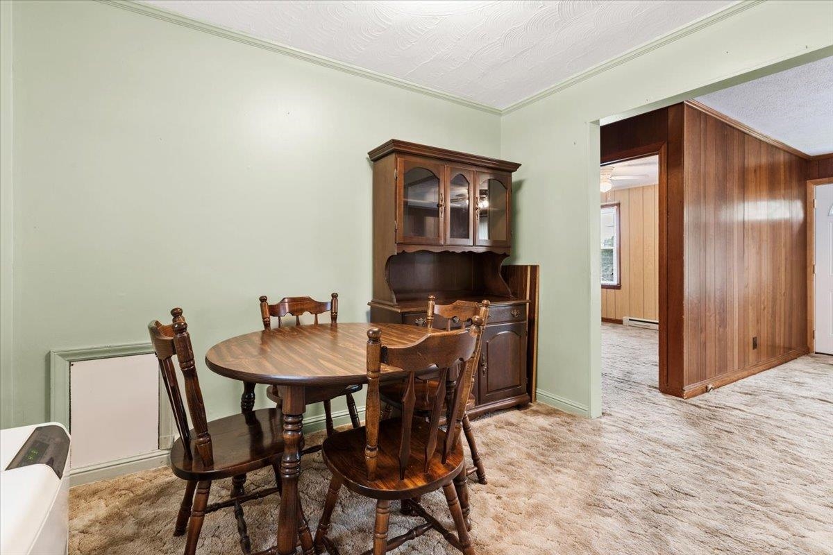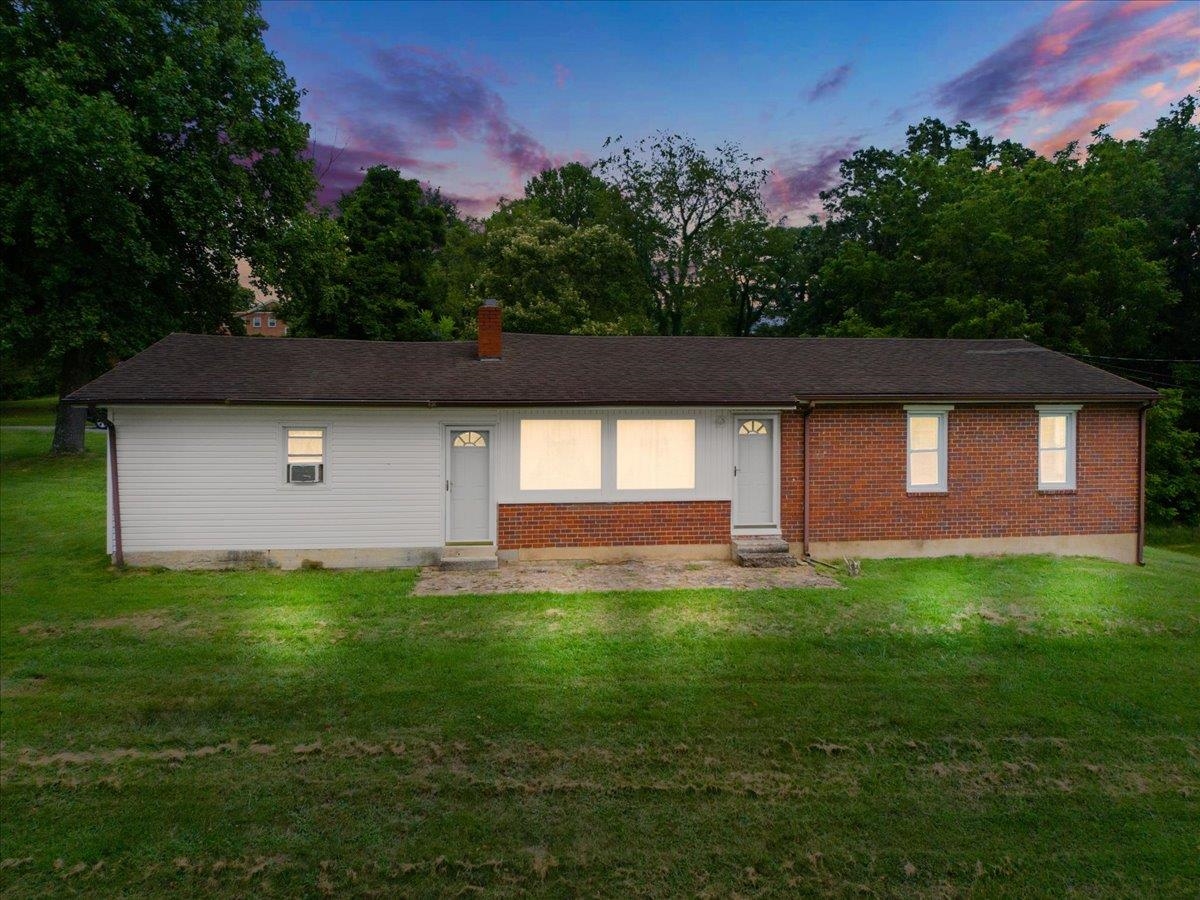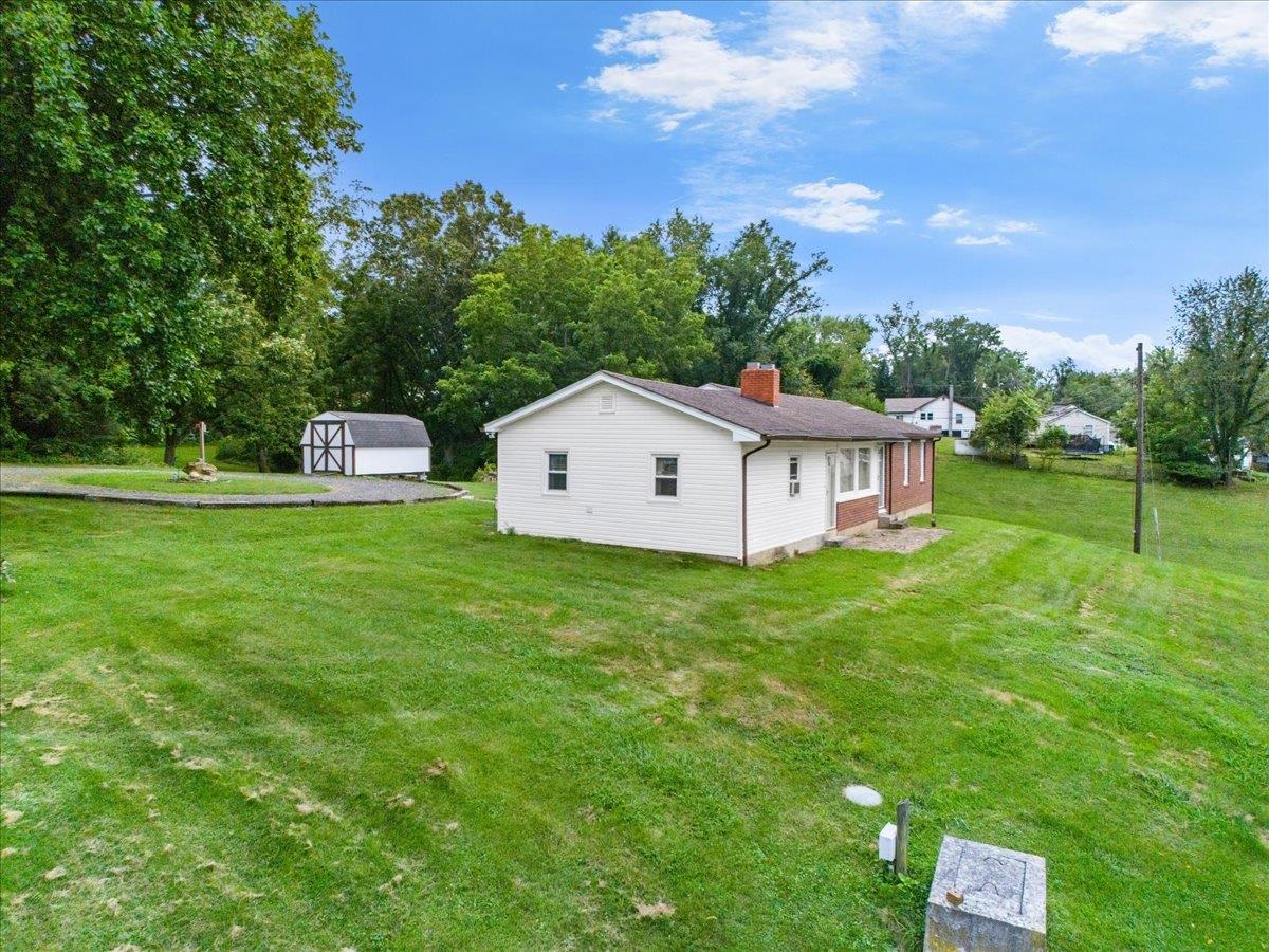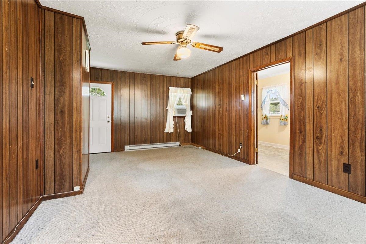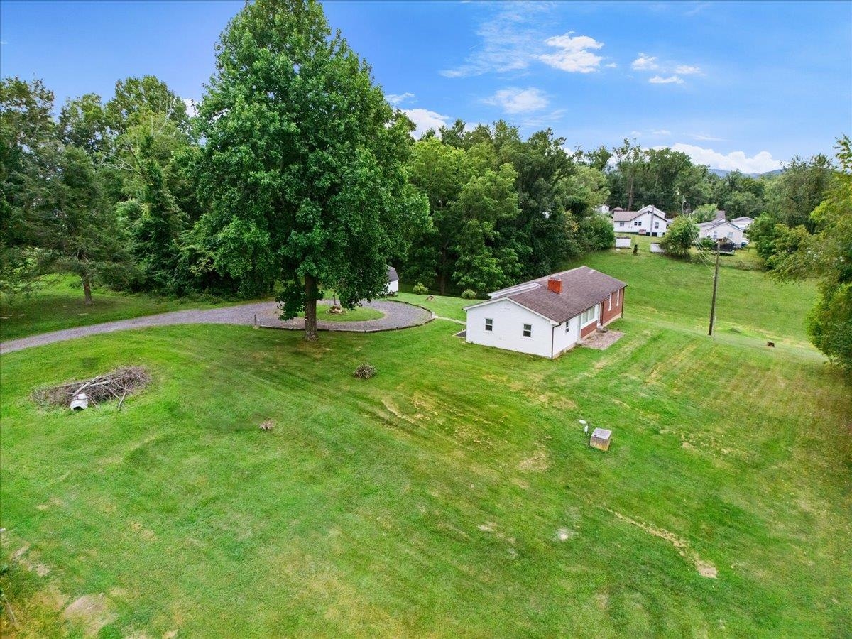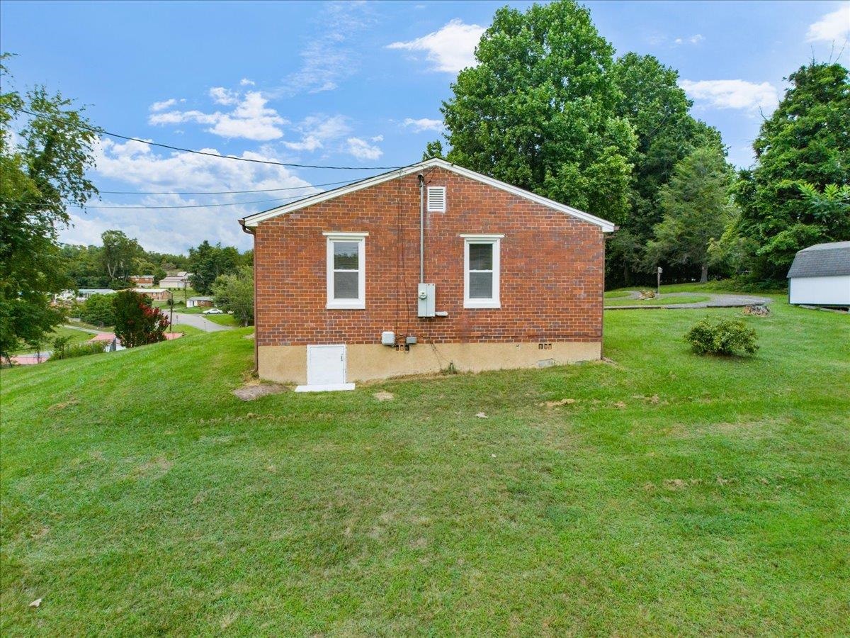 PRICE IMPROVEMENT - Charming Brick Ranch w/Vinyl trim w/3 BR & 1 Bth. Room to add 4th BR & Bath #2. This 0.88-acre property offers a perfect blend of comfort & potential, featuring ample living space & desirable updates. Spacious living room with brick fireplace and ceramic tile hearth (capped, not in use), formal dining room with flue. Large laundry room w/space to add a 2nd full bath, Kit- Recently updated w/NEW vinyl, Range & Ref convey, Carpet over HW in LR, hall, & all 3 BRS. Remodeled bath w/ceramic tile floor & 2 medicine cabinets. EBB w/Room controls, 4 window A/C units convey. MPT kerosene heater in DW convey. Outside - Stone Patio/Carpeted rear patio & stg Bldg w/RIDING MOWER CONVEYS. See documents for details. Septic system w/pump to public sewer. New replacement windows- 2005, DR table, six chairs, & Hutch convey. This well-maintained home offers a rare opportunity to own a large, private lot with great potential for future upgrades/expansion.