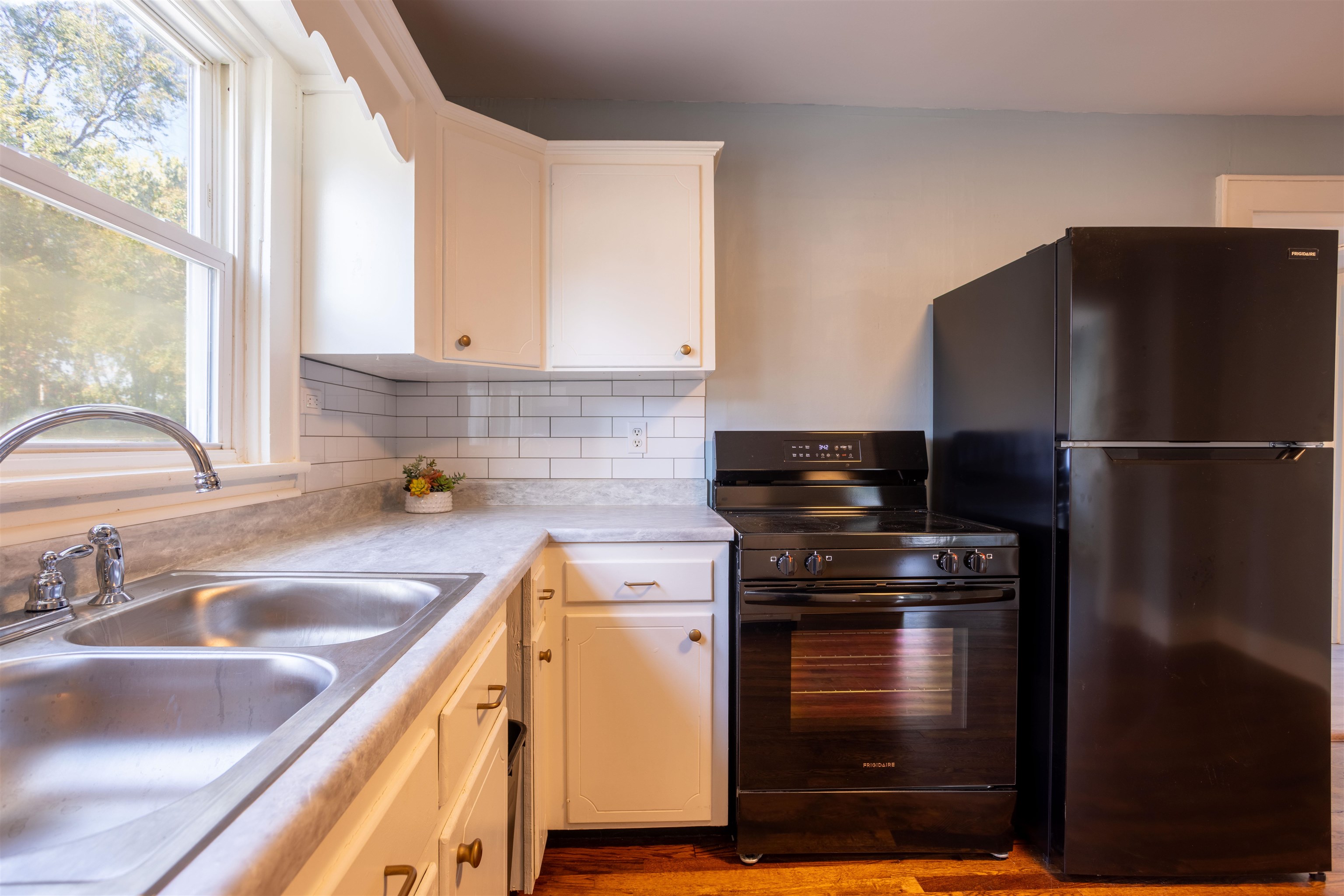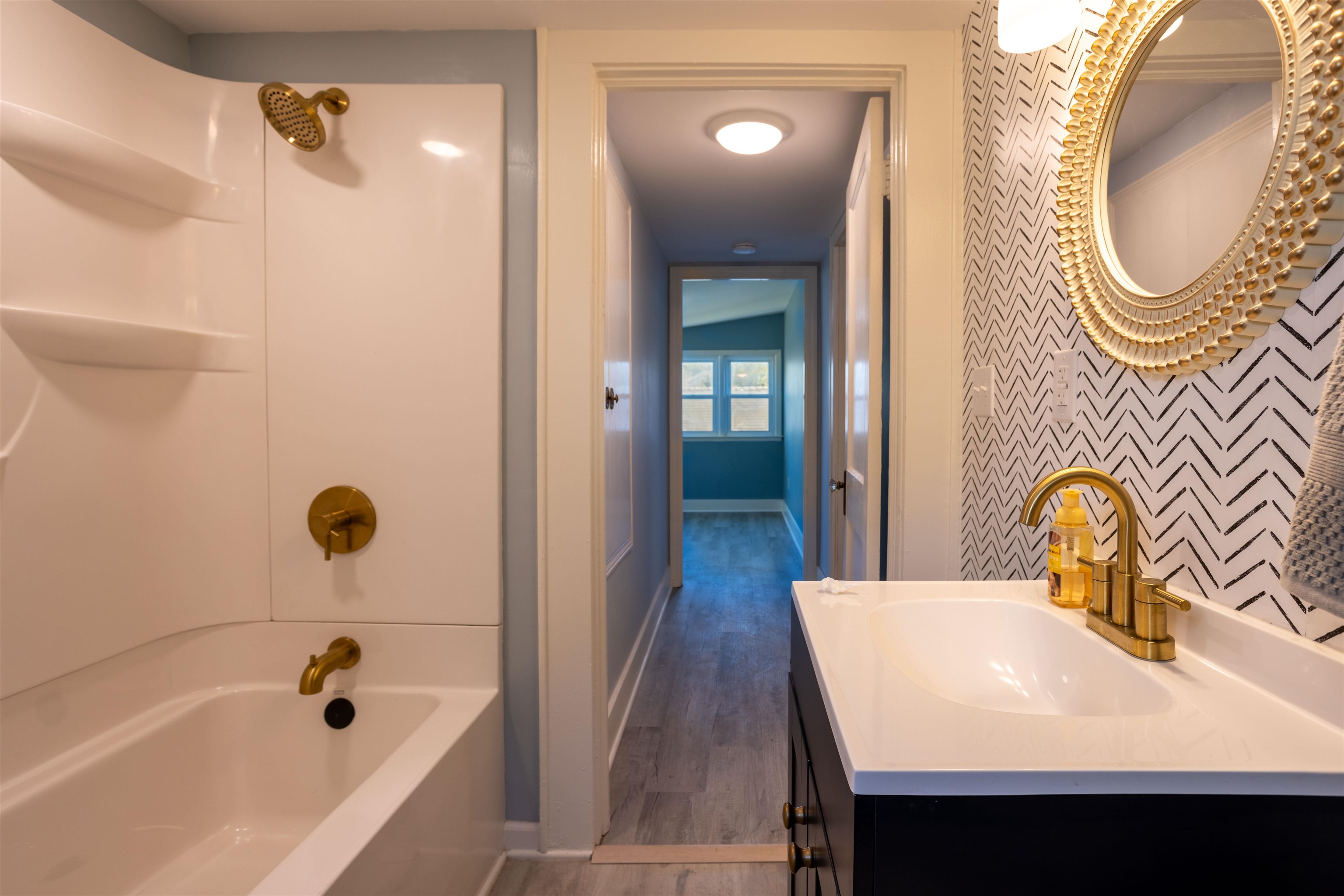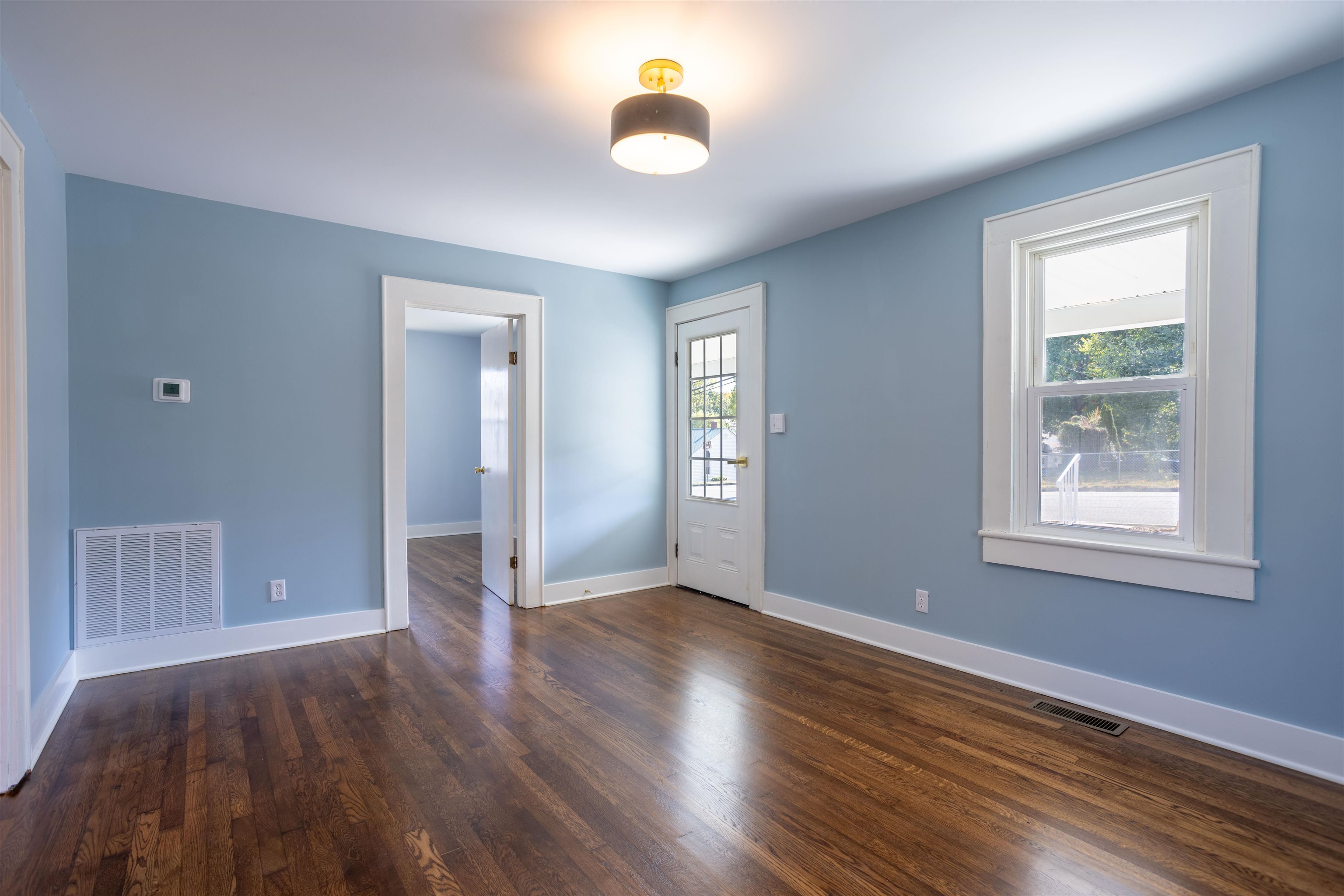 This adorable 2-bedroom, 1-bath home is move-in ready with all the updates you've been looking for! Inside you will find refinished hardwood floors, fresh paint throughout, new flooring, and updated electric. A new heat pump has been added for year-round comfort and the roof has been replaced. The fully renovated bathroom brings a touch of modern into the space. Outside there is a large covered back porch that overlooks the yard. There are 2 driveways to offer plenty of off street parking.