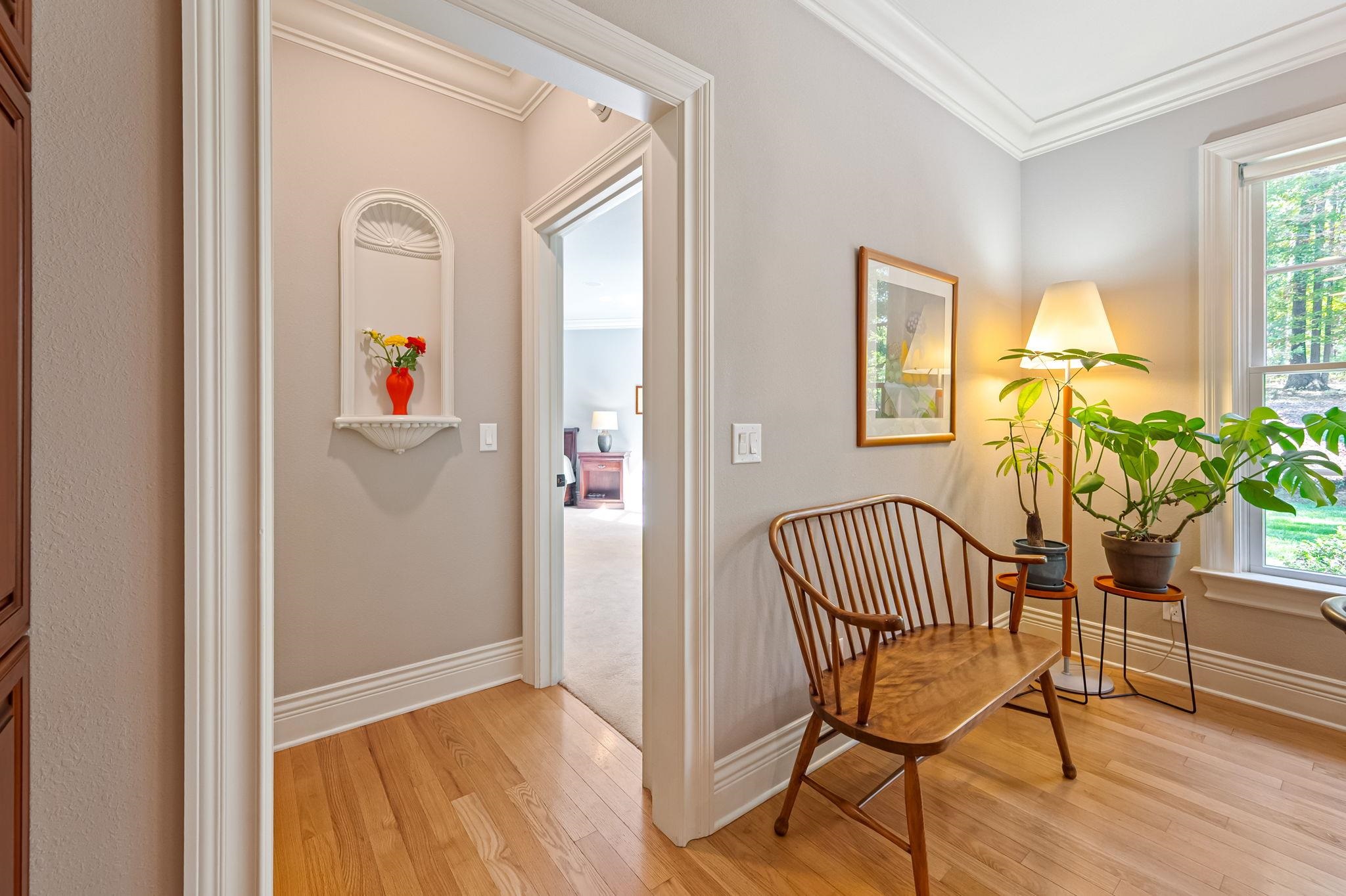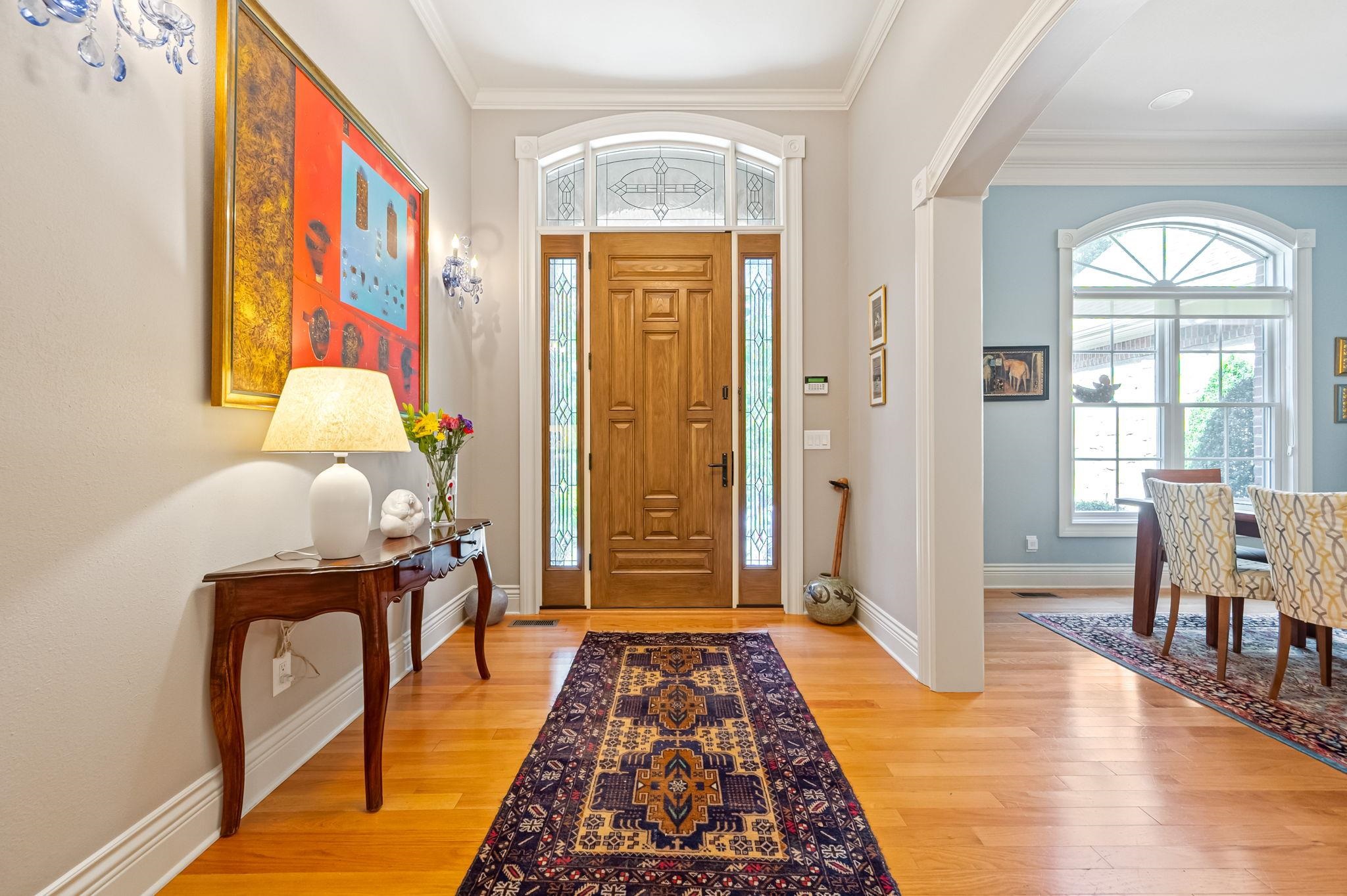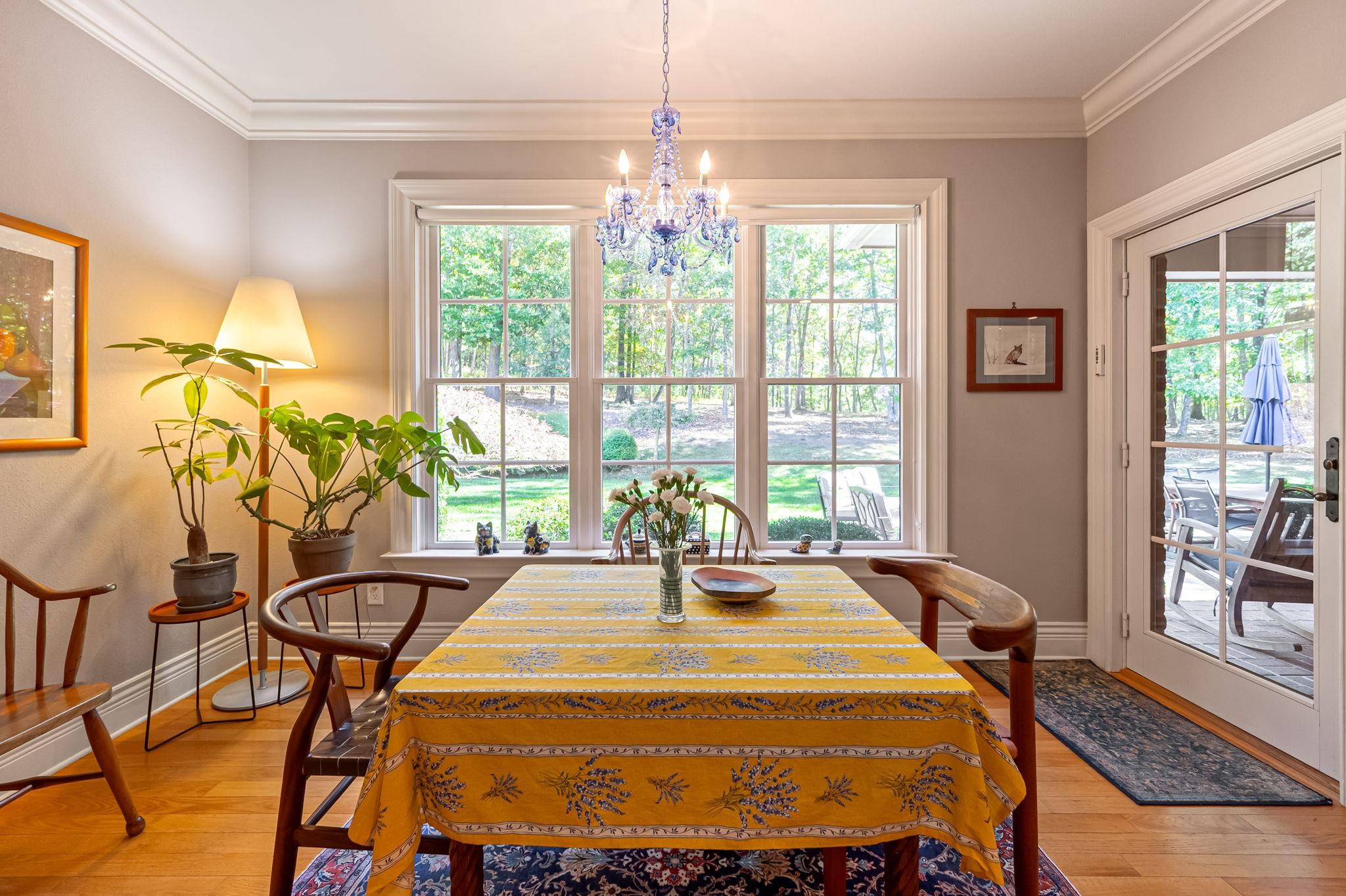 Experience refined comfort in this custom-built Blacksburg home, designed for gracious main-level living and effortless entertaining. Soaring ceilings, elegant moldings, and abundant natural light create an inviting sense of space. The chef’s kitchen features marble countertops, a Viking Professional range, solid cherry cabinetry, and a butler’s pantry with wet bar—perfect for hosting family and friends. The primary suite offers a spa-like bath with a self-cleaning Jacuzzi tub and walk-in closet, while a Rumford masonry fireplace adds warmth and charm to the open living area. Enjoy SONOS sound throughout, oak and tile floors, and an oversized garage with a heated third bay—ideal for a workshop or car enthusiast. Outside, unwind on the brick veranda or stone patio surrounded by mature trees and landscaped gardens. Nestled at the end of a quiet cul-de-sac, this home blends privacy, elegance, and comfort in an exceptionally peaceful setting minutes to downtown Blacksburg.