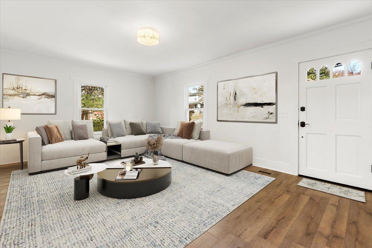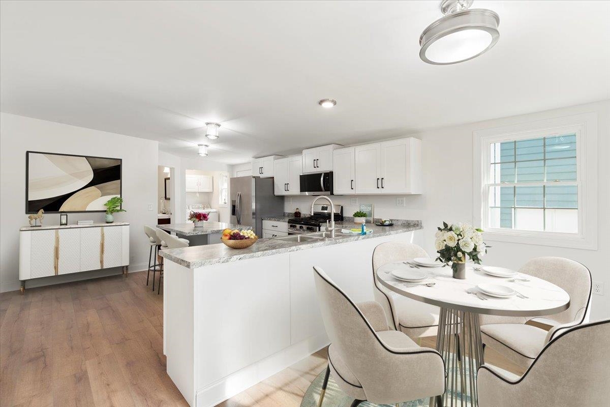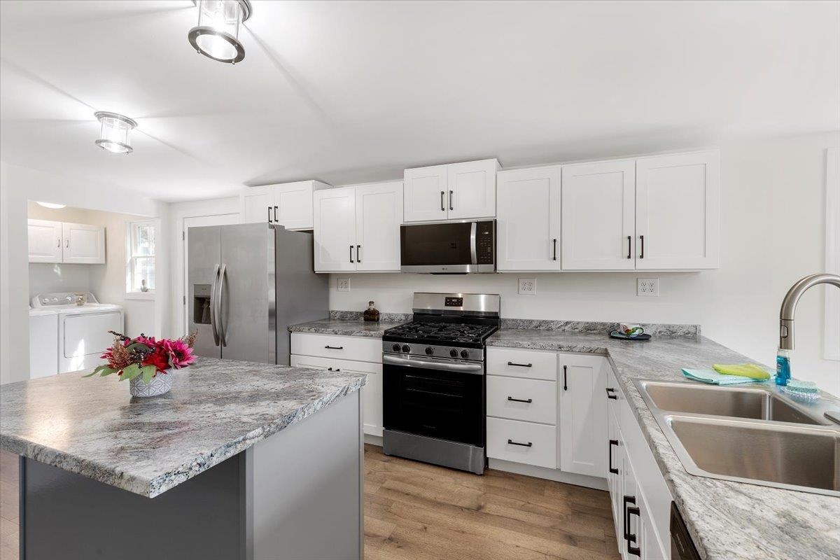 Welcome home to this beautifully renovated 3BR, 2.5BA ranch offering 1,590 sq ft of stylish, comfortable one-level living! Built in 1903 and fully updated with a new heat pump, updated electrical, roof, plumbing. Enjoy LVP flrs throughout, abundant natural light, & a flexible floor plan perfect for entertaining. Kitchen is a showpiece with full appliance package, island with bar seating, and ample cabinetry for all your culinary essentials. High ceilings & modern lighting make the room feel effortlessly sophisticated and beautifully spacious. Three generous bedrooms share 2.5 baths, ideal for family living or hosting guests. Each bedroom feels light, bright, and welcoming—ready to fit your lifestyle, whether you need cozy sleeping spaces, a home office, or the perfect spot to relax. Full basement with outside access for a great hobby space, plus two outbuildings, one with electricity for playhouse or studio, and one for trash cans or outdoor equipment. Move-in ready & waiting for YOU!