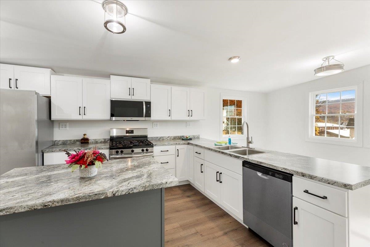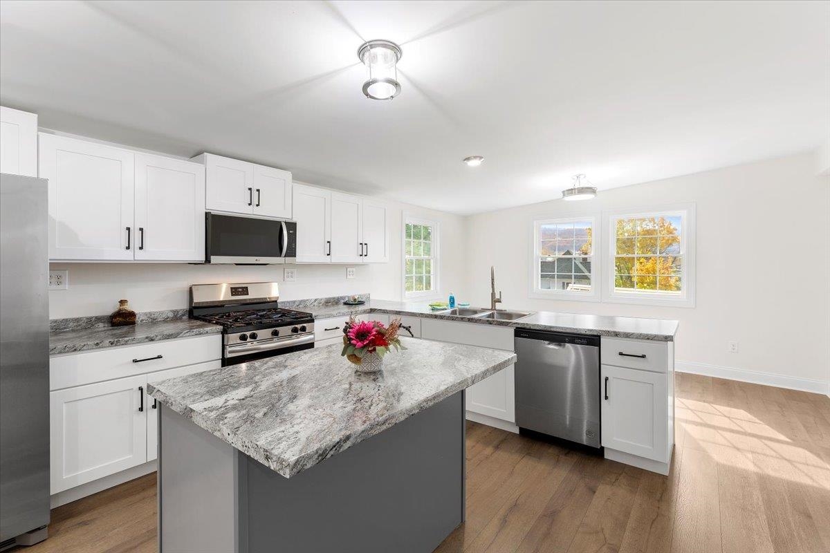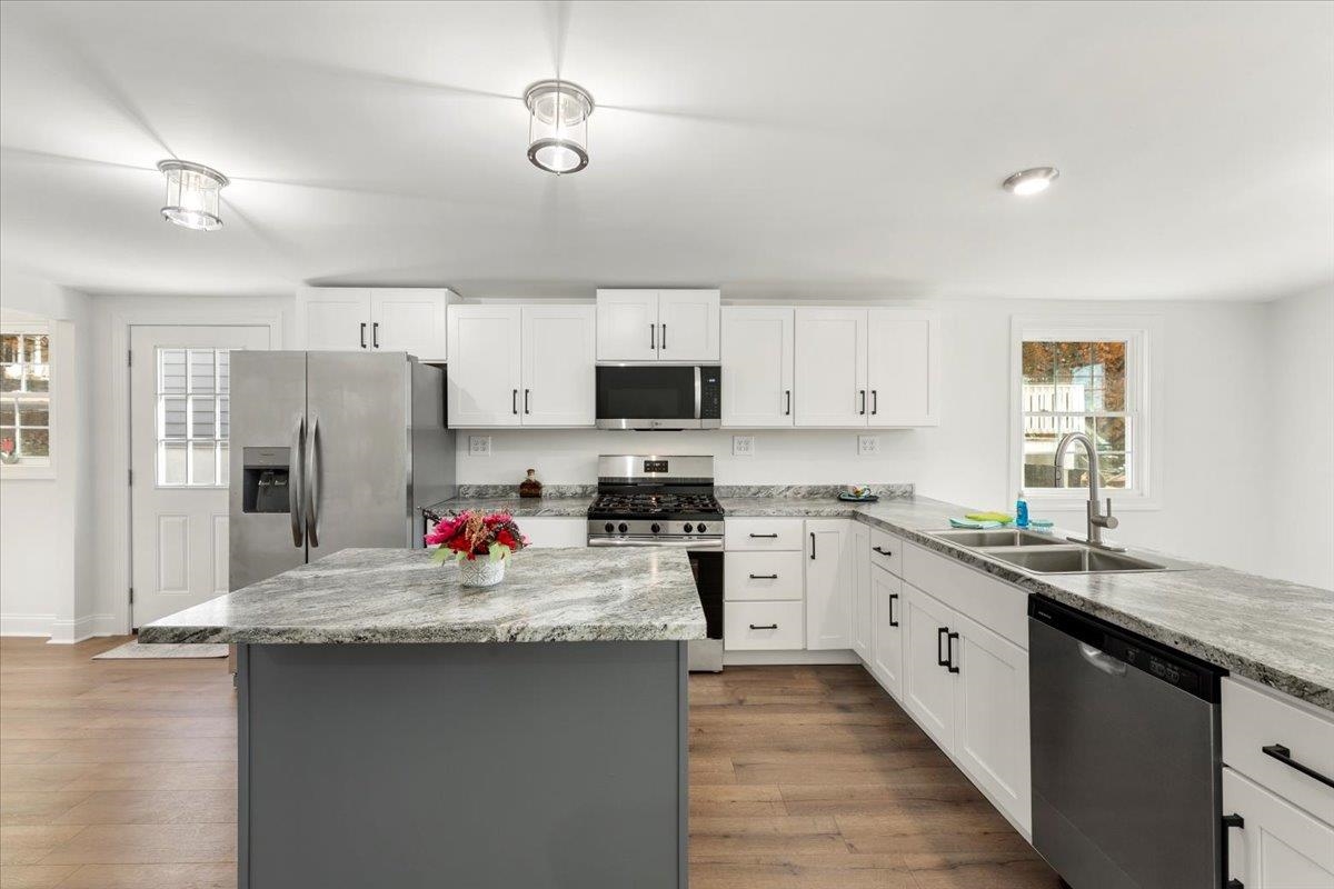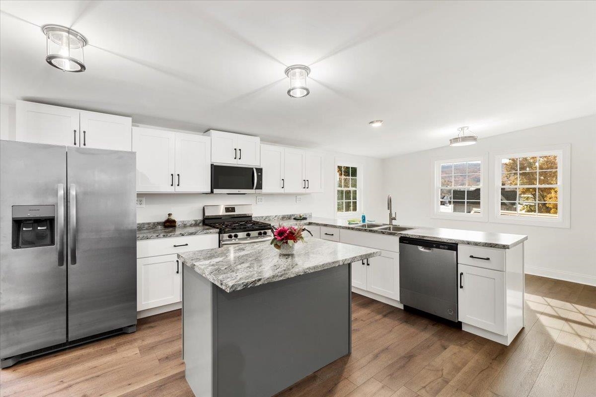 Welcome home to this beautifully renovated 3BR, 2.5BA ranch offering 1,590 sq ft of stylish, comfortable one-level living! Built in 1903 and fully updated with a new heat pump, updated electrical, roof, plumbing. Enjoy LVP flrs throughout, abundant natural light, & a flexible floor plan perfect for entertaining. Kitchen is a showpiece with full appliance package, island with bar seating, and ample cabinetry for all your culinary essentials. High ceilings & modern lighting make the room feel effortlessly sophisticated and beautifully spacious. Three generous bedrooms share 2.5 baths, ideal for family living or hosting guests. Each bedroom feels light, bright, and welcoming—ready to fit your lifestyle, whether you need cozy sleeping spaces, a home office, or the perfect spot to relax. Full basement with outside access for a great hobby space, plus two outbuildings, one with electricity for playhouse or studio, and one for trash cans or outdoor equipment. Move-in ready & waiting for YOU!