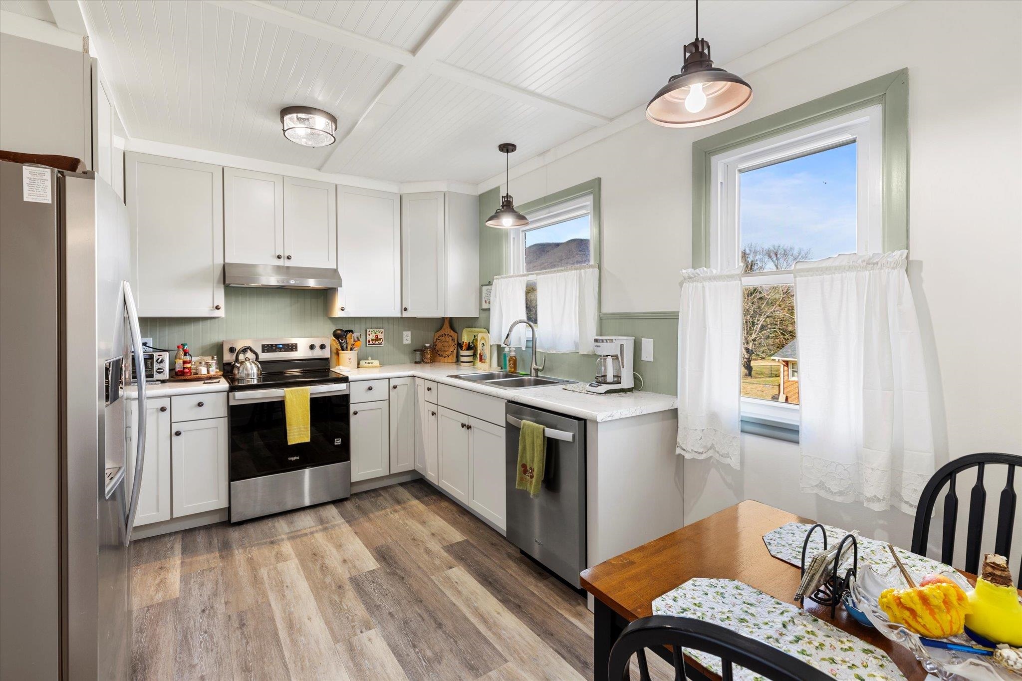Beautiful 3-bedroom, 2-bath all-brick home overlooking the Giles Country Club Golf Course and Angel’s Rest mountain. This extensively renovated home features freshly sanded and stained hardwood floors, and a beautifully updated kitchen with all new appliances. Major upgrades include new front porch, new electrical, plumbing, fresh paint throughout, new lighting throughout the house, and a new garage door. Enjoy multiple living spaces, including a living room with fireplace, a sun room/office, a partially finished area in the basement (game room, etc.), and a wood stove downstairs. A fenced side yard offers great outdoor space for pets, and the double lot provides added privacy and value. Almost everything in this home has been replaced. Beautiful views! Fantastic location, right down the road from the Country Club, in the high-demand Fort Branch neighborhood. Given the recent renovations, the home is being sold "As Is". Must see to appreciate!