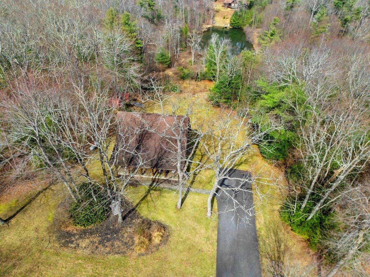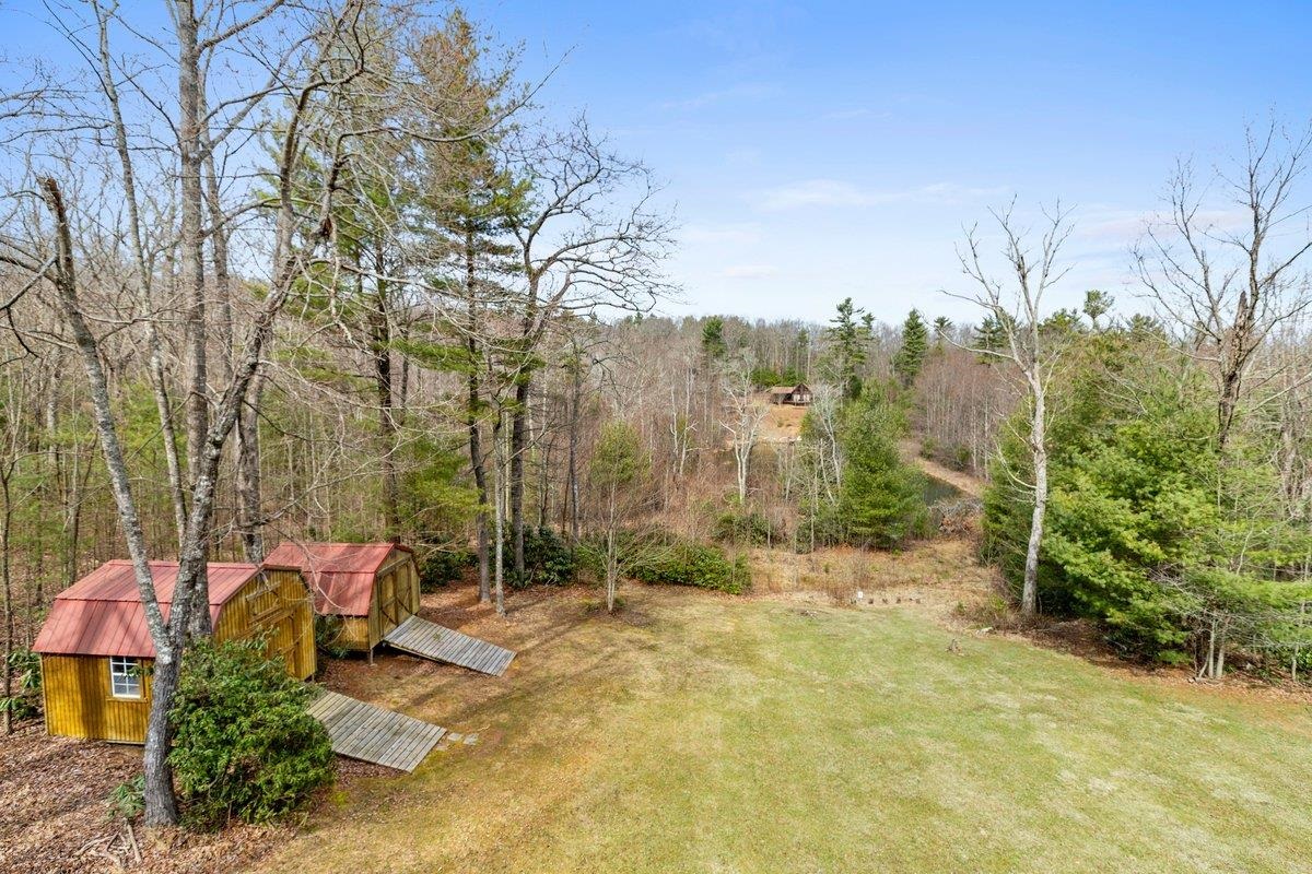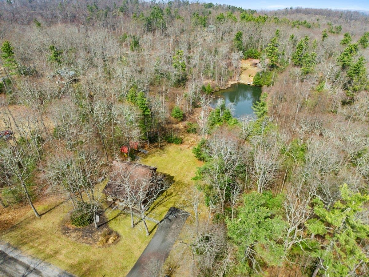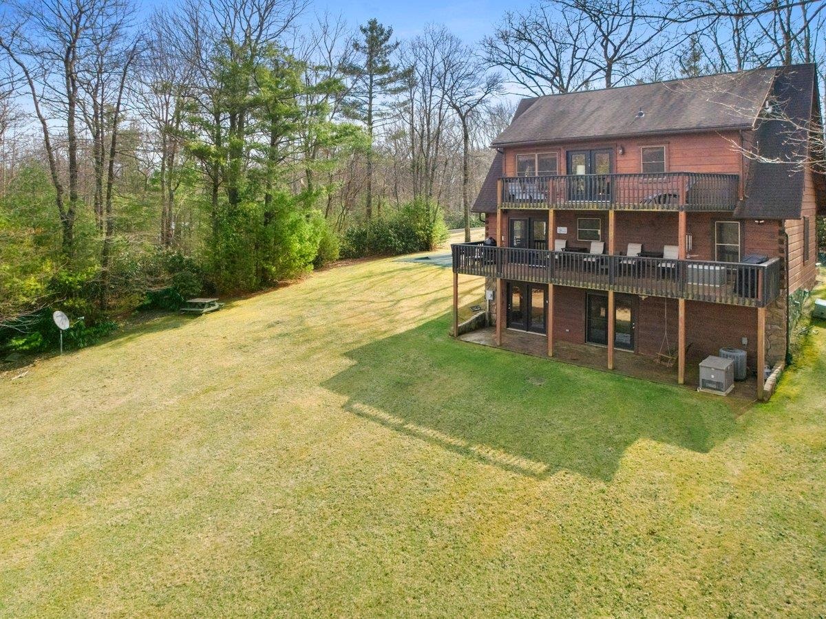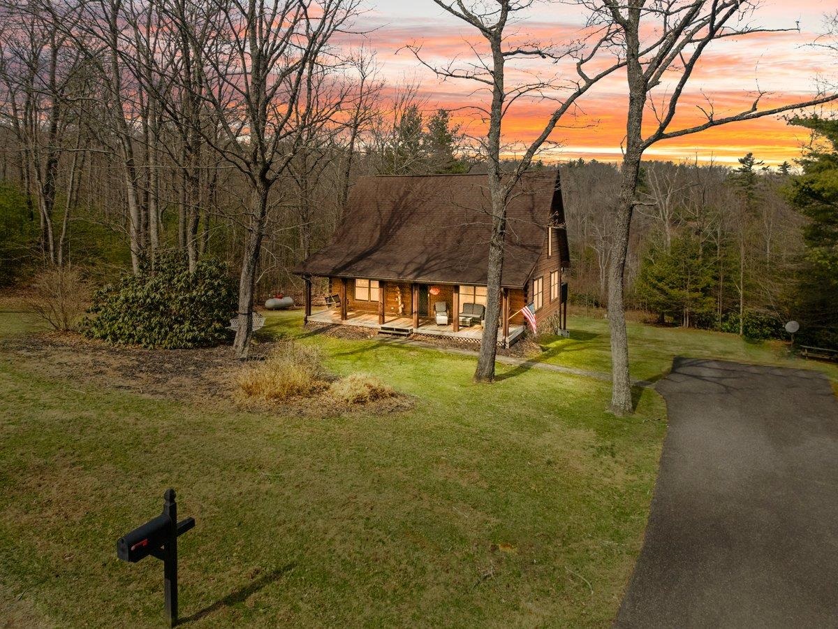 CABIN near GROUNDHOG MOUNTAIN OVERLOOK - Tucked away in a serene setting yet easily accessible, this beautiful multi-level log cabin is located just off the Blue Ridge County Parkway and in close proximity to the scenic Groundhog Mountain Overlook. Inside, you'll find cathedral ceilings with exposed beams, knotty pine throughout, & a gas log fireplace that anchors the inviting open floor plan. The kitchen features beautiful custom cabinetry, granite countertops, an oversized pantry, & all appliances convey. The spacious layout includes three bedrooms, two full baths, & one half bath, along with walk in closet and whole house generator. Outdoor spaces are just as impressive, with a paved driveway, two storage sheds, covered porch, several balconies & decks, and a stone patio - all overlooking a peaceful pond & the surrounding natural beauty. This property offers the perfect balance of seclusion, charm, & convenience. Don't miss this opportunity!