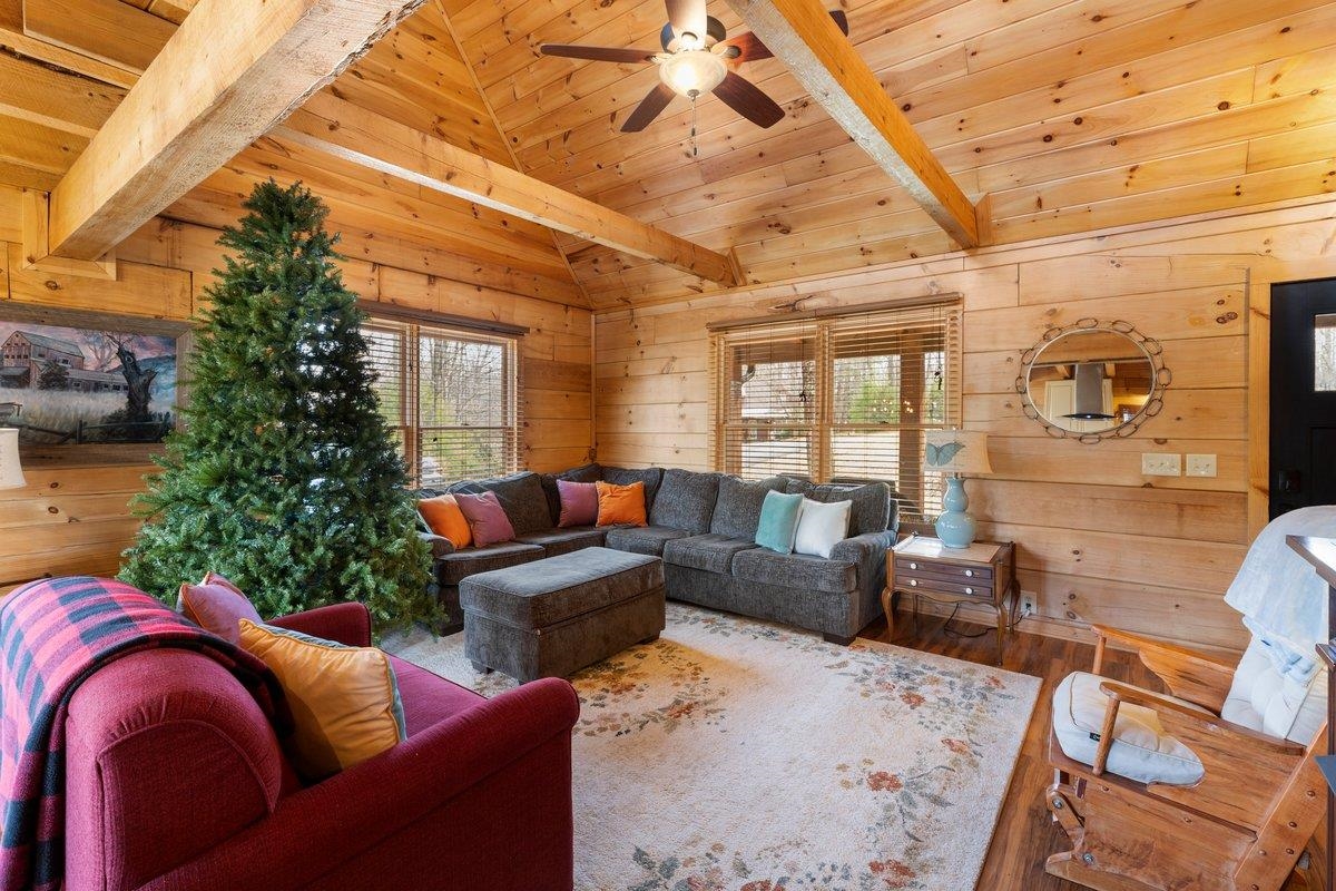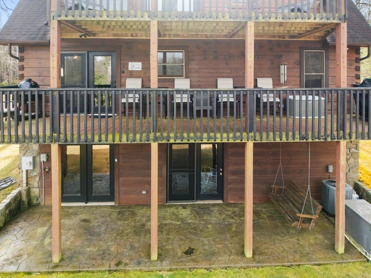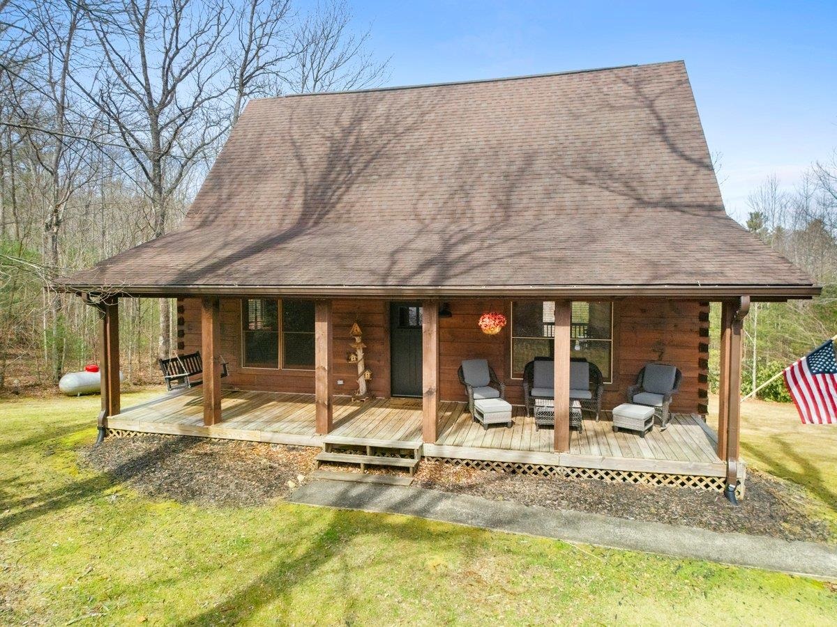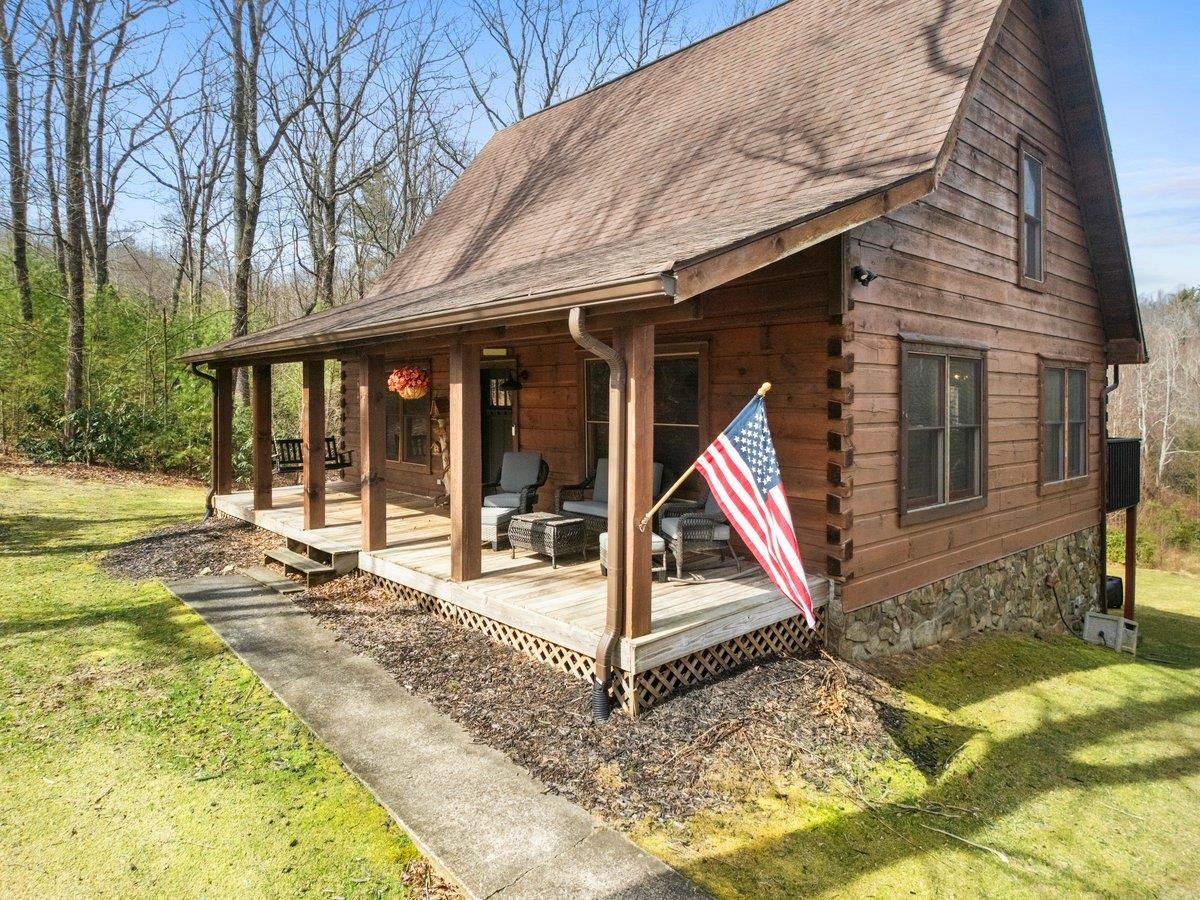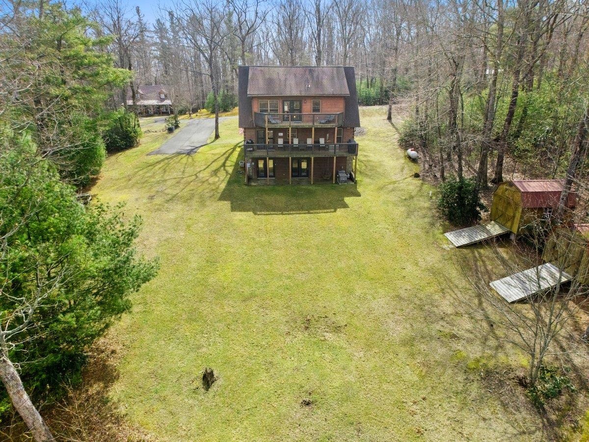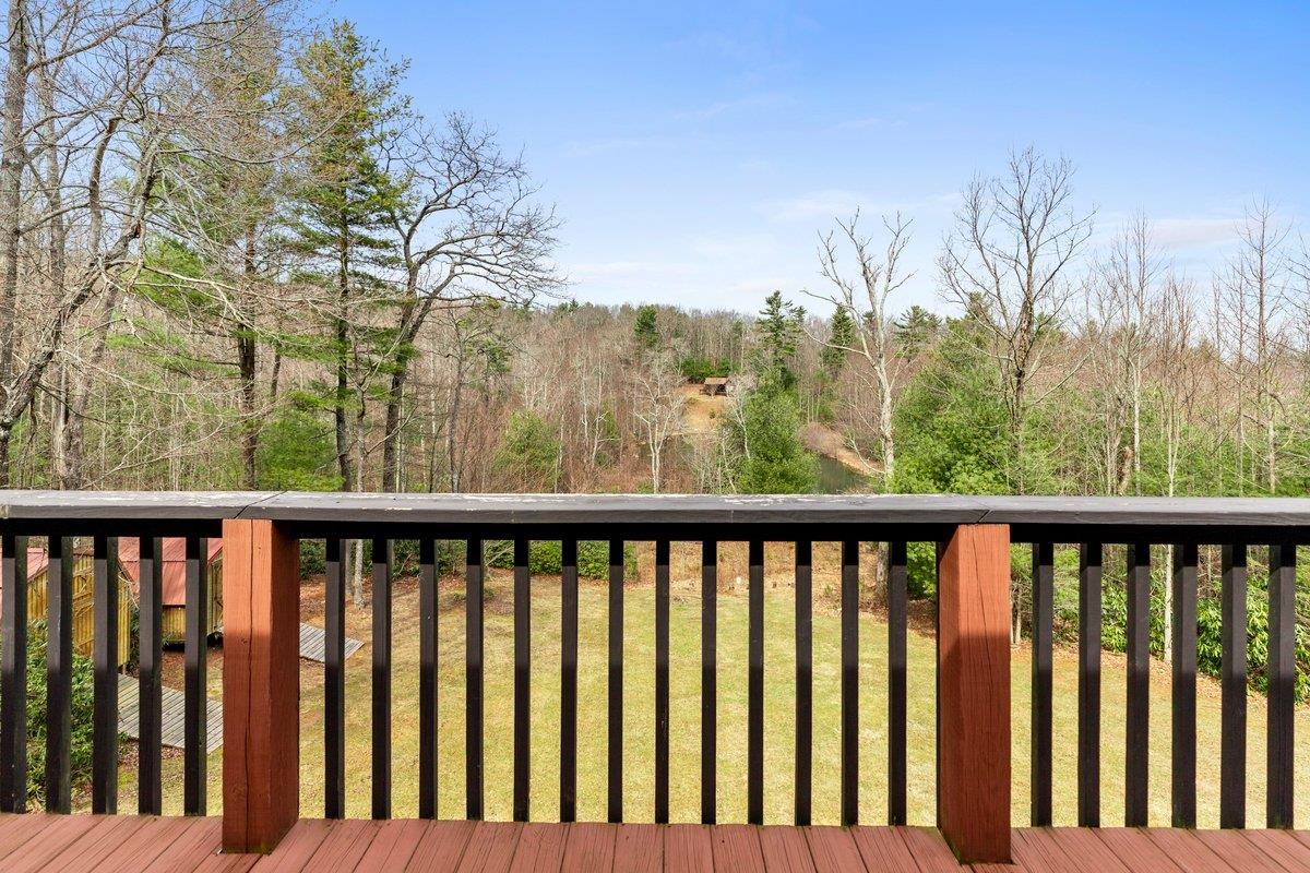 CABIN near GROUNDHOG MOUNTAIN OVERLOOK - Tucked away in a serene setting yet easily accessible, this beautiful multi-level log cabin is located just off the Blue Ridge County Parkway and in close proximity to the scenic Groundhog Mountain Overlook. Inside, you'll find cathedral ceilings with exposed beams, knotty pine throughout, & a gas log fireplace that anchors the inviting open floor plan. The kitchen features beautiful custom cabinetry, granite countertops, an oversized pantry, & all appliances convey. The spacious layout includes three bedrooms, two full baths, & one half bath, along with walk in closet and whole house generator. Outdoor spaces are just as impressive, with a paved driveway, two storage sheds, covered porch, several balconies & decks, and a stone patio - all overlooking a peaceful pond & the surrounding natural beauty. This property offers the perfect balance of seclusion, charm, & convenience. Don't miss this opportunity!