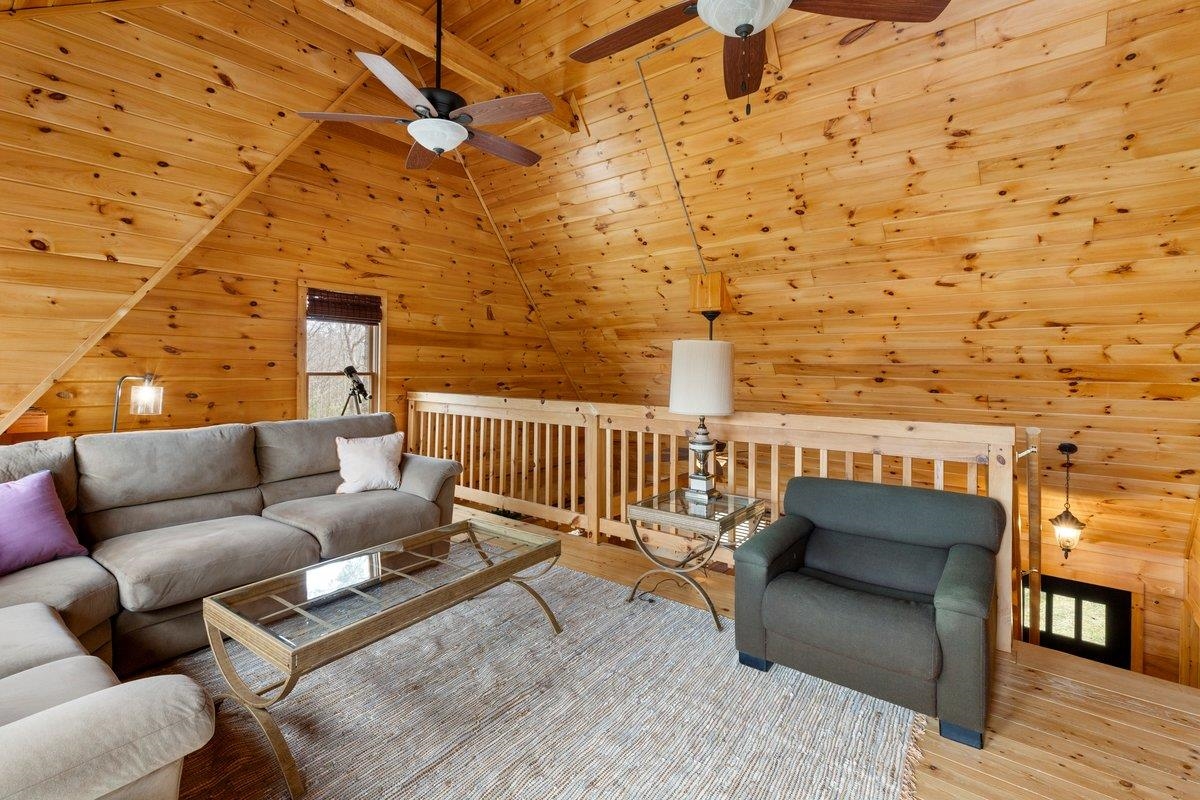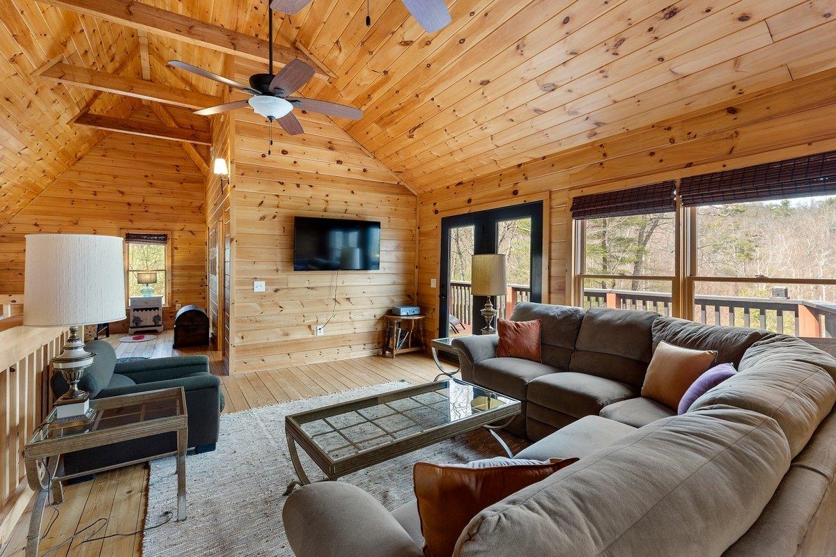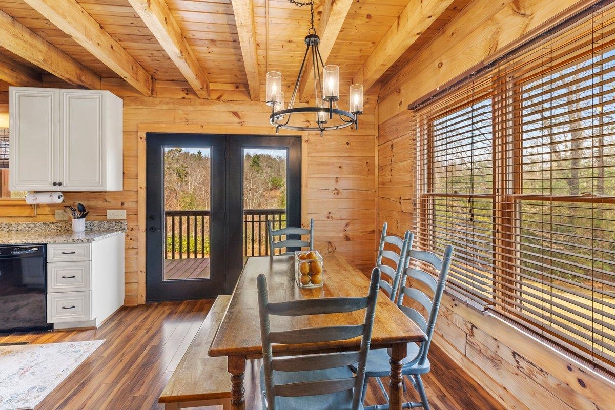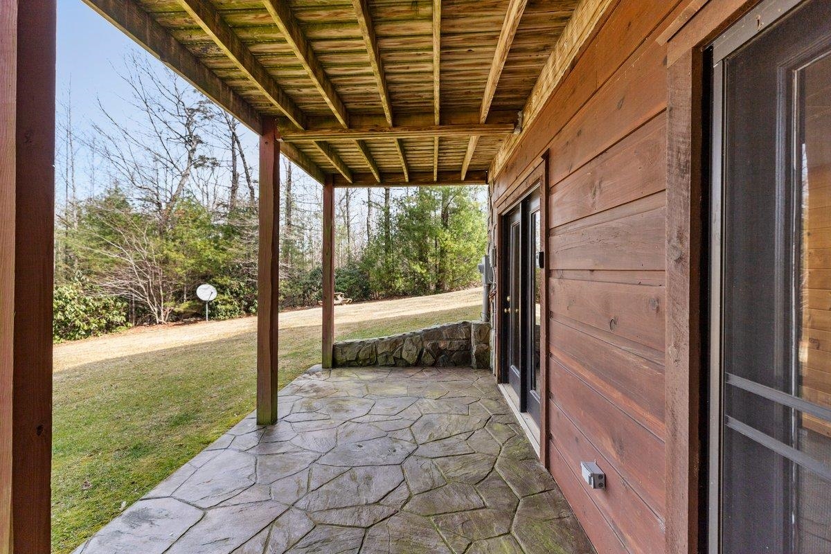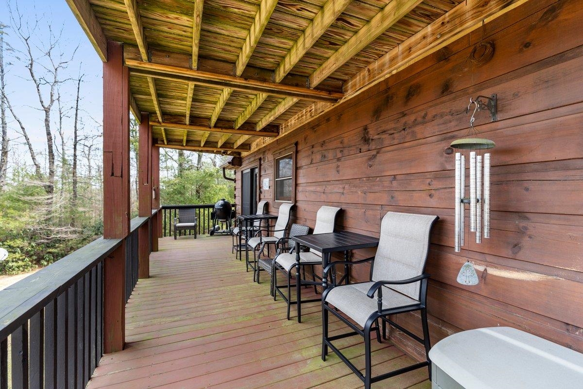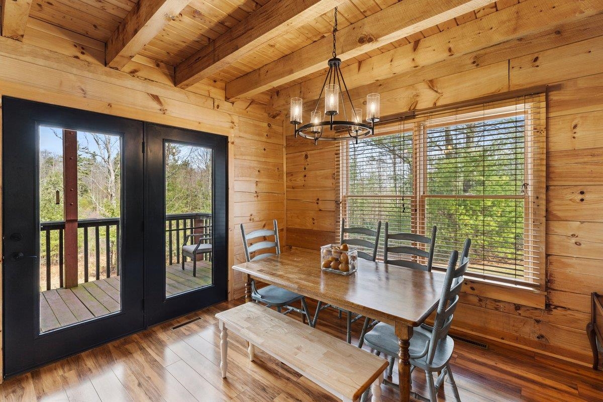 CABIN near GROUNDHOG MOUNTAIN OVERLOOK - Tucked away in a serene setting yet easily accessible, this beautiful multi-level log cabin is located just off the Blue Ridge County Parkway and in close proximity to the scenic Groundhog Mountain Overlook. Inside, you'll find cathedral ceilings with exposed beams, knotty pine throughout, & a gas log fireplace that anchors the inviting open floor plan. The kitchen features beautiful custom cabinetry, granite countertops, an oversized pantry, & all appliances convey. The spacious layout includes three bedrooms, two full baths, & one half bath, along with walk in closet and whole house generator. Outdoor spaces are just as impressive, with a paved driveway, two storage sheds, covered porch, several balconies & decks, and a stone patio - all overlooking a peaceful pond & the surrounding natural beauty. This property offers the perfect balance of seclusion, charm, & convenience. Don't miss this opportunity!