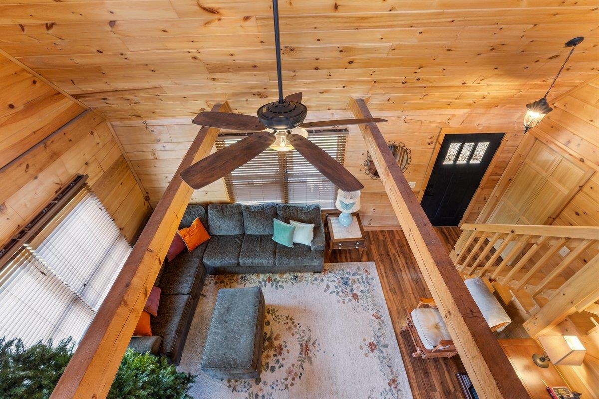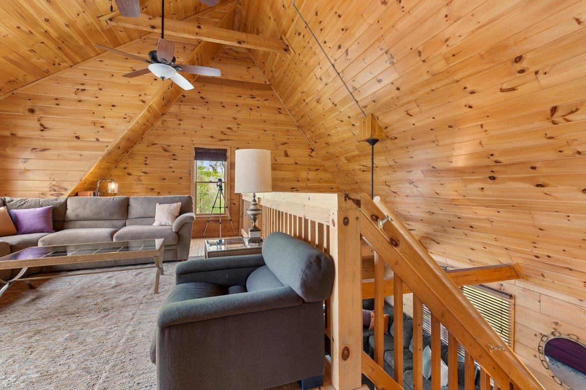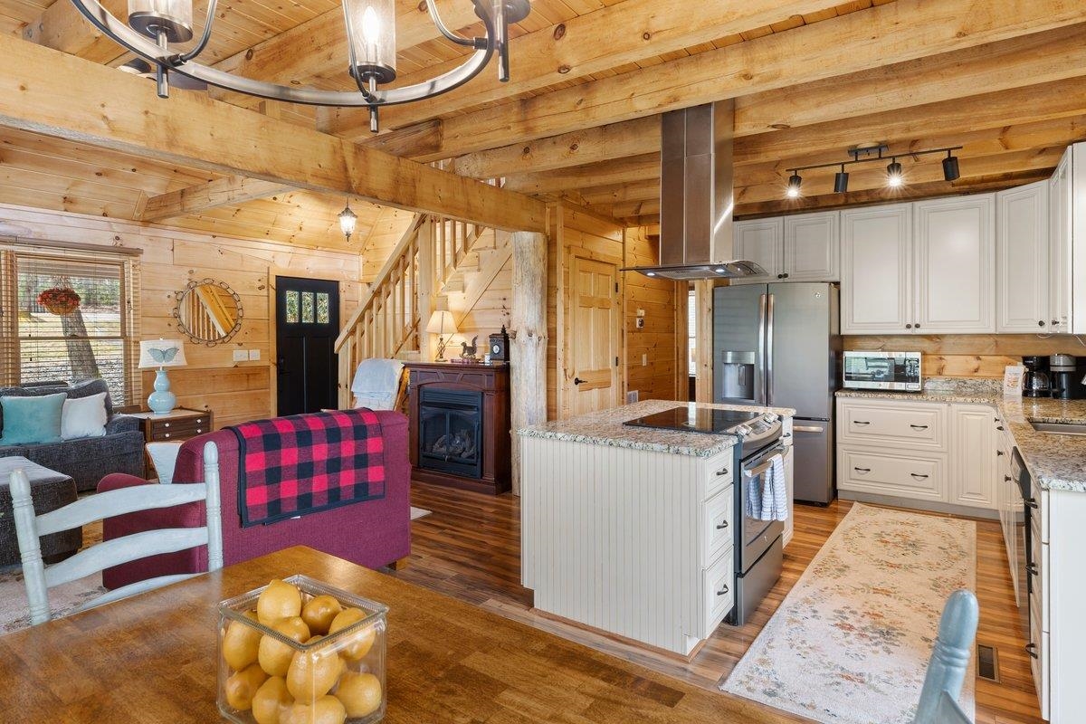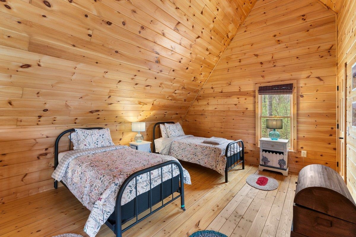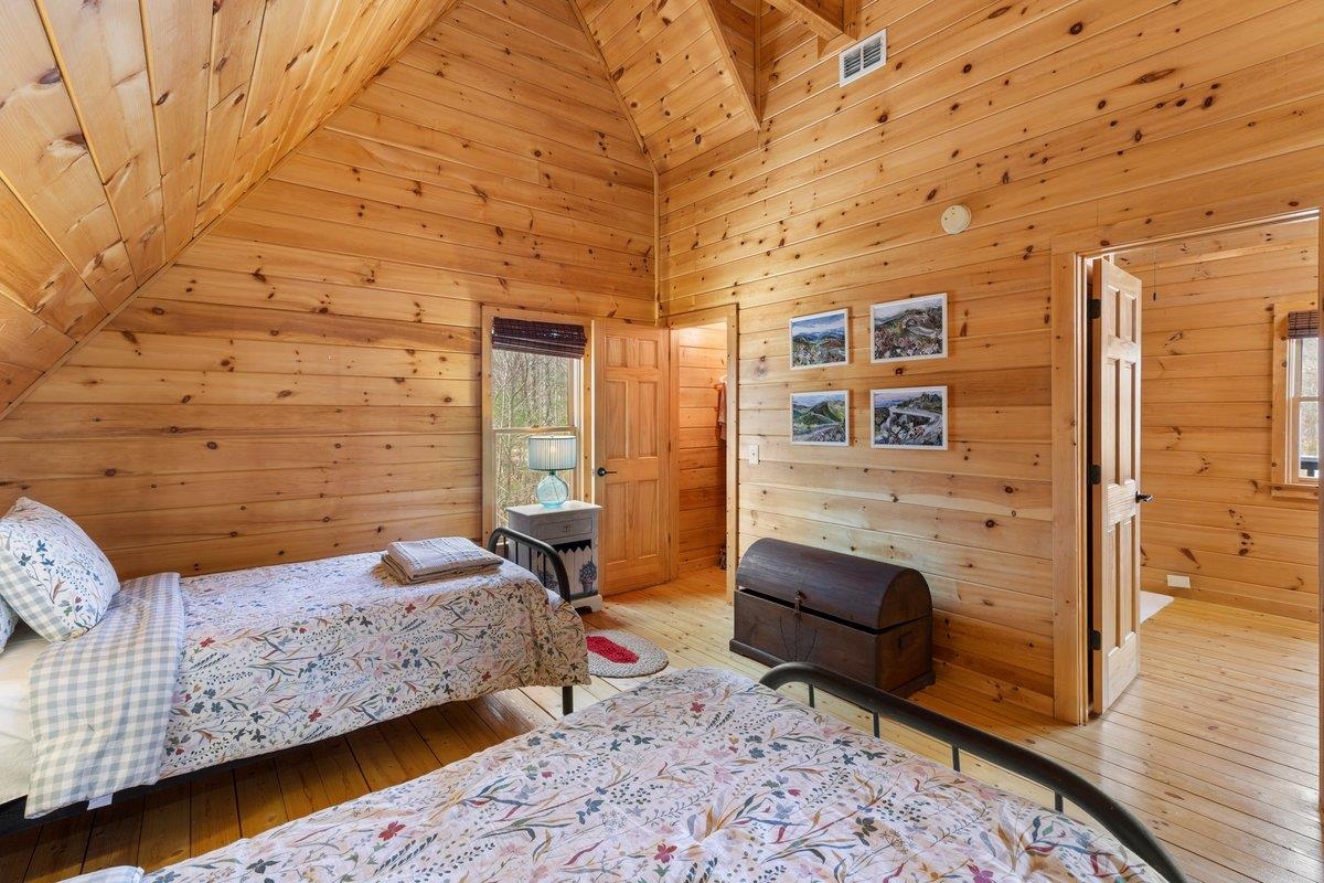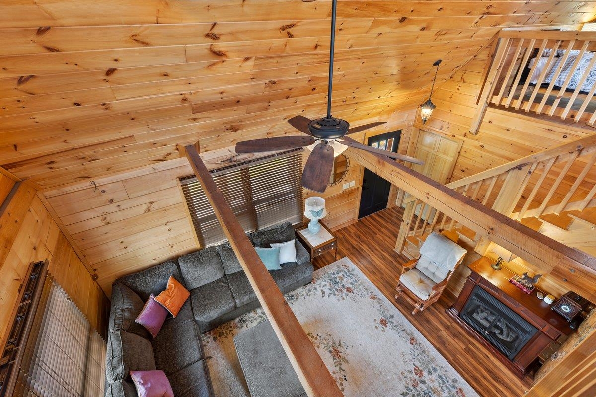 CABIN near GROUNDHOG MOUNTAIN OVERLOOK - Tucked away in a serene setting yet easily accessible, this beautiful multi-level log cabin is located just off the Blue Ridge County Parkway and in close proximity to the scenic Groundhog Mountain Overlook. Inside, you'll find cathedral ceilings with exposed beams, knotty pine throughout, & a gas log fireplace that anchors the inviting open floor plan. The kitchen features beautiful custom cabinetry, granite countertops, an oversized pantry, & all appliances convey. The spacious layout includes three bedrooms, two full baths, & one half bath, along with walk in closet and whole house generator. Outdoor spaces are just as impressive, with a paved driveway, two storage sheds, covered porch, several balconies & decks, and a stone patio - all overlooking a peaceful pond & the surrounding natural beauty. This property offers the perfect balance of seclusion, charm, & convenience. Don't miss this opportunity!