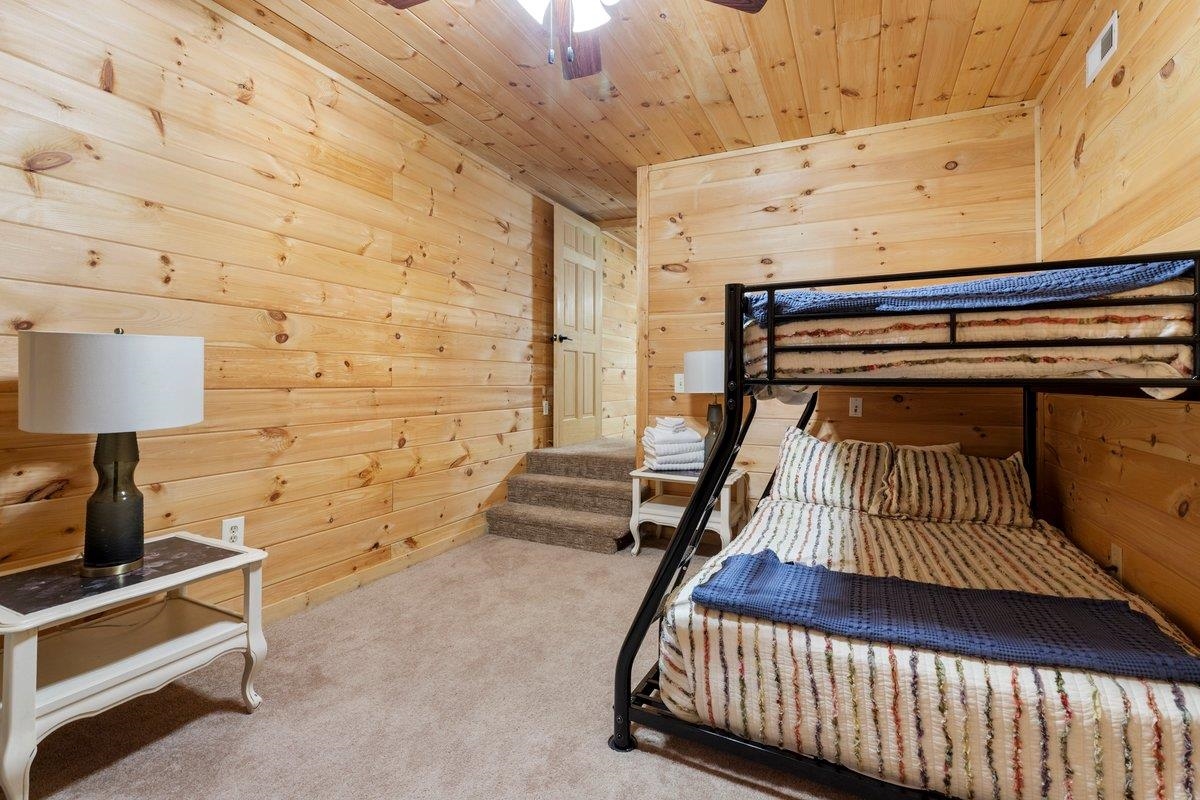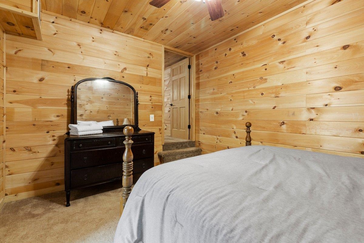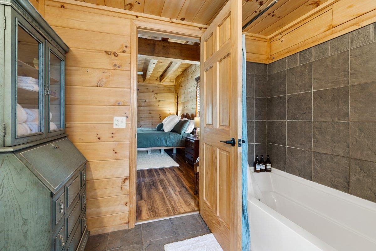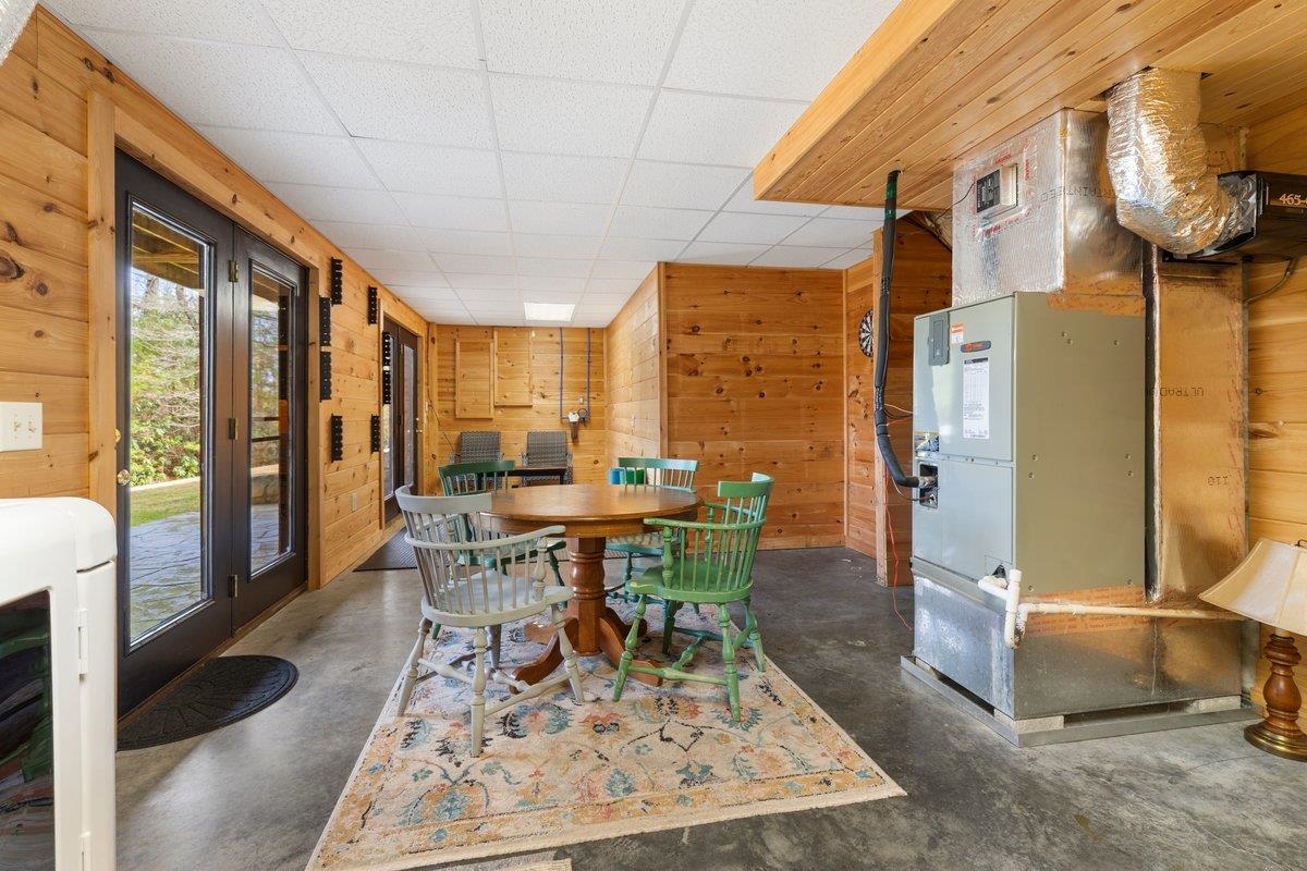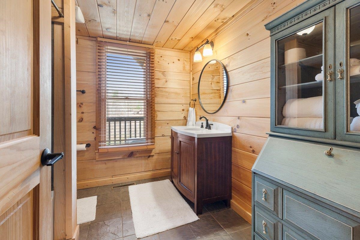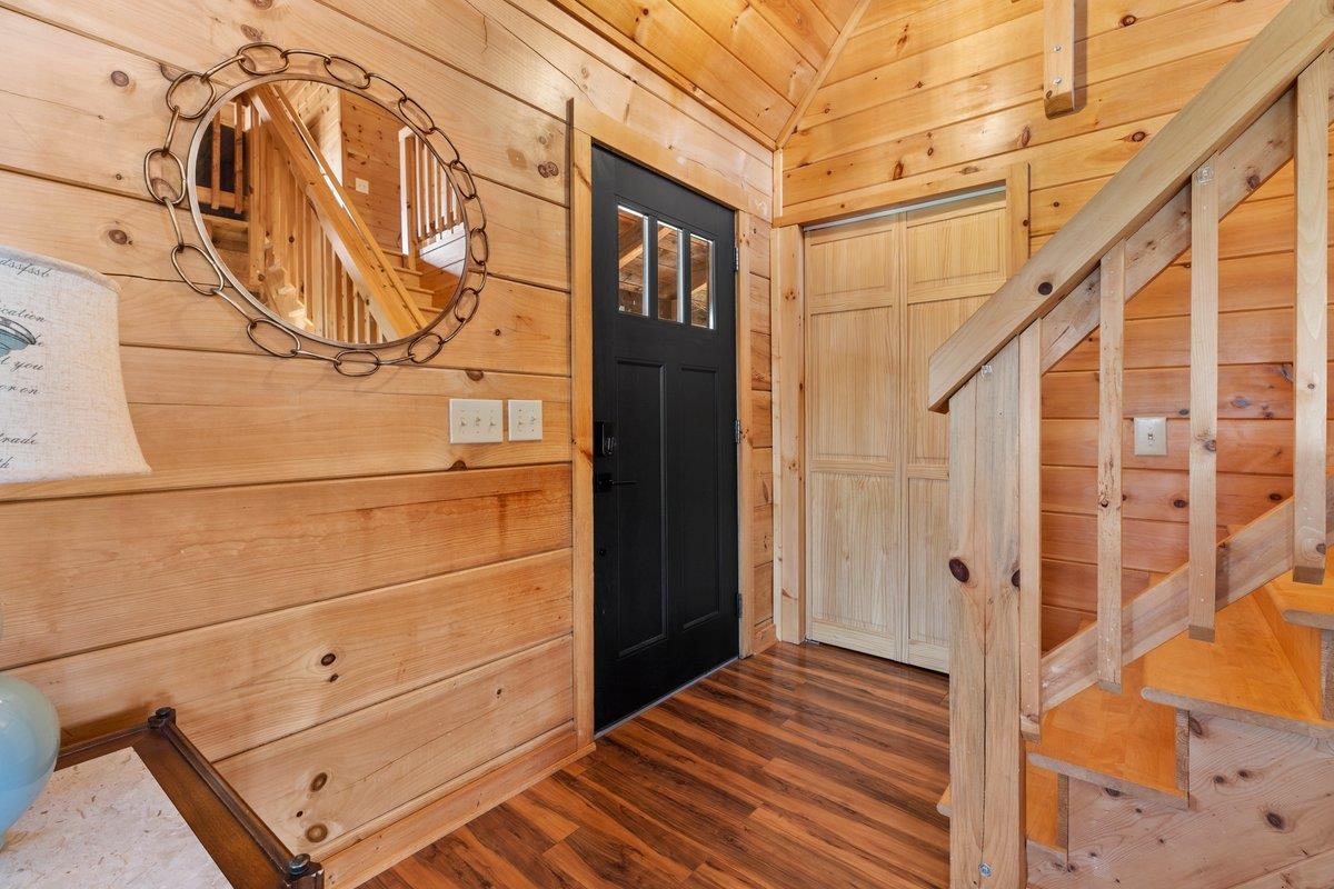 CABIN near GROUNDHOG MOUNTAIN OVERLOOK - Tucked away in a serene setting yet easily accessible, this beautiful multi-level log cabin is located just off the Blue Ridge County Parkway and in close proximity to the scenic Groundhog Mountain Overlook. Inside, you'll find cathedral ceilings with exposed beams, knotty pine throughout, & a gas log fireplace that anchors the inviting open floor plan. The kitchen features beautiful custom cabinetry, granite countertops, an oversized pantry, & all appliances convey. The spacious layout includes three bedrooms, two full baths, & one half bath, along with walk in closet and whole house generator. Outdoor spaces are just as impressive, with a paved driveway, two storage sheds, covered porch, several balconies & decks, and a stone patio - all overlooking a peaceful pond & the surrounding natural beauty. This property offers the perfect balance of seclusion, charm, & convenience. Don't miss this opportunity!