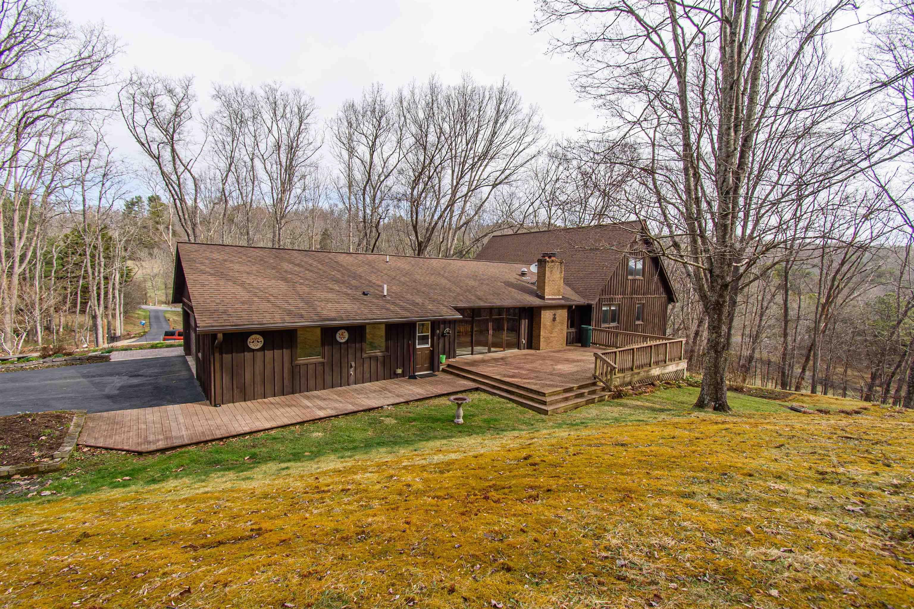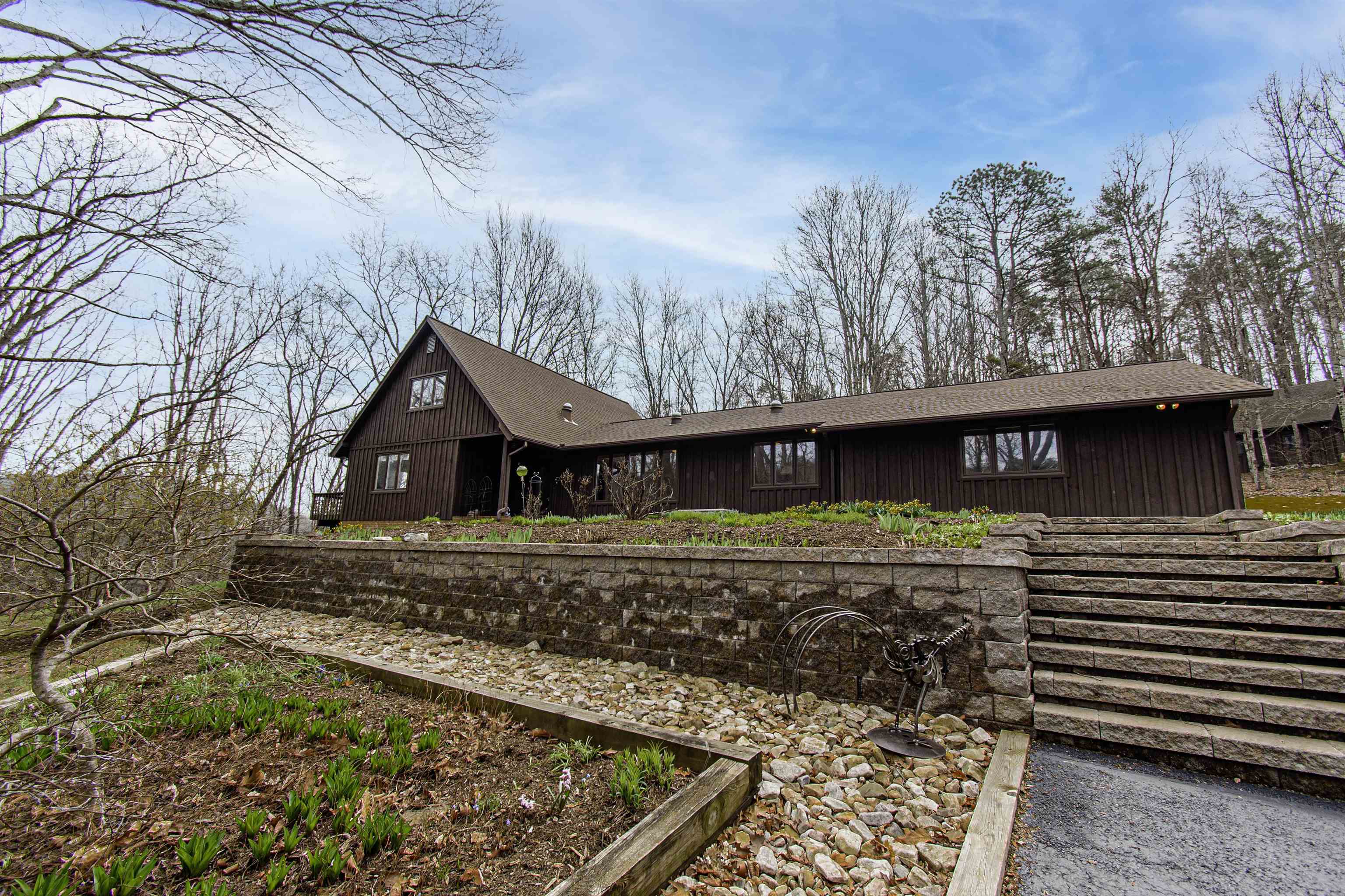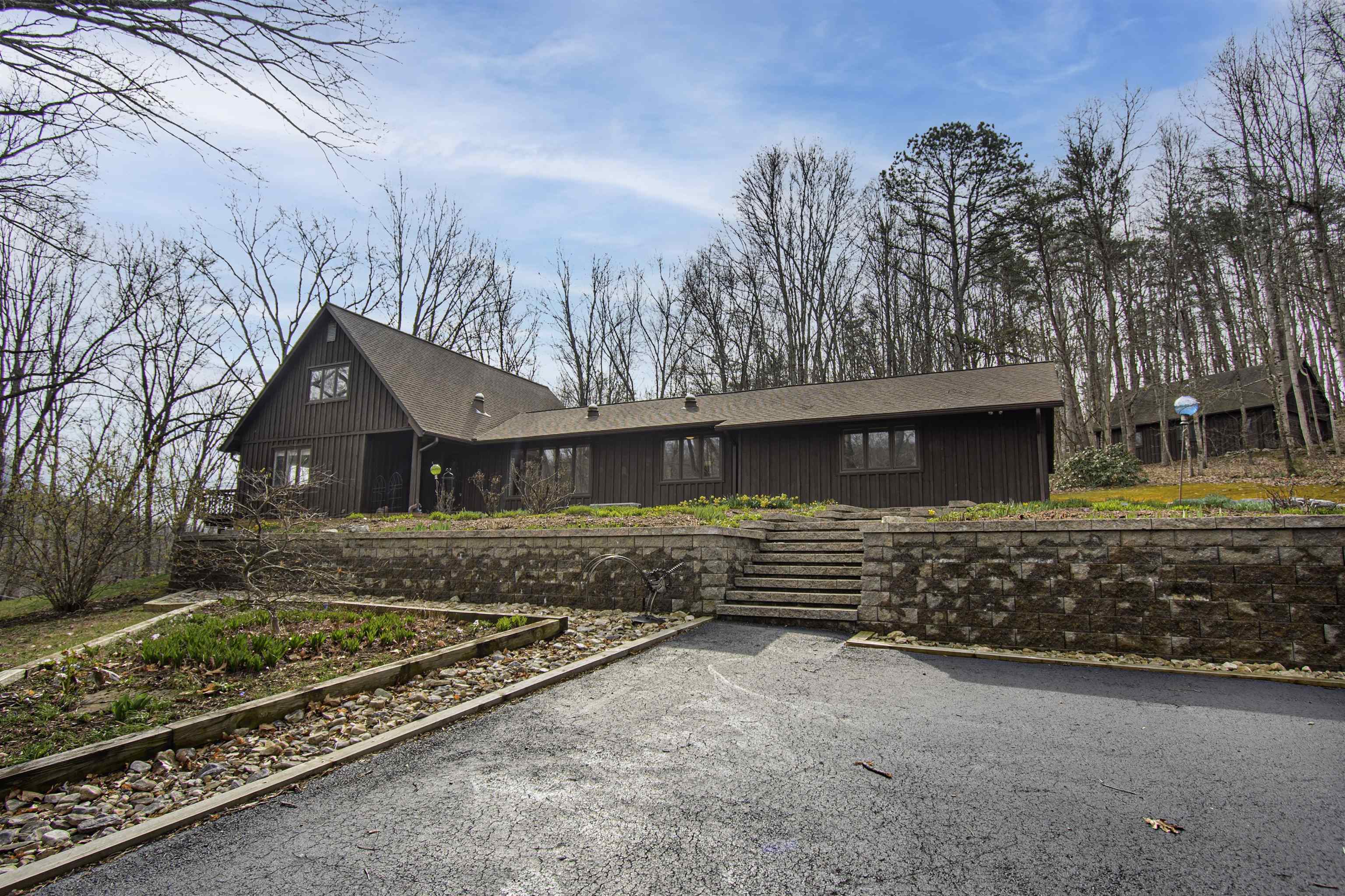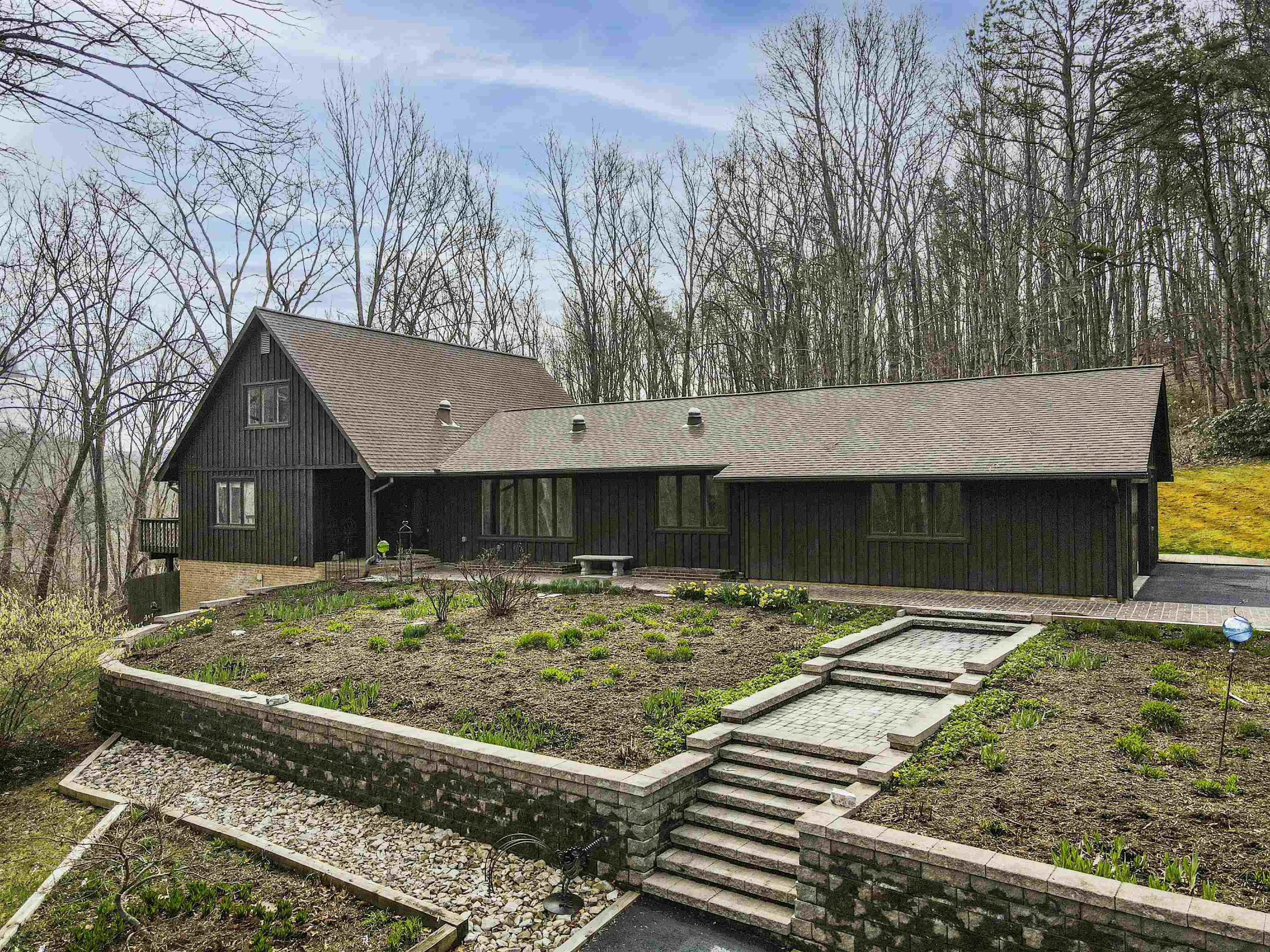 Beautifully maintained 4-bedroom, 3.5-bath contemporary home set on 5.453 acres in the scenic Ellett Valley, just 10 minutes from downtown Blacksburg. The property offers privacy, wooded surroundings, and peaceful views. Inside, the open layout features hardwood floors, a stone fireplace anchoring the main living area, and a stone tile hallway leading to the bedrooms. Spacious bedrooms provide comfortable living throughout. The large open basement offers flexible space for recreation, hobbies, or storage. An expansive deck extends the living space outdoors, ideal for enjoying the natural setting. Terraced stone landscaping enhances the exterior, a two-car attached garage plus bonus detached 2 car garage provides convenient parking and storage. A rare opportunity to enjoy acreage, privacy, and thoughtful design close to town.