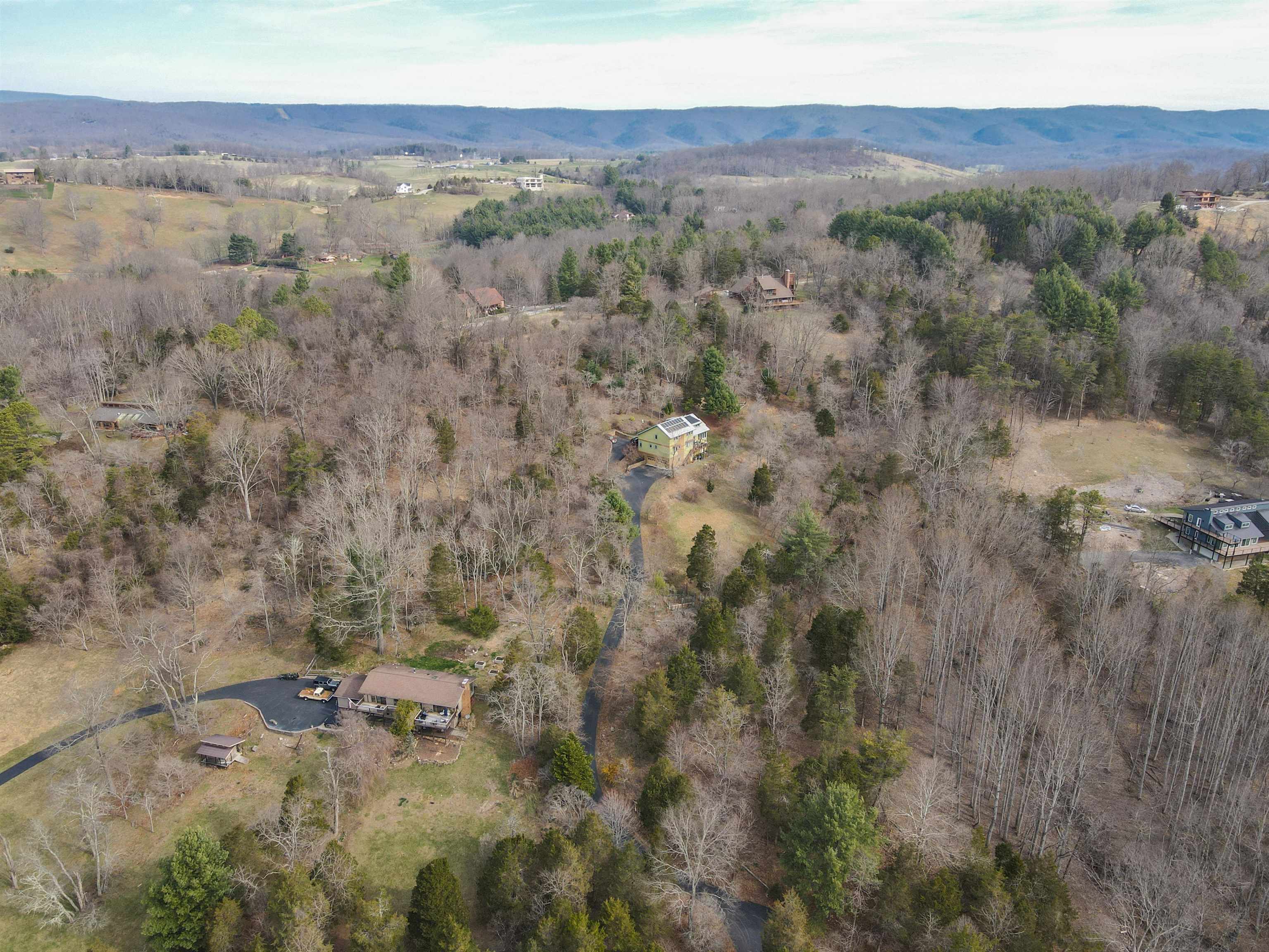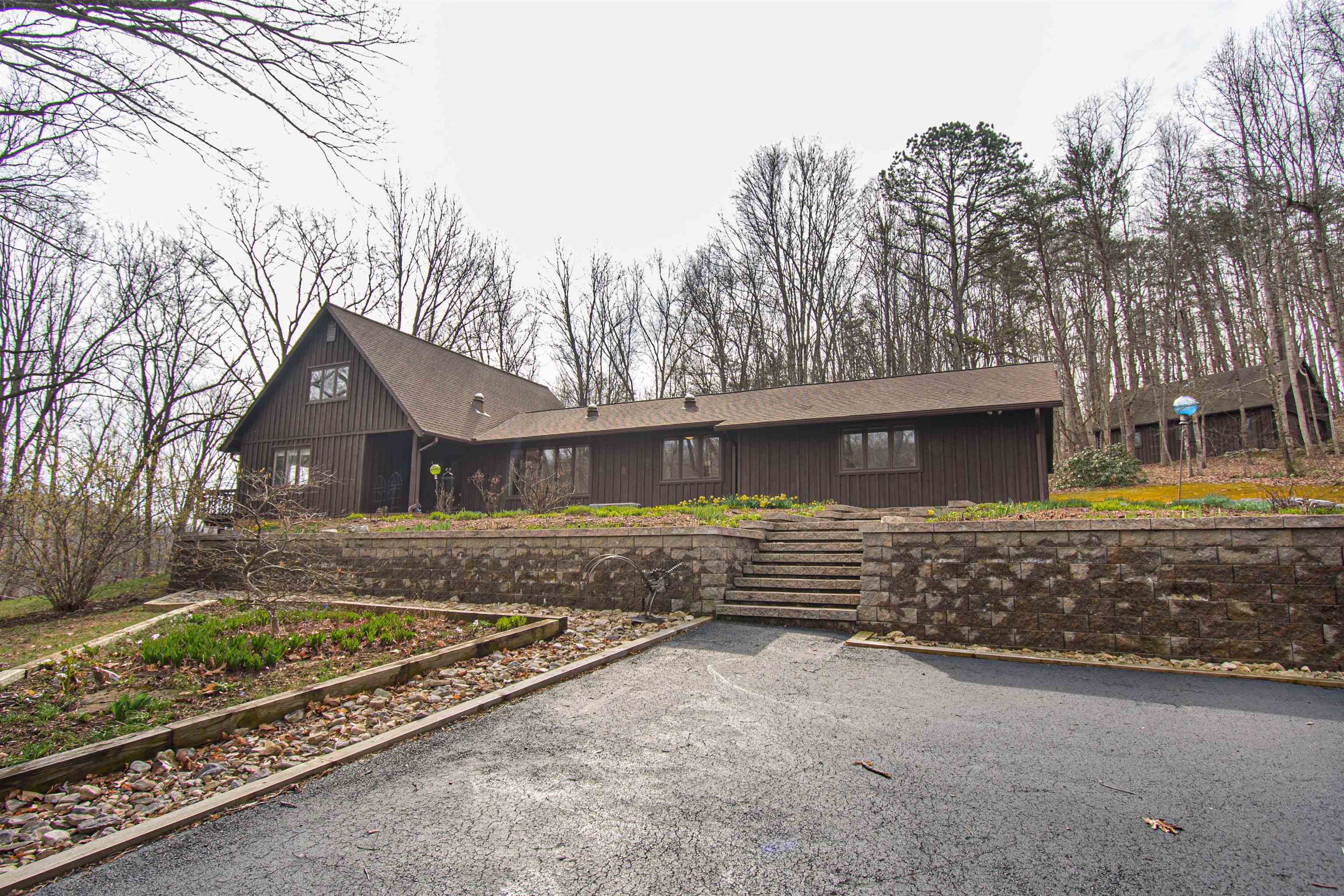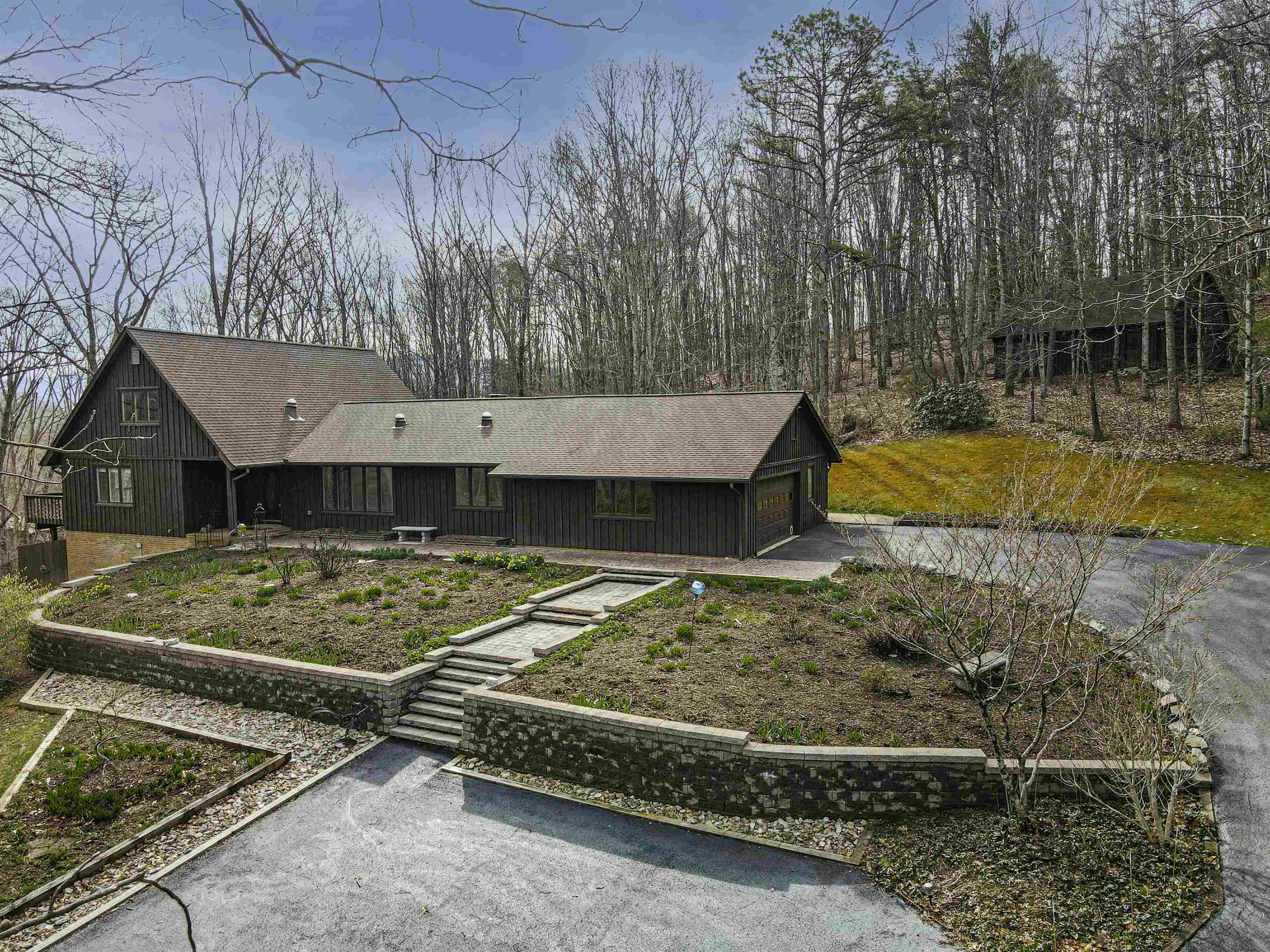 Beautifully maintained 4-bedroom, 3.5-bath contemporary home set on 5.453 acres in the scenic Ellett Valley, just 10 minutes from downtown Blacksburg. The property offers privacy, wooded surroundings, and peaceful views. Inside, the open layout features hardwood floors, a stone fireplace anchoring the main living area, and a stone tile hallway leading to the bedrooms. Spacious bedrooms provide comfortable living throughout. The large open basement offers flexible space for recreation, hobbies, or storage. An expansive deck extends the living space outdoors, ideal for enjoying the natural setting. Terraced stone landscaping enhances the exterior, a two-car attached garage plus bonus detached 2 car garage provides convenient parking and storage. A rare opportunity to enjoy acreage, privacy, and thoughtful design close to town.
