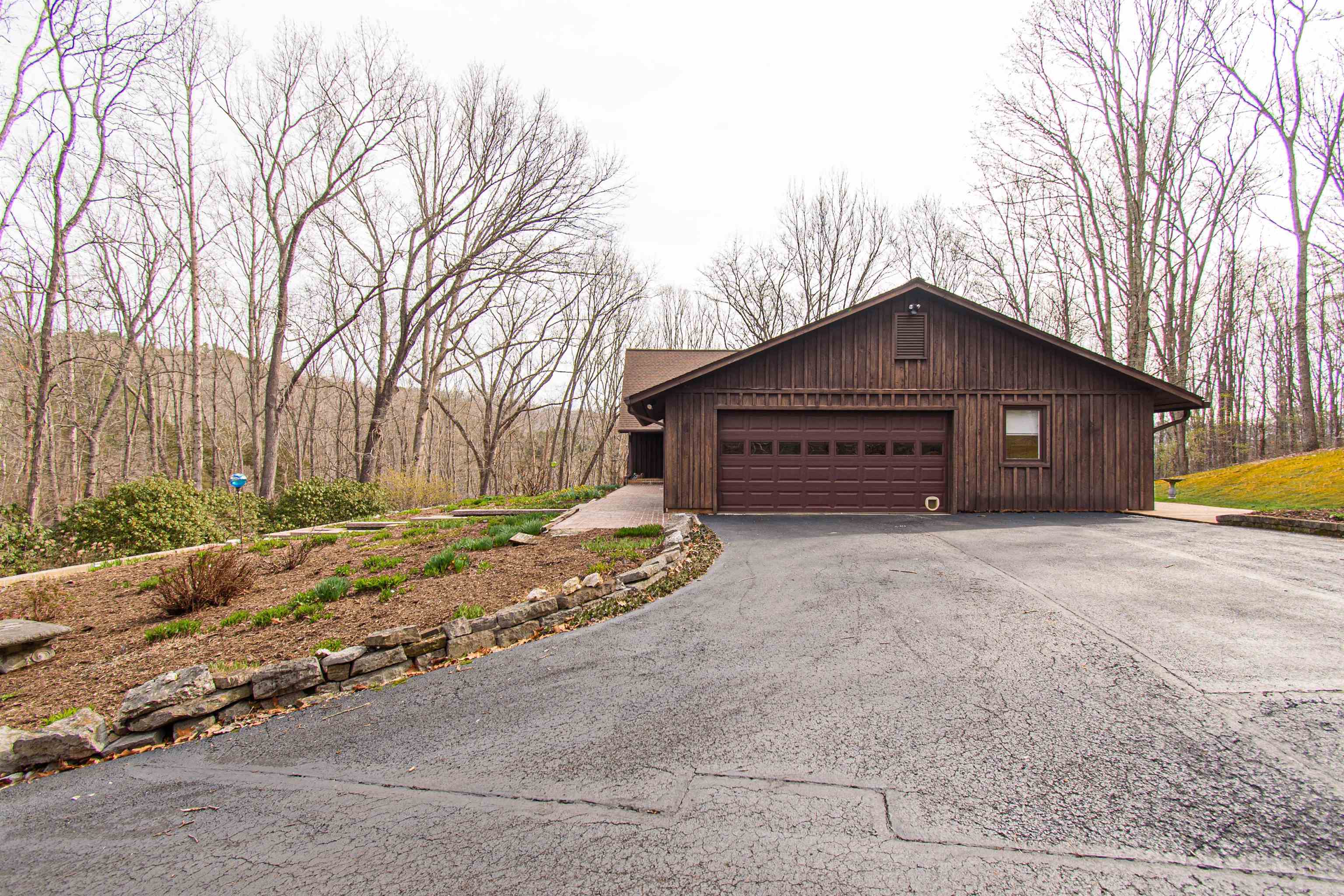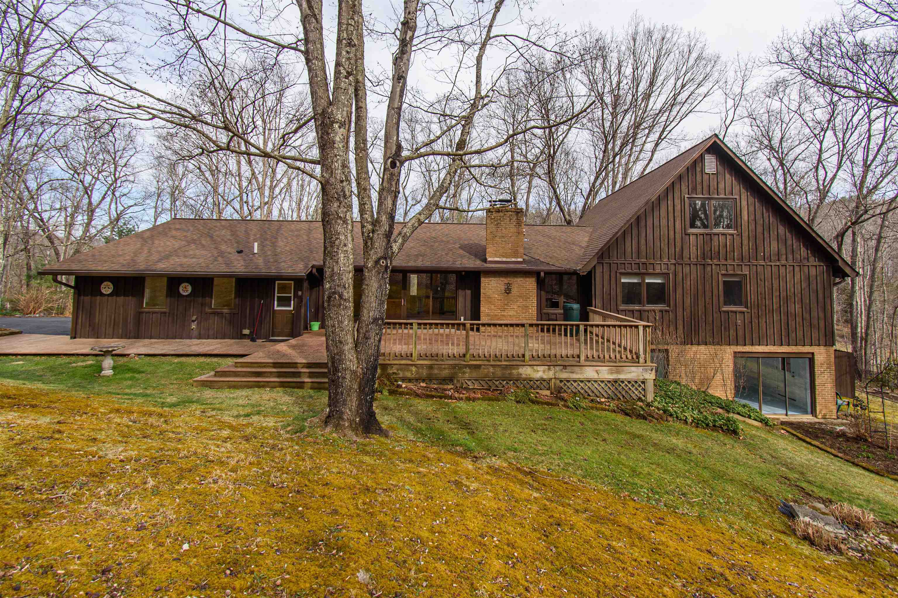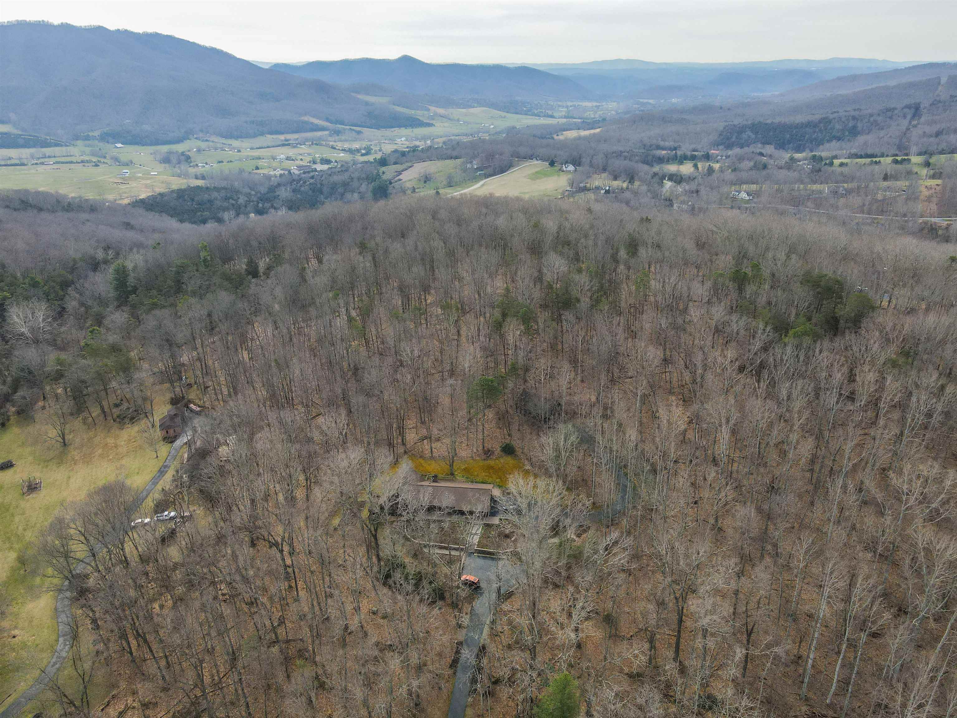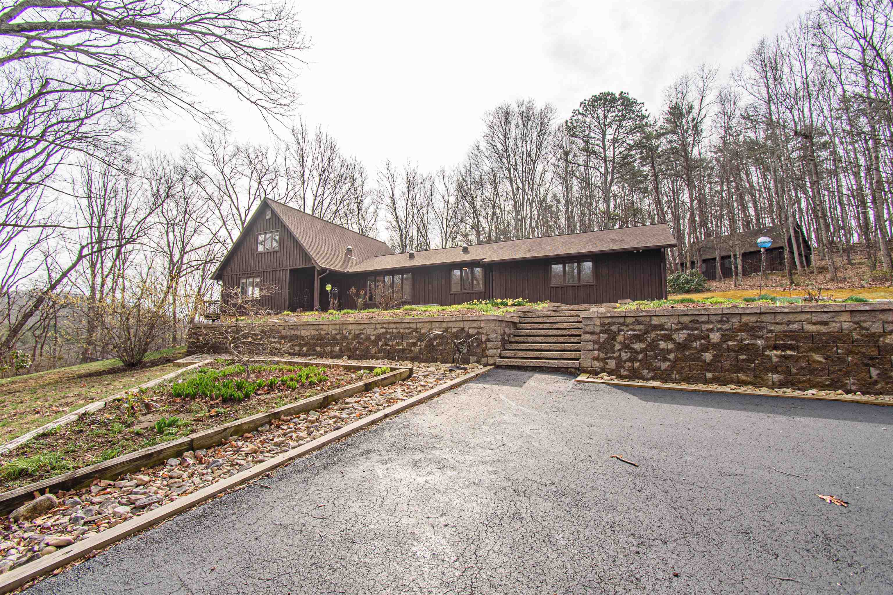 Beautifully maintained 4-bedroom, 3.5-bath contemporary home set on 5.453 acres in the scenic Ellett Valley, just 10 minutes from downtown Blacksburg. The property offers privacy, wooded surroundings, and peaceful views. Inside, the open layout features hardwood floors, a stone fireplace anchoring the main living area, and a stone tile hallway leading to the bedrooms. Spacious bedrooms provide comfortable living throughout. The large open basement offers flexible space for recreation, hobbies, or storage. An expansive deck extends the living space outdoors, ideal for enjoying the natural setting. Terraced stone landscaping enhances the exterior, a two-car attached garage plus bonus detached 2 car garage provides convenient parking and storage. A rare opportunity to enjoy acreage, privacy, and thoughtful design close to town.