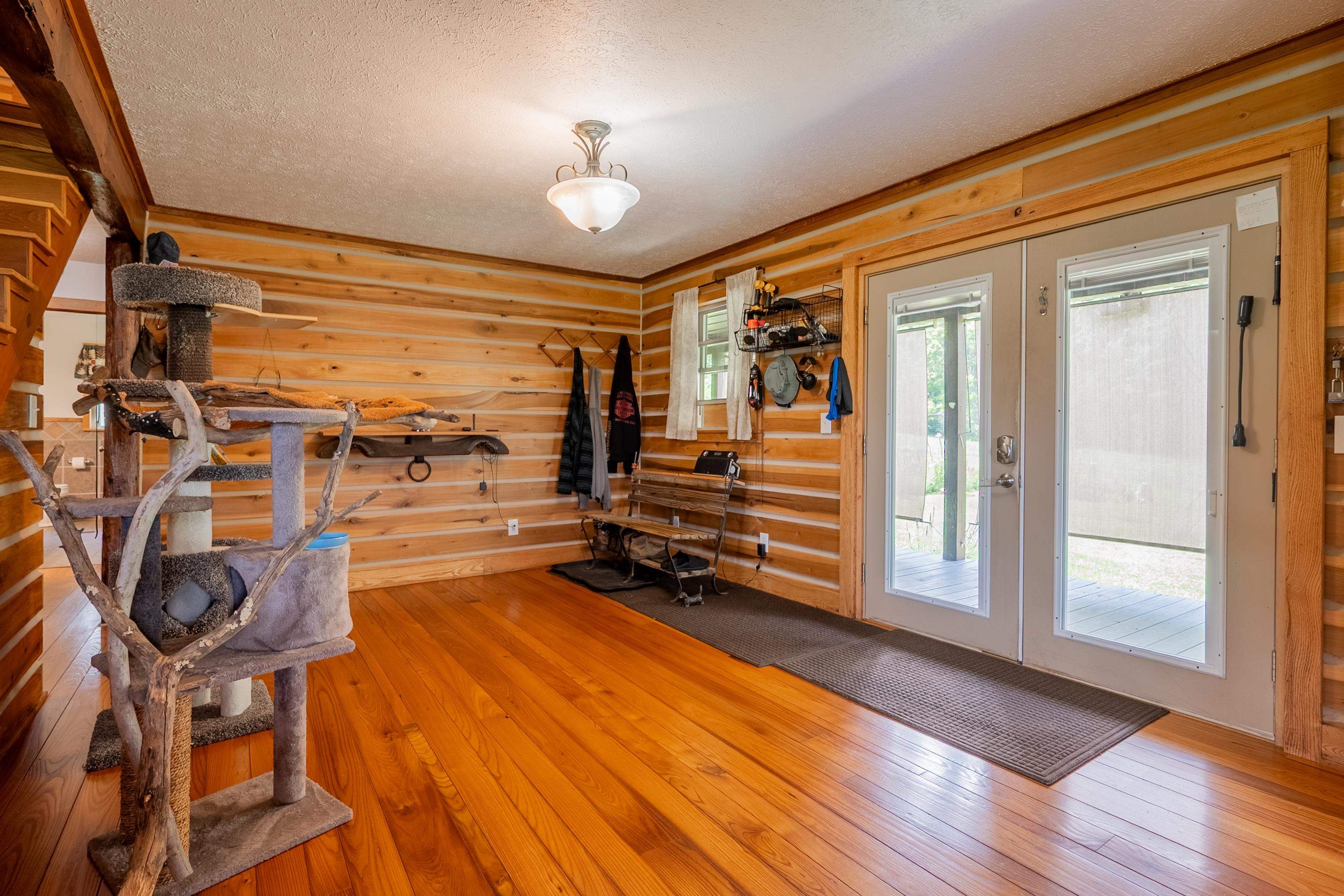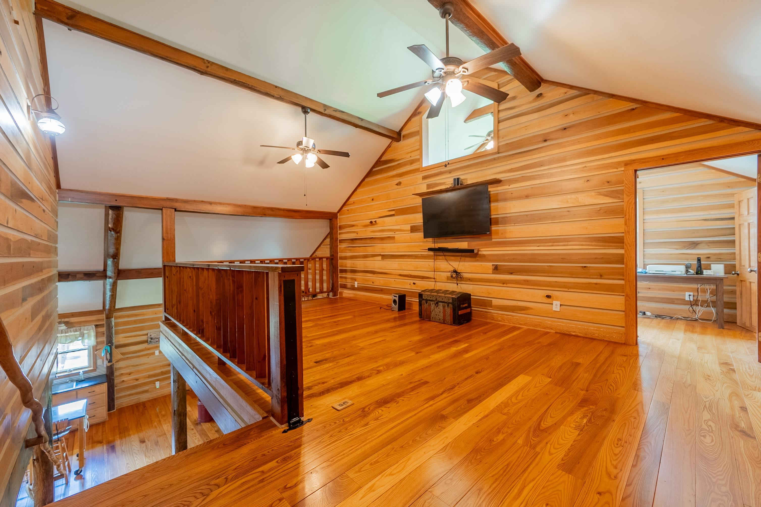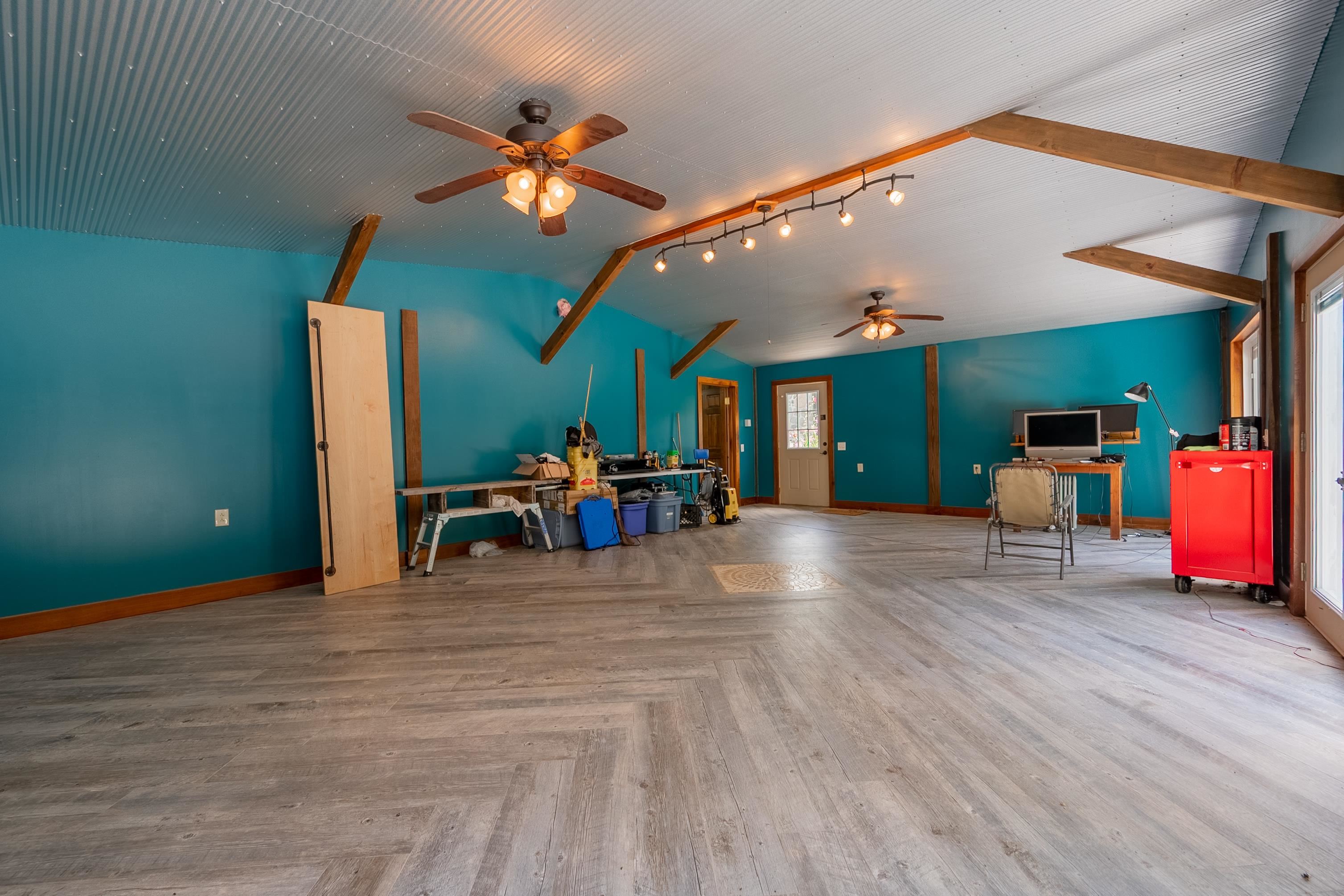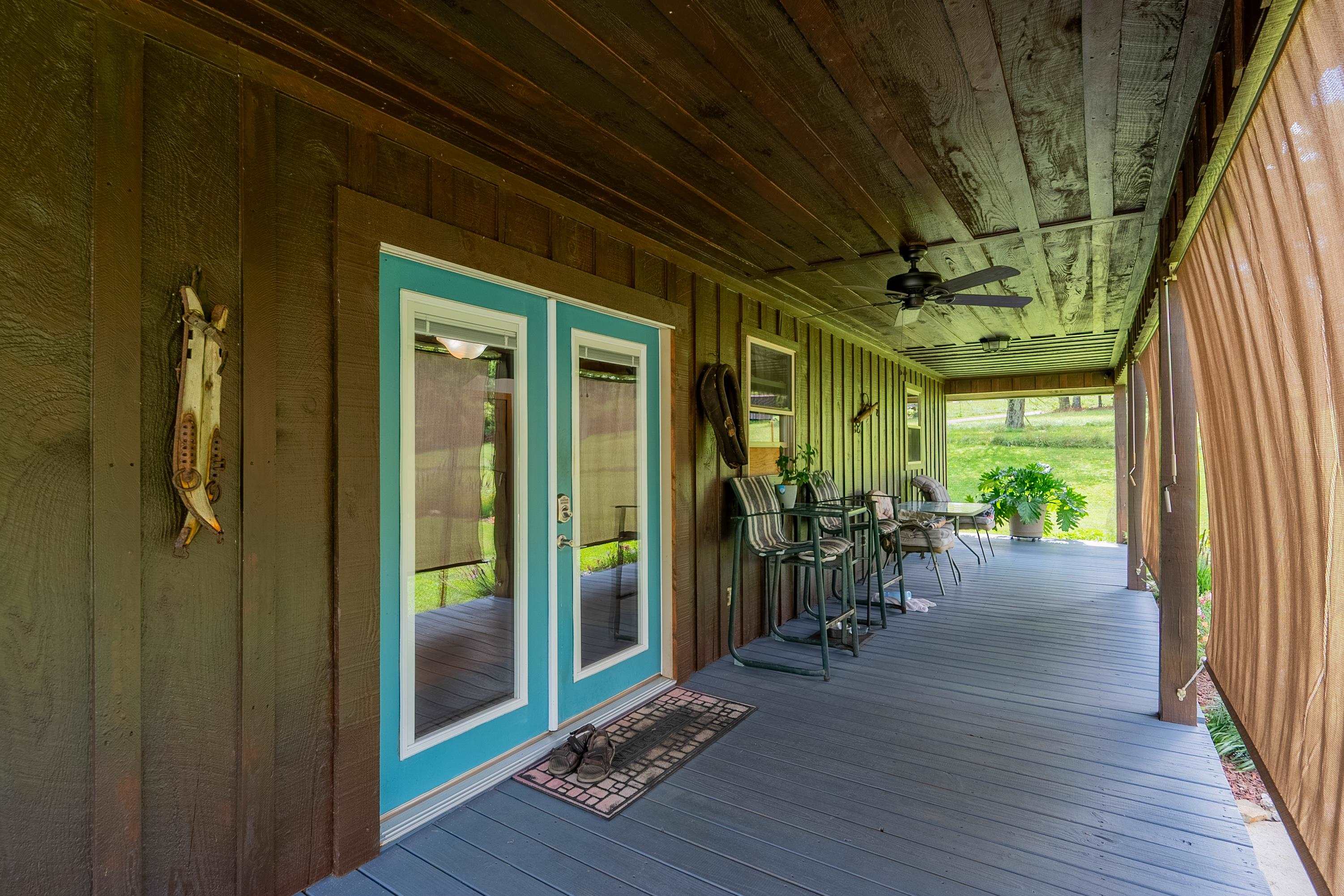 A quiet piece of paradise just off the Blue Ridge Parkway! Beautifully landscaped with flower gardens and fruit trees, this spotlessly maintained contemporary cabin offers 2,400 sq ft of living space. Handcrafted hardwood floors and unique wormy curly maple and white ash cabinetry with epoxy countertops and stainless backsplash create a truly custom kitchen. A striking stone fireplace with gas logs adds warmth to the living area. The thoughtful design incorporates the original 1940s structure into a spacious, inviting home—perfect as a family residence or vacation rental. Indulge in the luxury of a clawfoot tub and private sauna. Two detached buildings offer incredible flexibility: one functions as a radiant-heated gym/yoga studio with a peaceful deck, while the other houses a woodworking shop and lower-level workspace. A side structure provides extra storage for tools. Come experience this tranquil, one-of-a-kind mountain retreat!