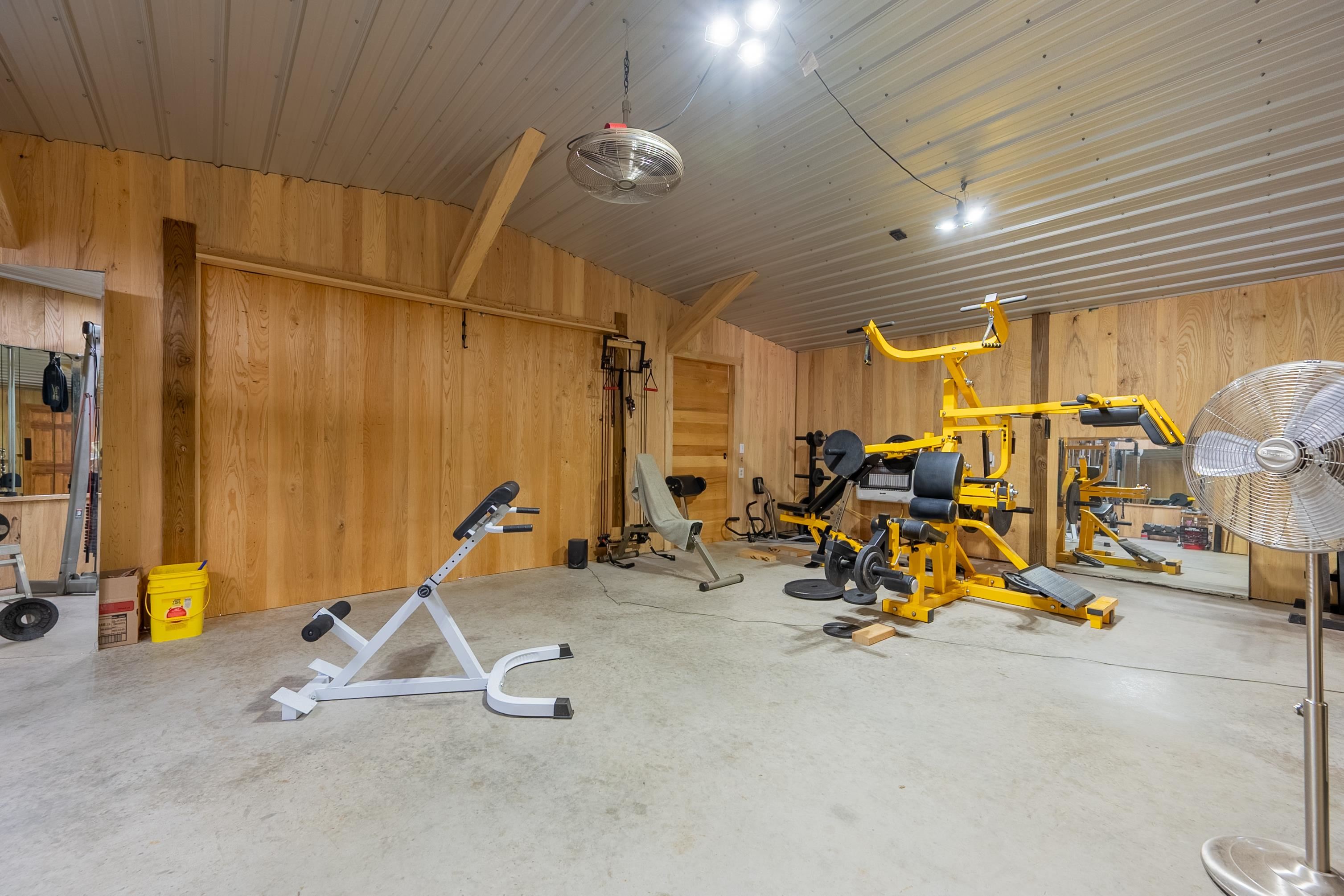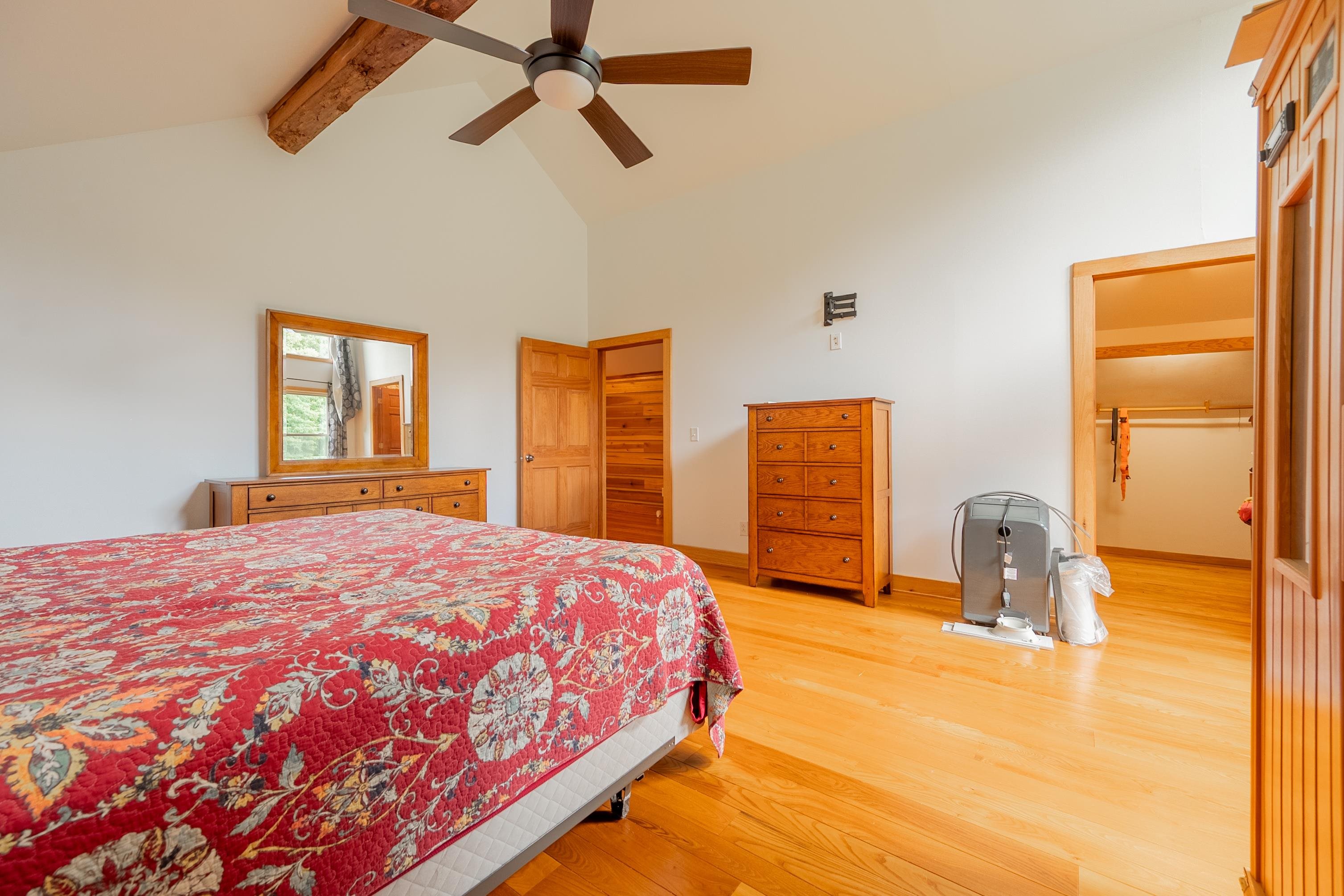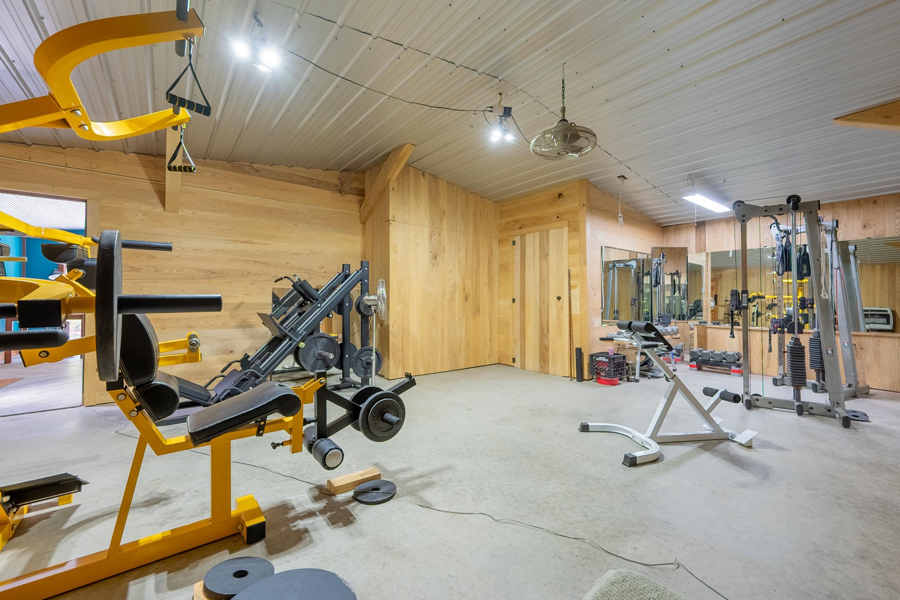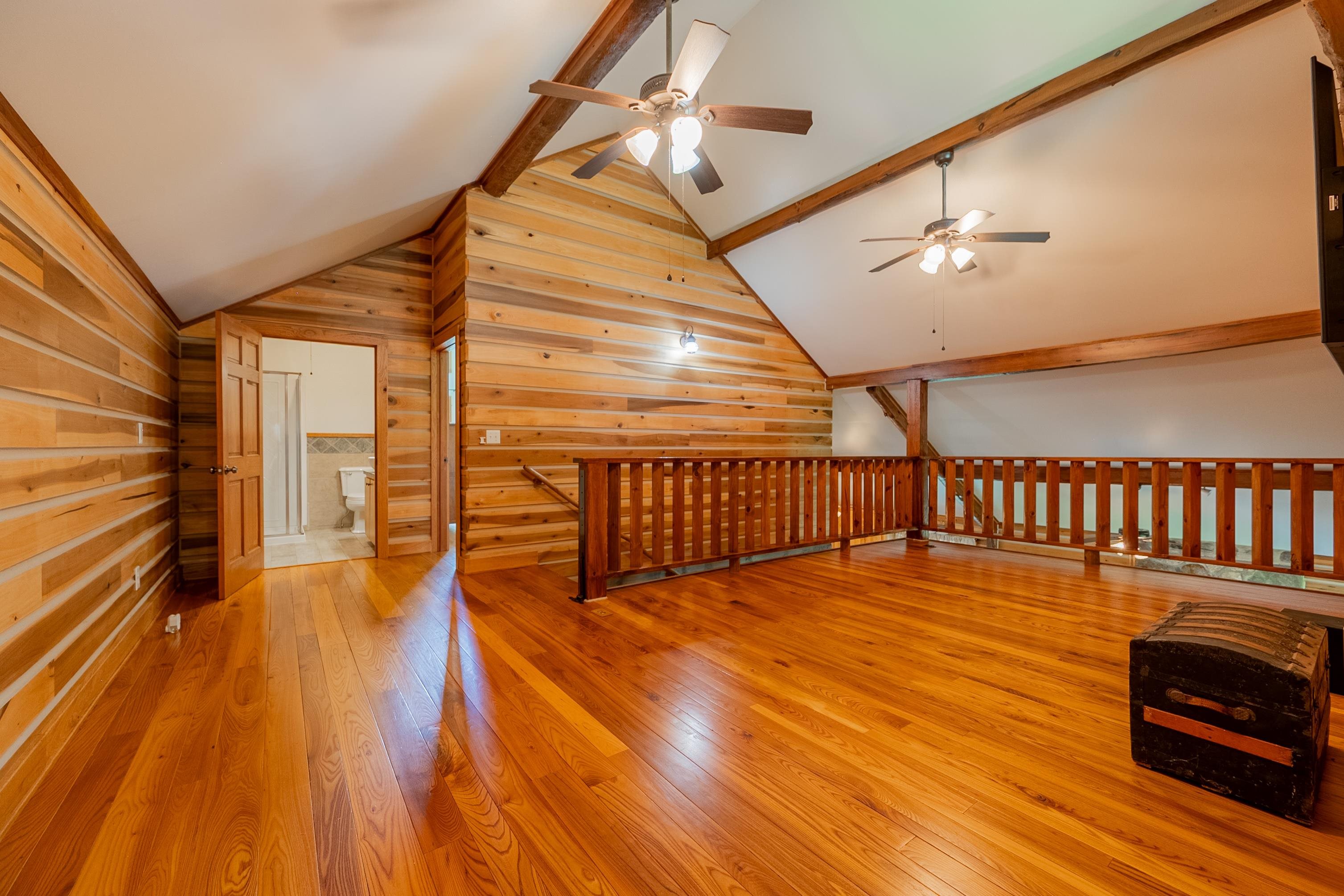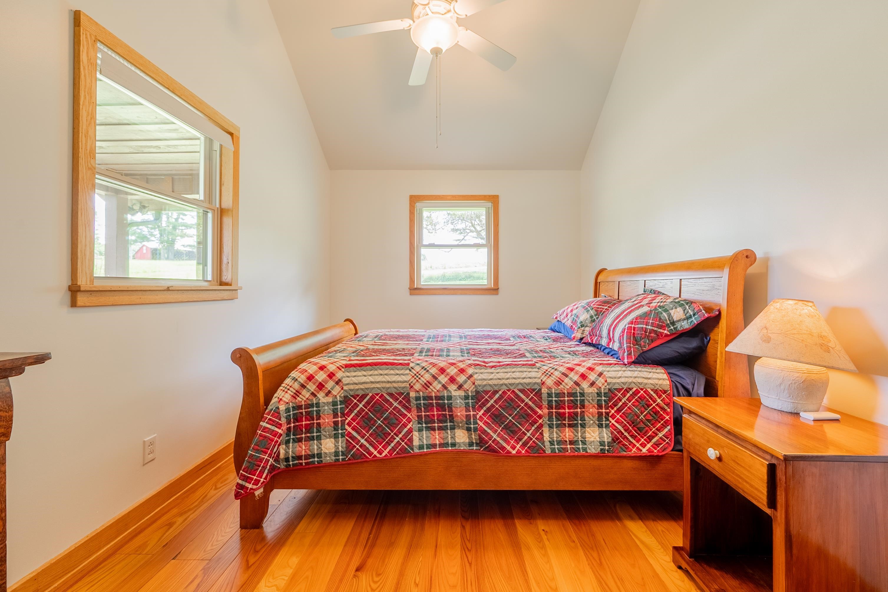 A quiet piece of paradise just off the Blue Ridge Parkway! Beautifully landscaped with flower gardens and fruit trees, this spotlessly maintained contemporary cabin offers 2,400 sq ft of living space. Handcrafted hardwood floors and unique wormy curly maple and white ash cabinetry with epoxy countertops and stainless backsplash create a truly custom kitchen. A striking stone fireplace with gas logs adds warmth to the living area. The thoughtful design incorporates the original 1940s structure into a spacious, inviting home—perfect as a family residence or vacation rental. Indulge in the luxury of a clawfoot tub and private sauna. Two detached buildings offer incredible flexibility: one functions as a radiant-heated gym/yoga studio with a peaceful deck, while the other houses a woodworking shop and lower-level workspace. A side structure provides extra storage for tools. Come experience this tranquil, one-of-a-kind mountain retreat!