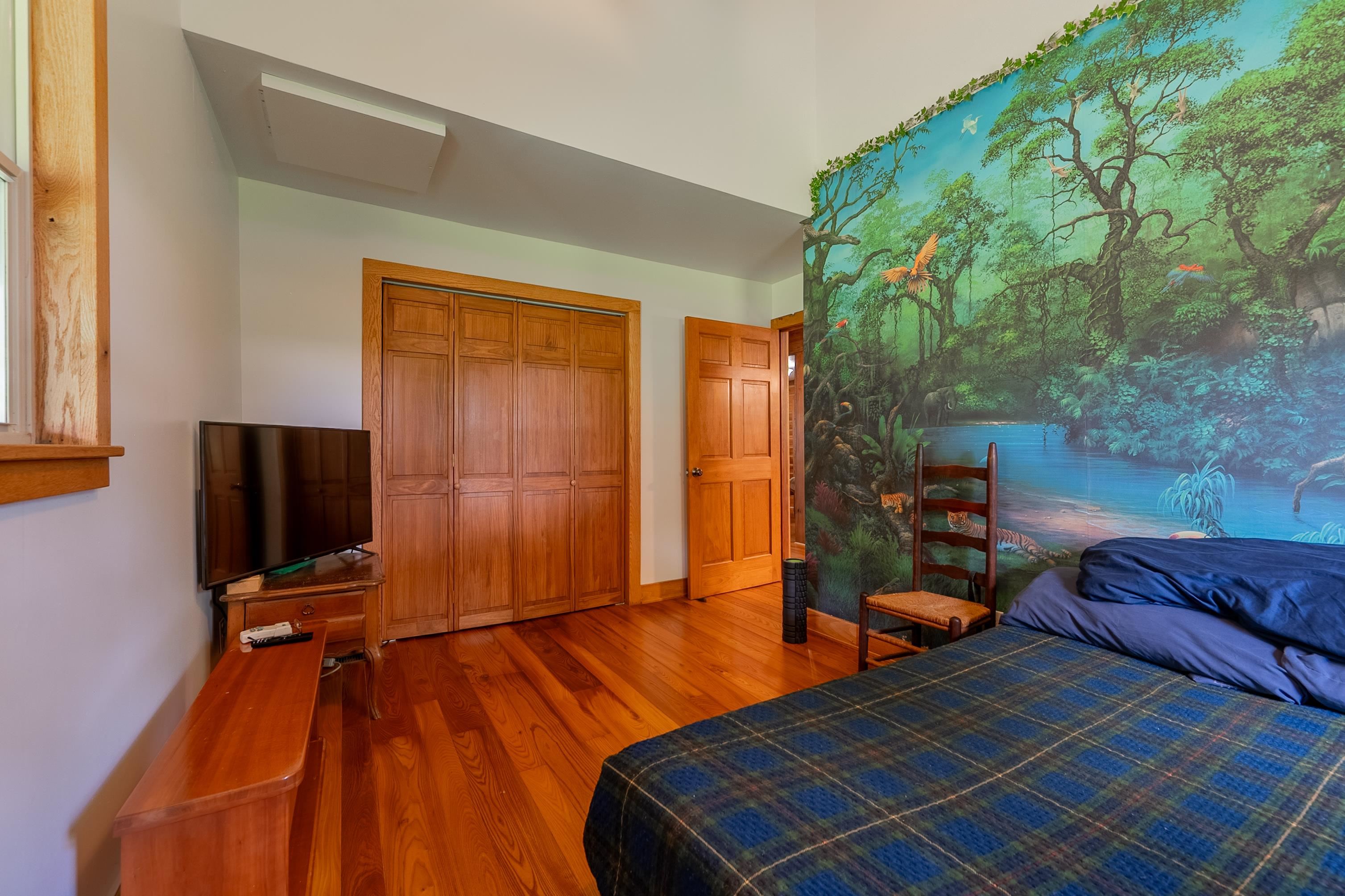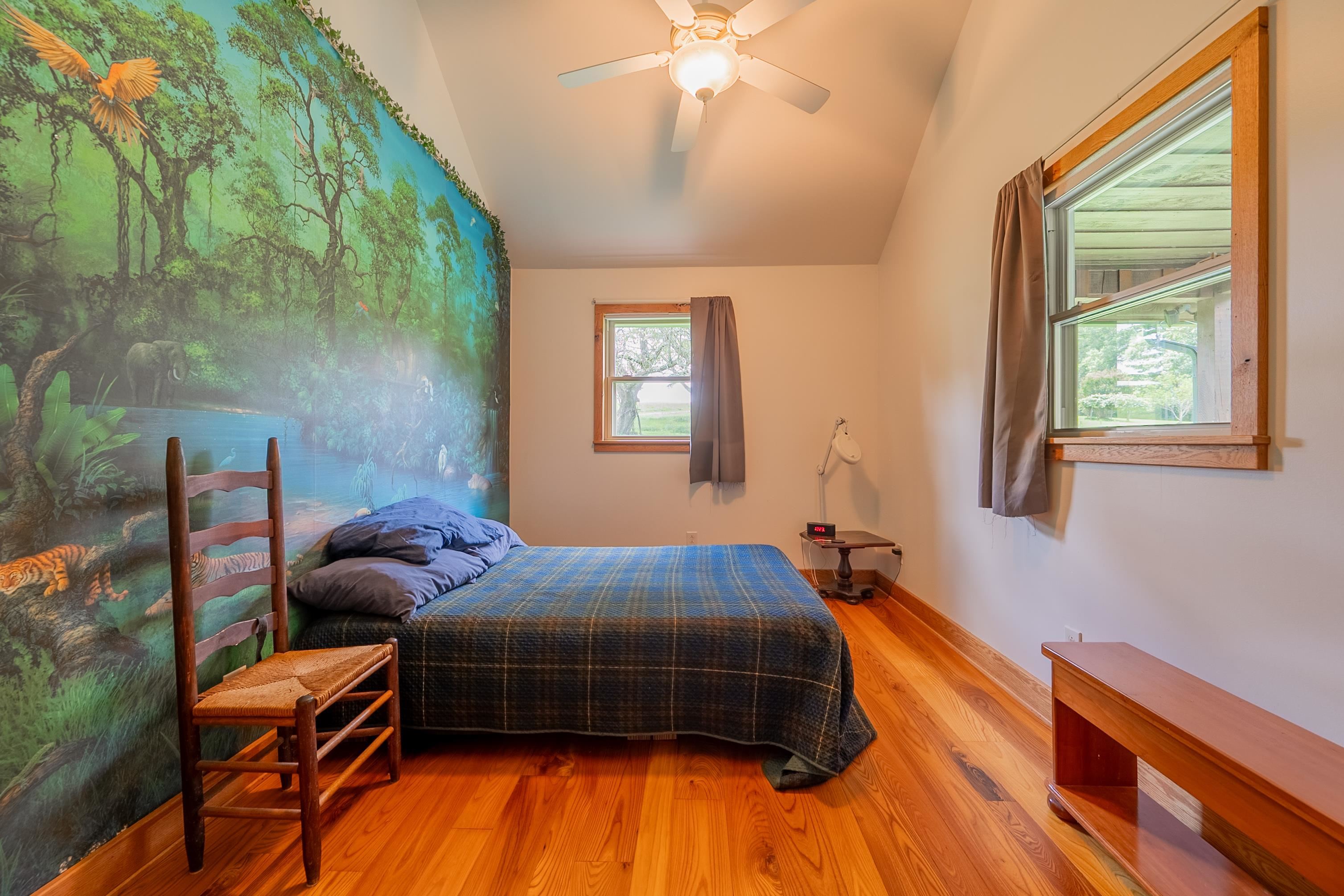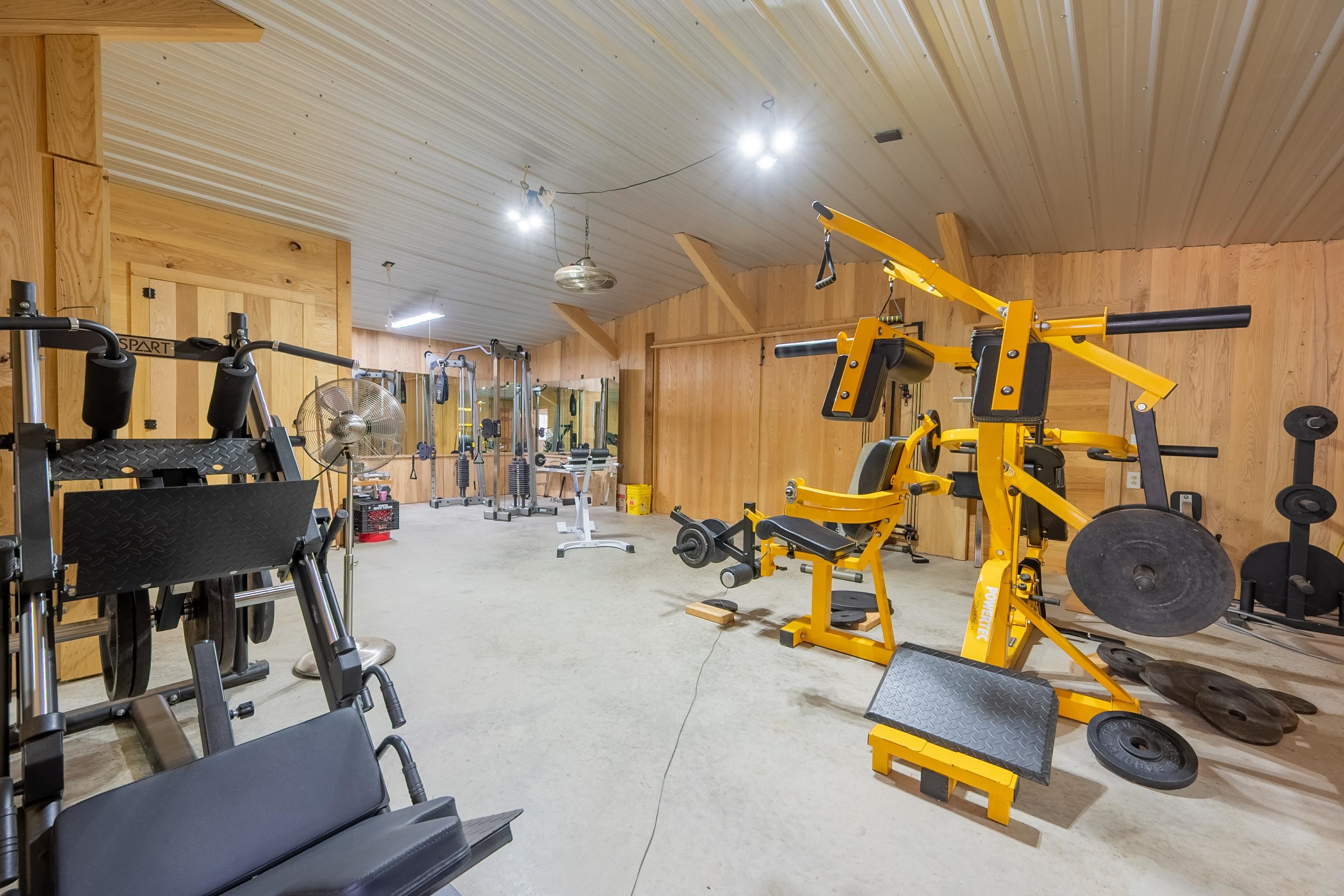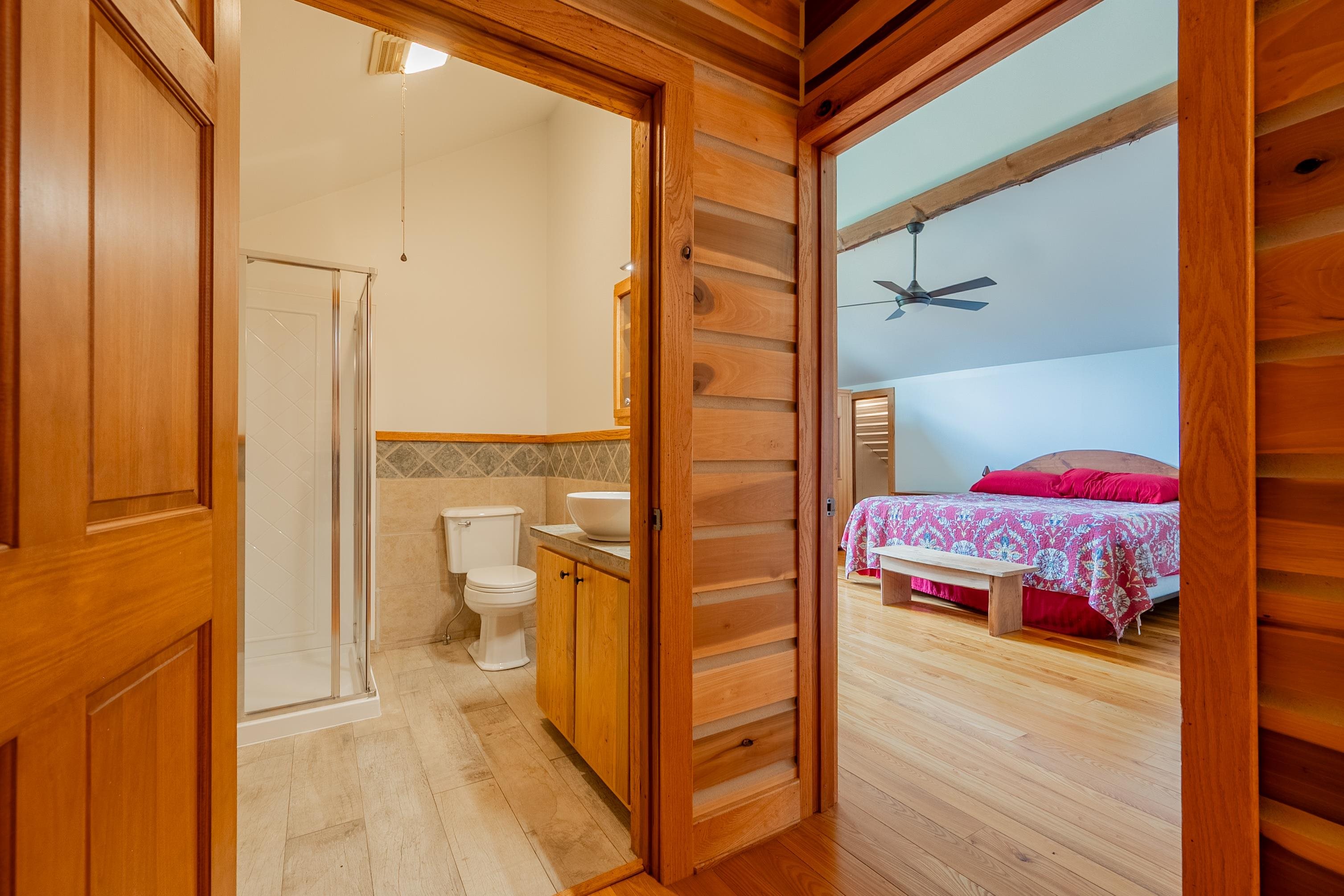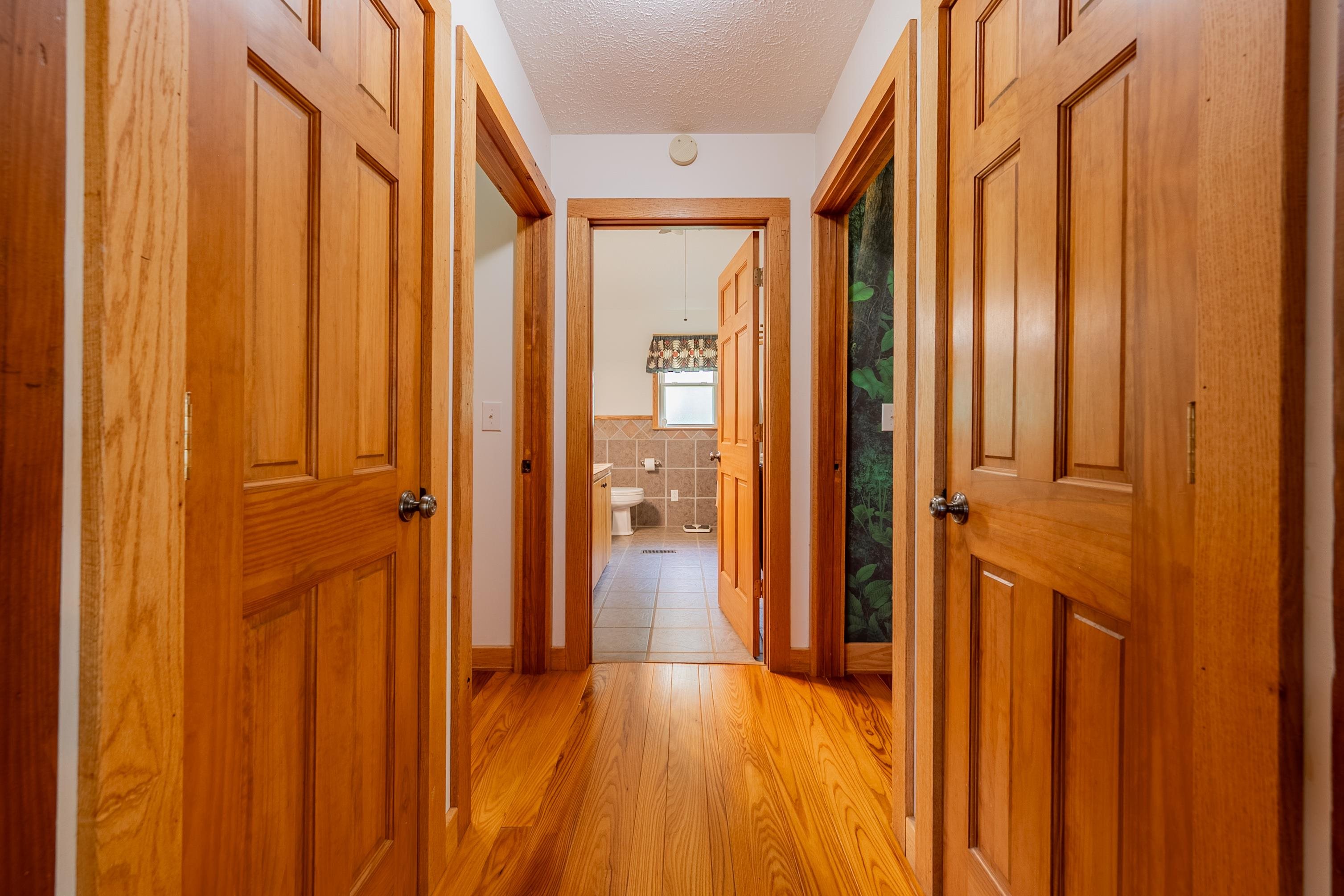 A quiet piece of paradise just off the Blue Ridge Parkway! Beautifully landscaped with flower gardens and fruit trees, this spotlessly maintained contemporary cabin offers 2,400 sq ft of living space. Handcrafted hardwood floors and unique wormy curly maple and white ash cabinetry with epoxy countertops and stainless backsplash create a truly custom kitchen. A striking stone fireplace with gas logs adds warmth to the living area. The thoughtful design incorporates the original 1940s structure into a spacious, inviting home—perfect as a family residence or vacation rental. Indulge in the luxury of a clawfoot tub and private sauna. Two detached buildings offer incredible flexibility: one functions as a radiant-heated gym/yoga studio with a peaceful deck, while the other houses a woodworking shop and lower-level workspace. A side structure provides extra storage for tools. Come experience this tranquil, one-of-a-kind mountain retreat!