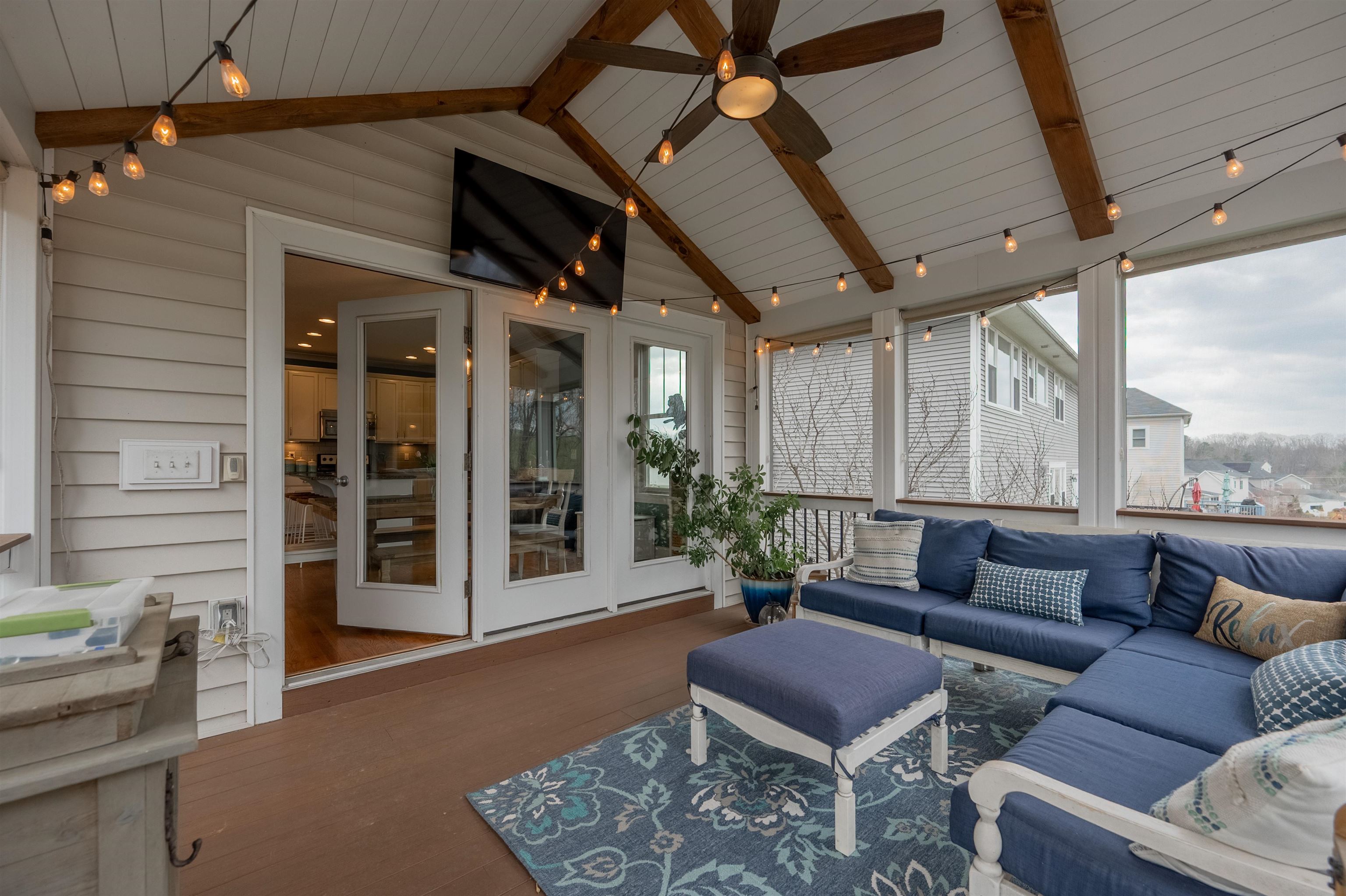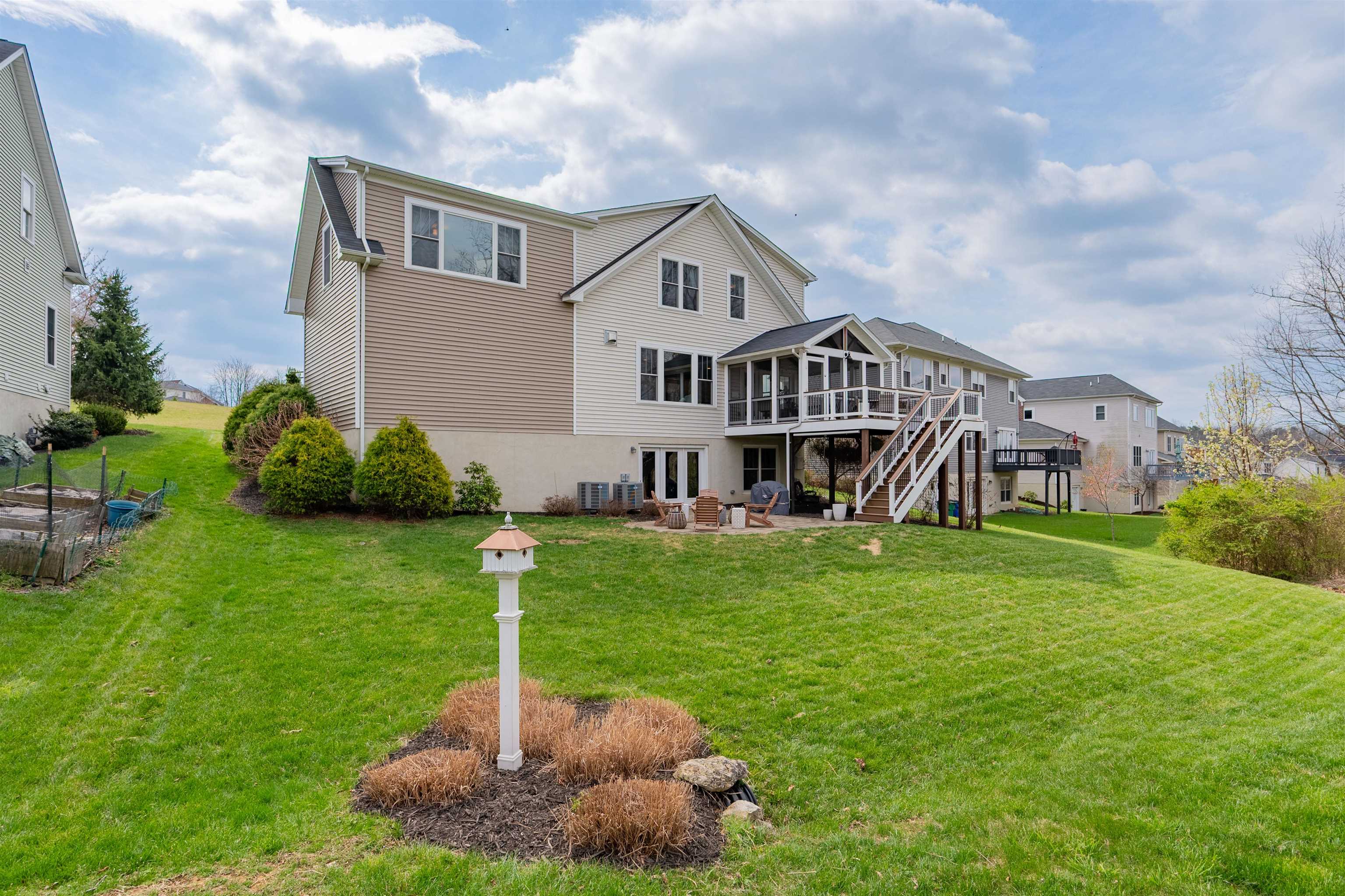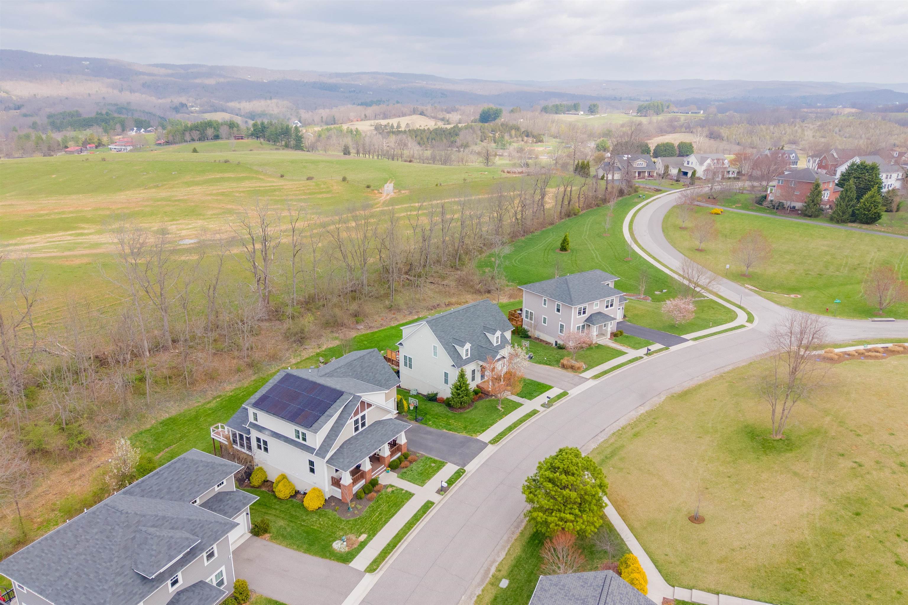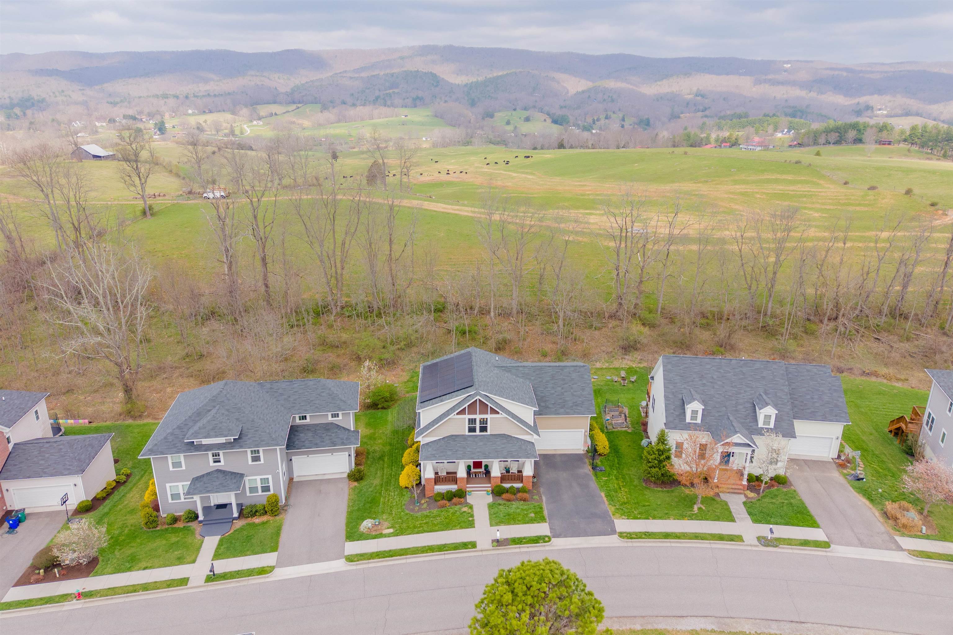 This thoughtfully updated home in the Village at Toms Creek offers a blend of modern comfort and quiet views of neighboring farmland. Just off the vaulted foyer is a main-level office with French doors. The great room offers scenic farm views and is open to the dining area and a gourmet kitchen with granite countertops. Outside, a screened porch overlooks the countryside with stairs down to an expansive deck and patio. The upper level features a spacious primary suite with its own view, a walk-in closet, and a luxury bath, plus three additional bedrooms and a hall bath. Downstairs, the finished basement adds a fifth bedroom, full bath, family room, and a dedicated craft space. With energy-efficient solar panels and a location just a couple miles from downtown Blacksburg and Virginia Tech, this home is ready for a tour today!