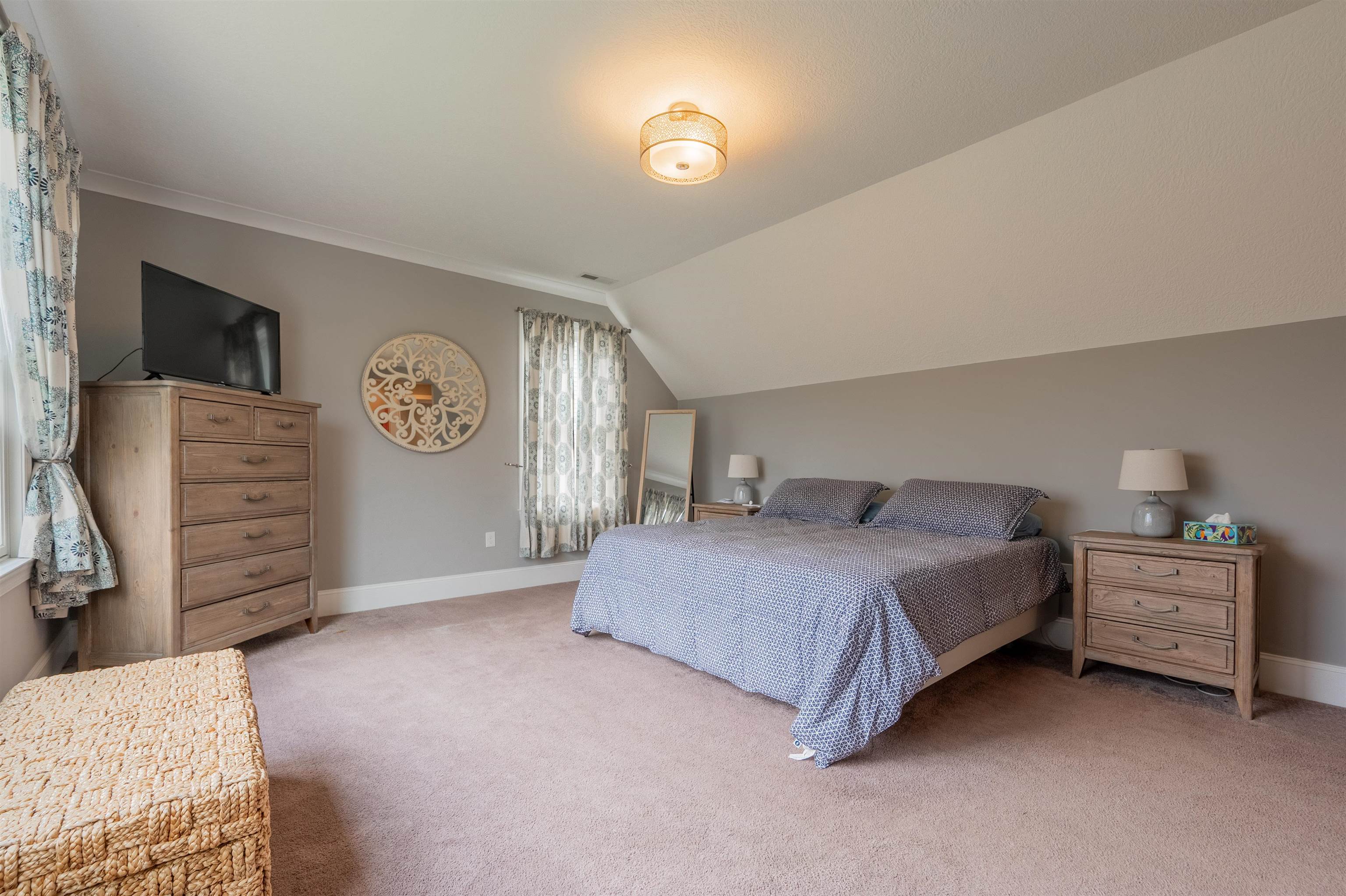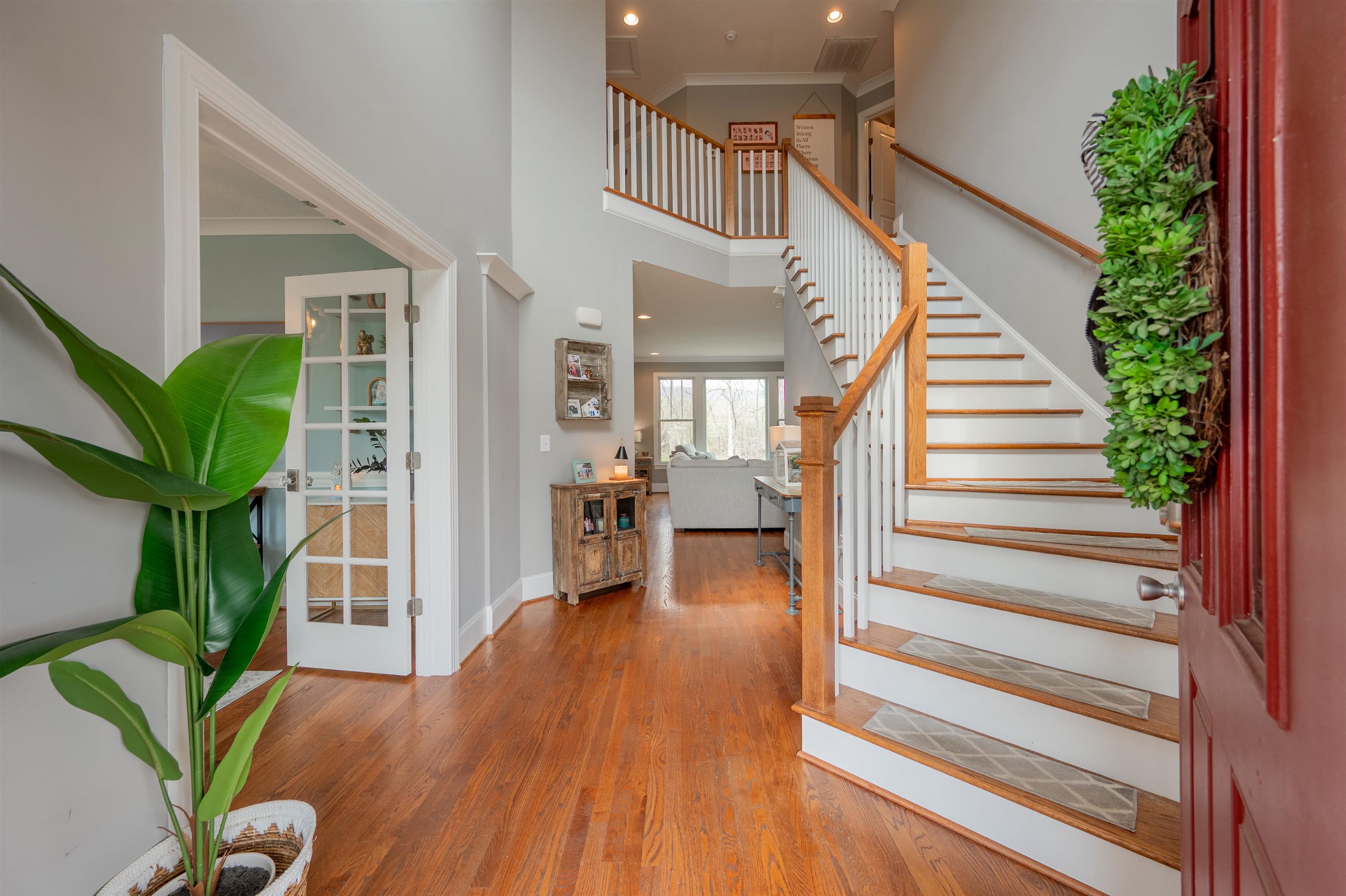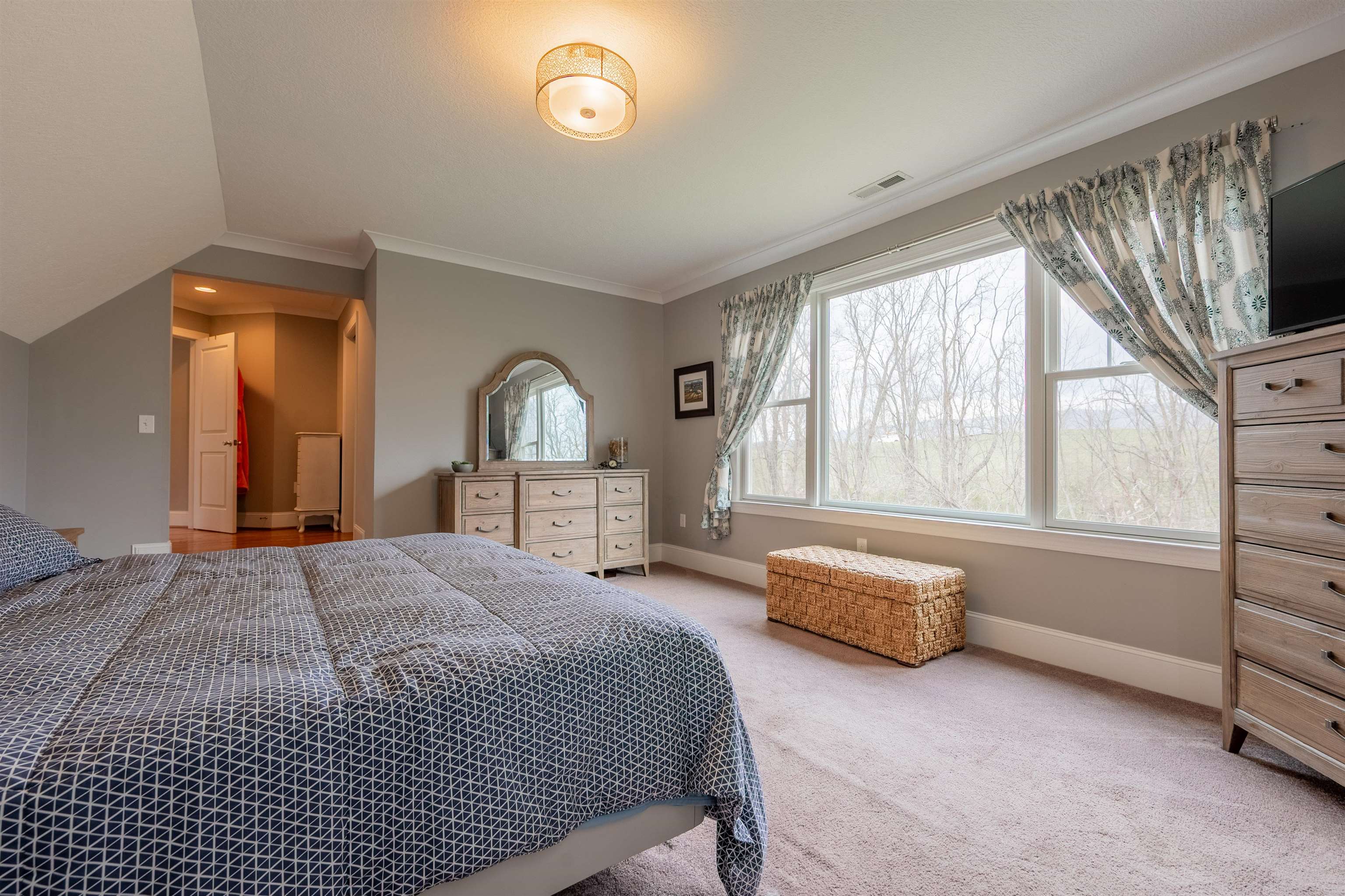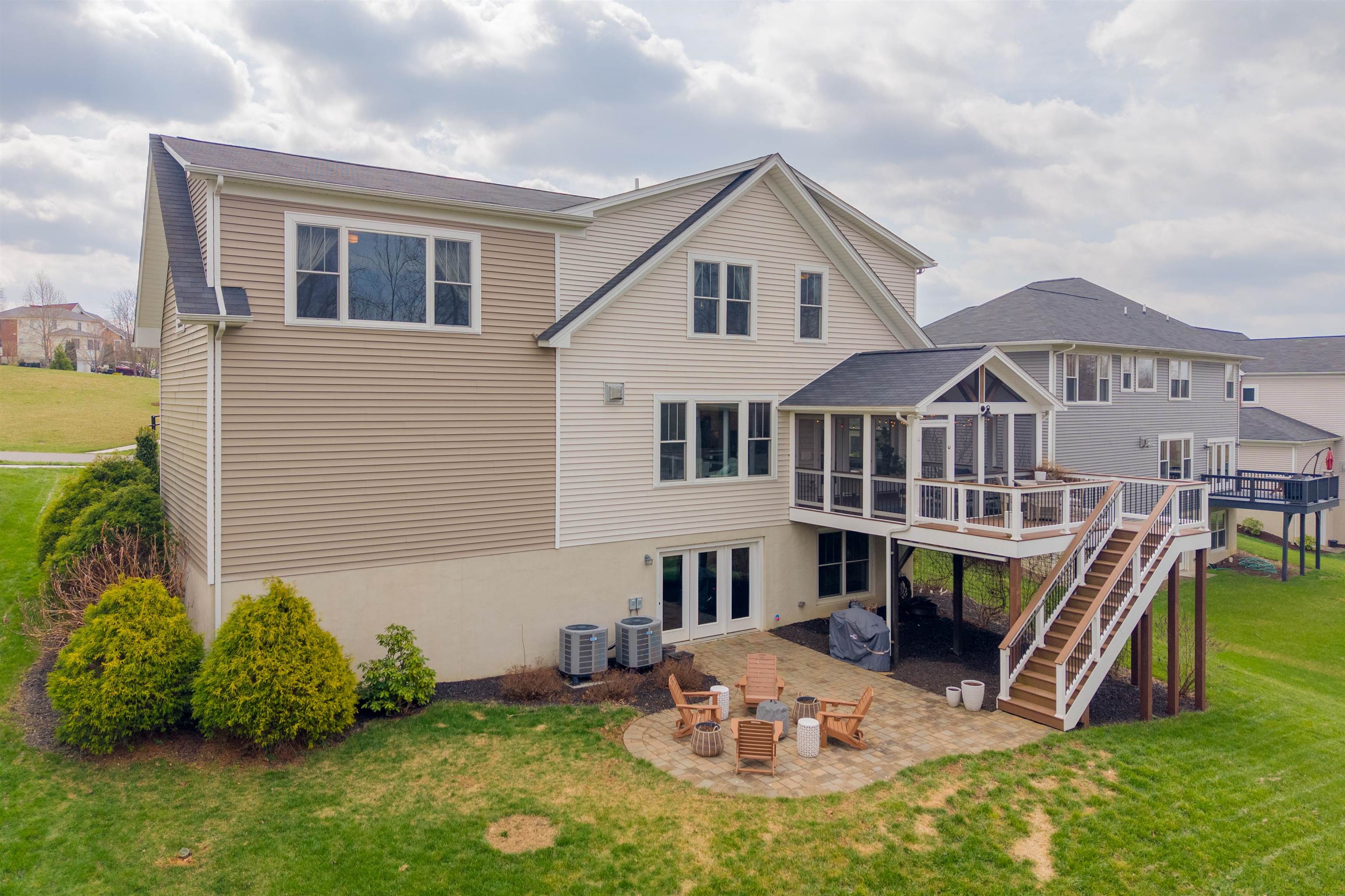 This thoughtfully updated home in the Village at Toms Creek offers a blend of modern comfort and quiet views of neighboring farmland. Just off the vaulted foyer is a main-level office with French doors. The great room offers scenic farm views and is open to the dining area and a gourmet kitchen with granite countertops. Outside, a screened porch overlooks the countryside with stairs down to an expansive deck and patio. The upper level features a spacious primary suite with its own view, a walk-in closet, and a luxury bath, plus three additional bedrooms and a hall bath. Downstairs, the finished basement adds a fifth bedroom, full bath, family room, and a dedicated craft space. With energy-efficient solar panels and a location just a couple miles from downtown Blacksburg and Virginia Tech, this home is ready for a tour today!