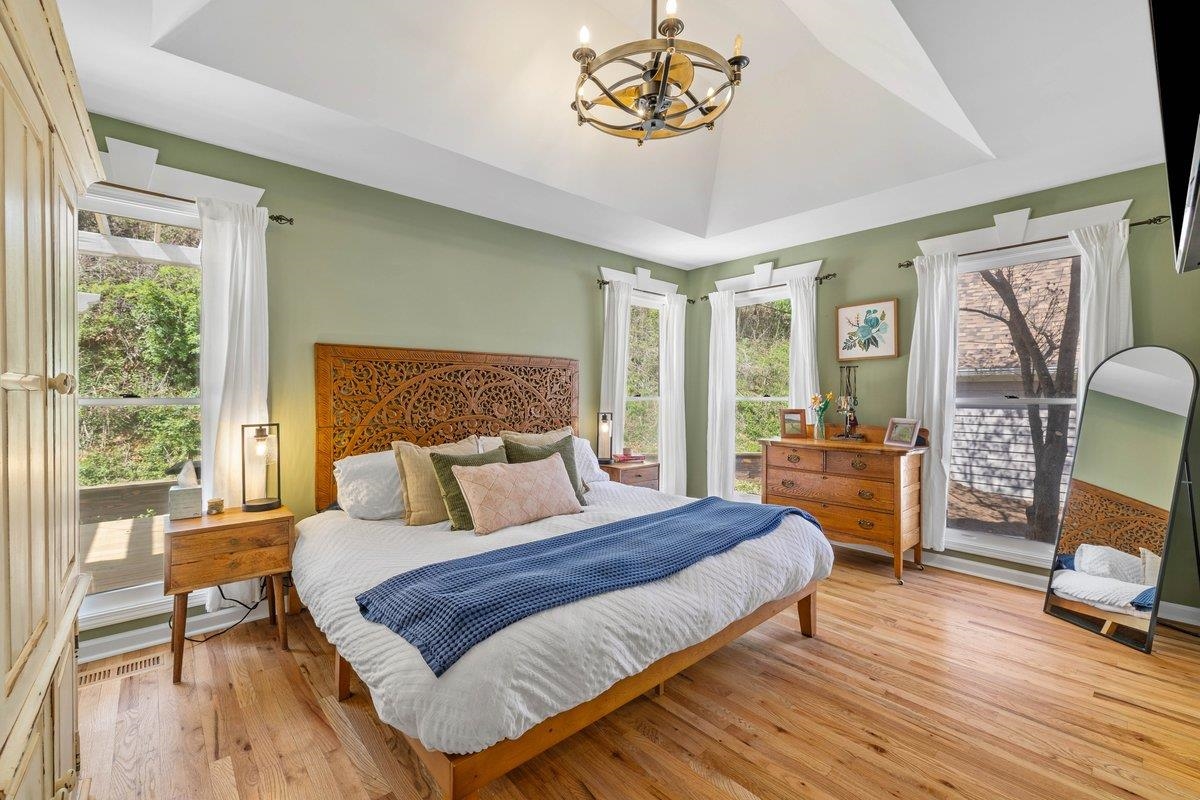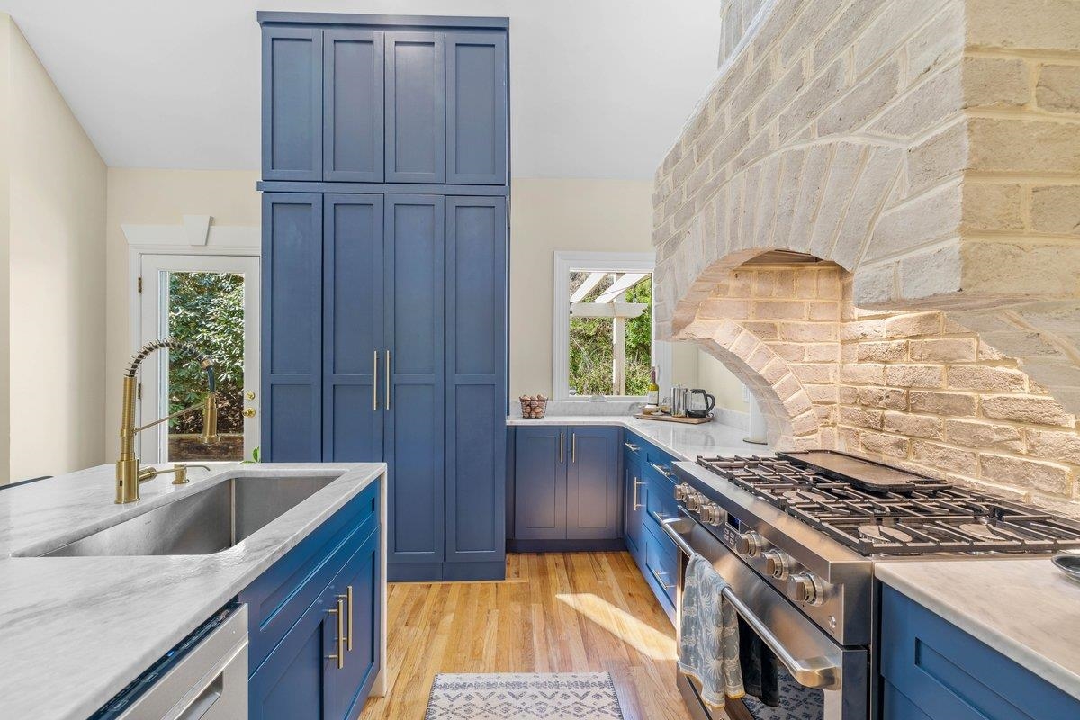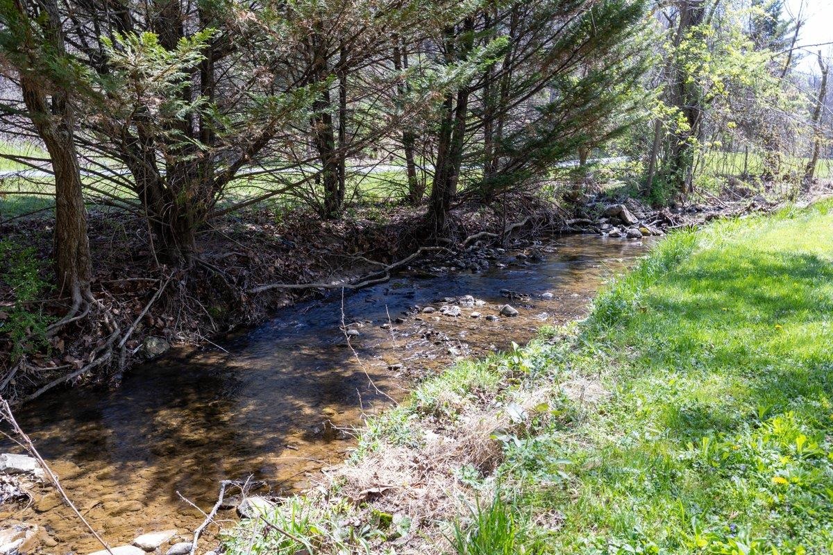 Rare opportunity to own a truly one of a kind home on nearly a 1 acre lot all within Radford city limits. You're certain to be torn between spending your days outdoors, enjoying the creek that runs through the front yard, tending to your chickens or spending the evening around the firepit. While on the inside, newly refinished hardwoods will lead you to this show stopping kitchen, draped in luxury with leathered marble countertops with waterfall edge, walk-in pantry, custom brick range hood and 6 burner gas range. The primary suite is located on the main level featuring tray ceilings, spacious bathroom and lots of natural light. Again, on the main level you'll find an expansive living room complete with custom built-ins. Upstairs are 3 distinctly unique bedrooms and a thoughtfully designed full bath. Last, but certainly not least is a 2 car garage with a bonus loft, perfect for storage or future rec room. Don't miss your opportunity to own one of the most unique properties in Radford!