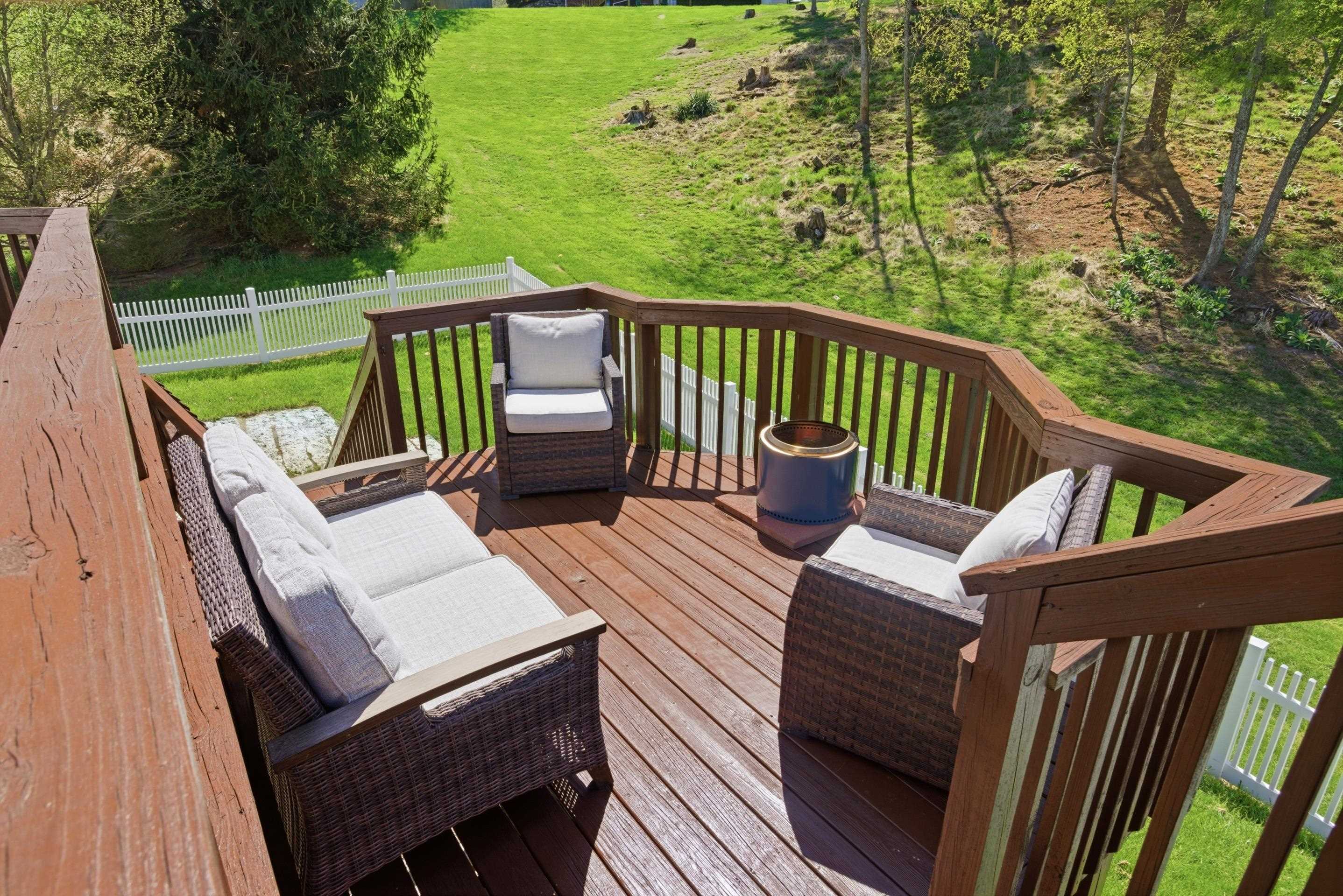 Welcome to this stunning property in the highly desirable Windsor Estates—where comfort, convenience, and scenic views come together beautifully! This spacious 4 bed, 3.5 bath home offers room for everyone, plus a finished lower-level family room perfect for game nights or relaxing for movie nights! Enjoy fabulous sunset views and frequent deer sightings on the large back deck designed for outdoor living, grilling, and entertaining! Step inside to find hardwoods throughout the main level, a spacious living room with recessed lighting, ceiling fans, and a gas fireplace. The kitchen features stainless steel appliances with new quartz countertops, water filter on the sink, and backsplash in 2022 and a new microwave in 2025. Primary suite boasts a WIC and a beautifully updated bath w/ double sinks, new granite countertops, mirrors, light fixtures, and faucets in 2022. Additional features include a fenced yard and double car garage. Don’t miss your opportunity to make all of this yours!!