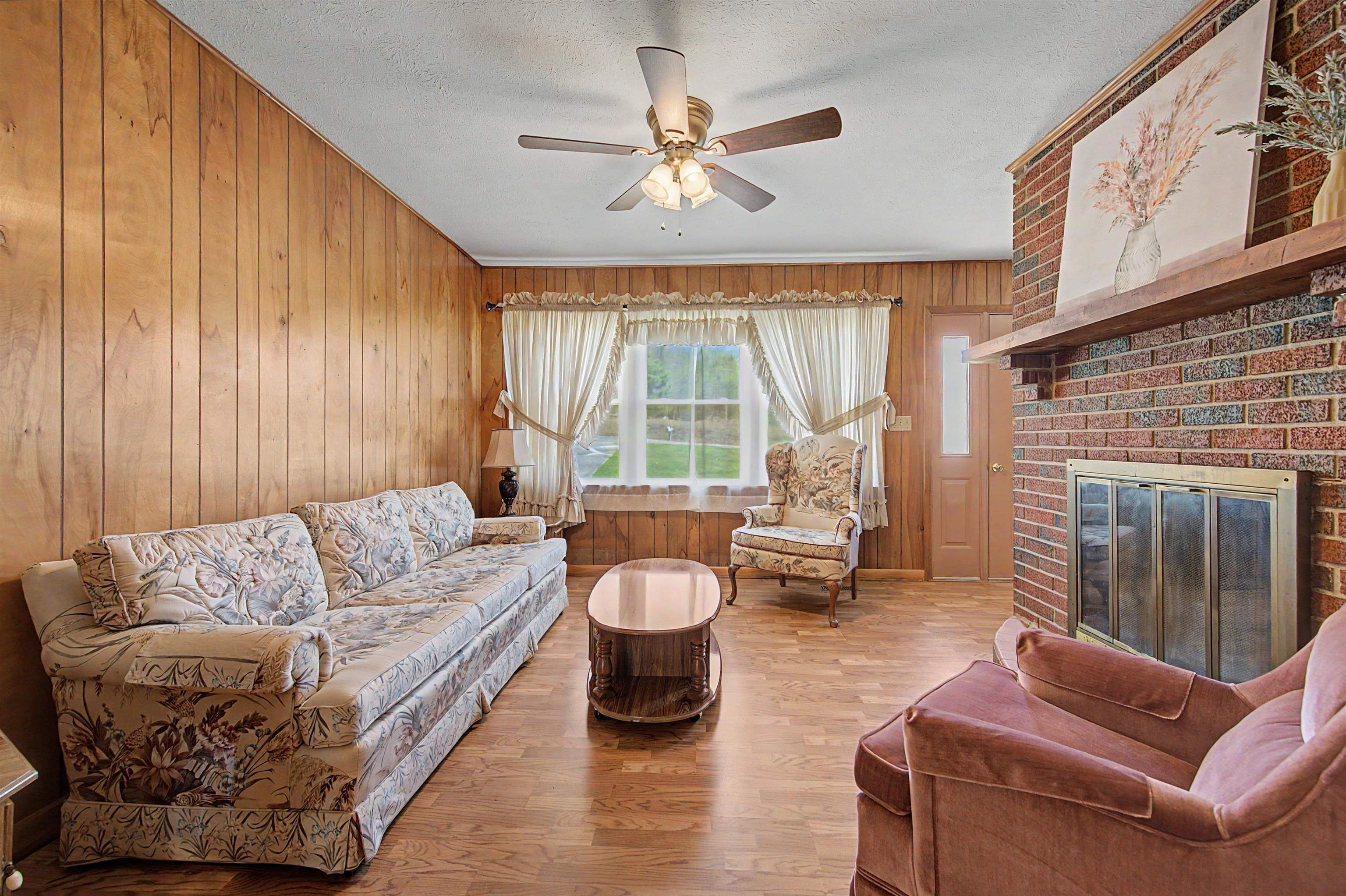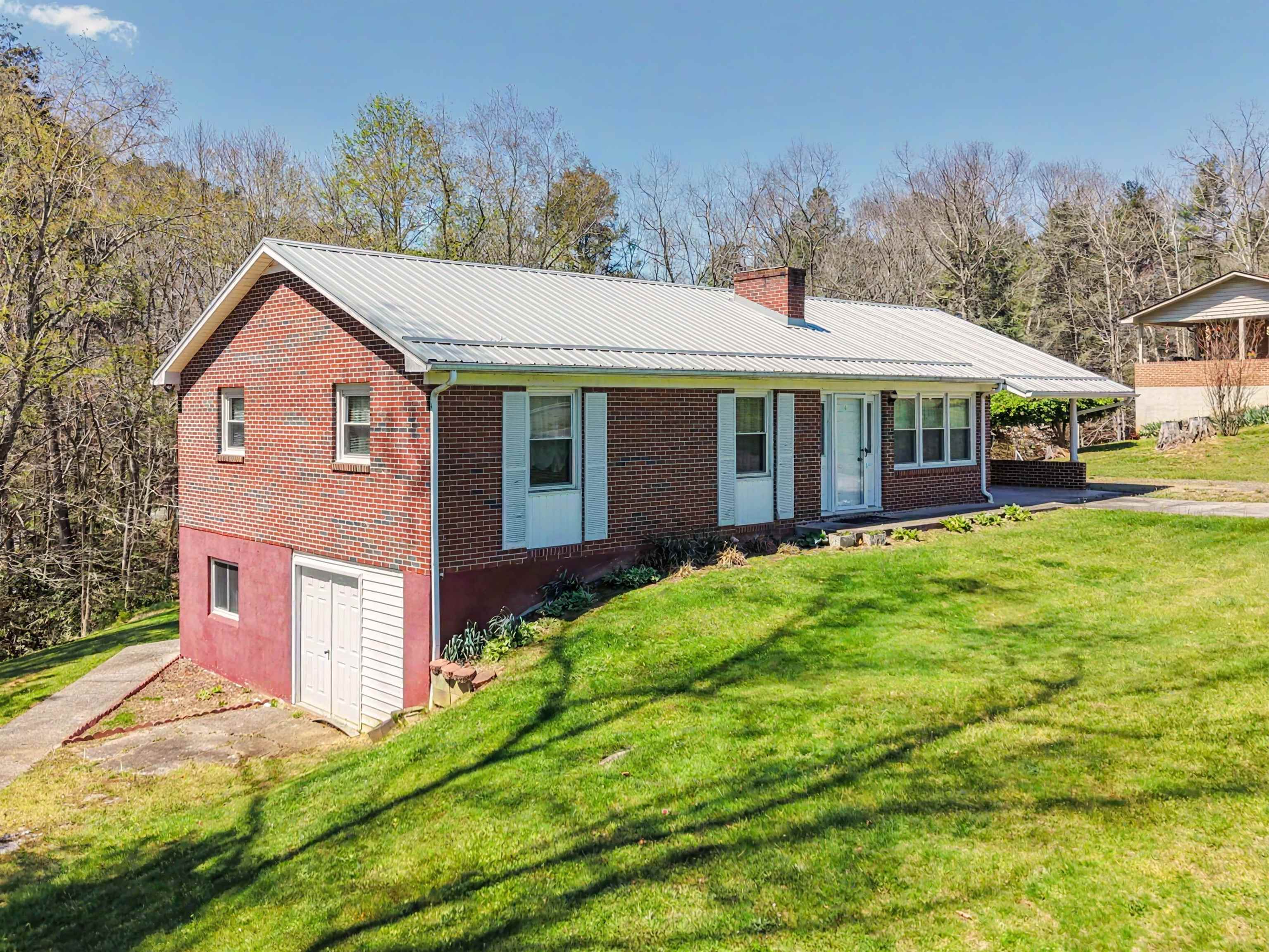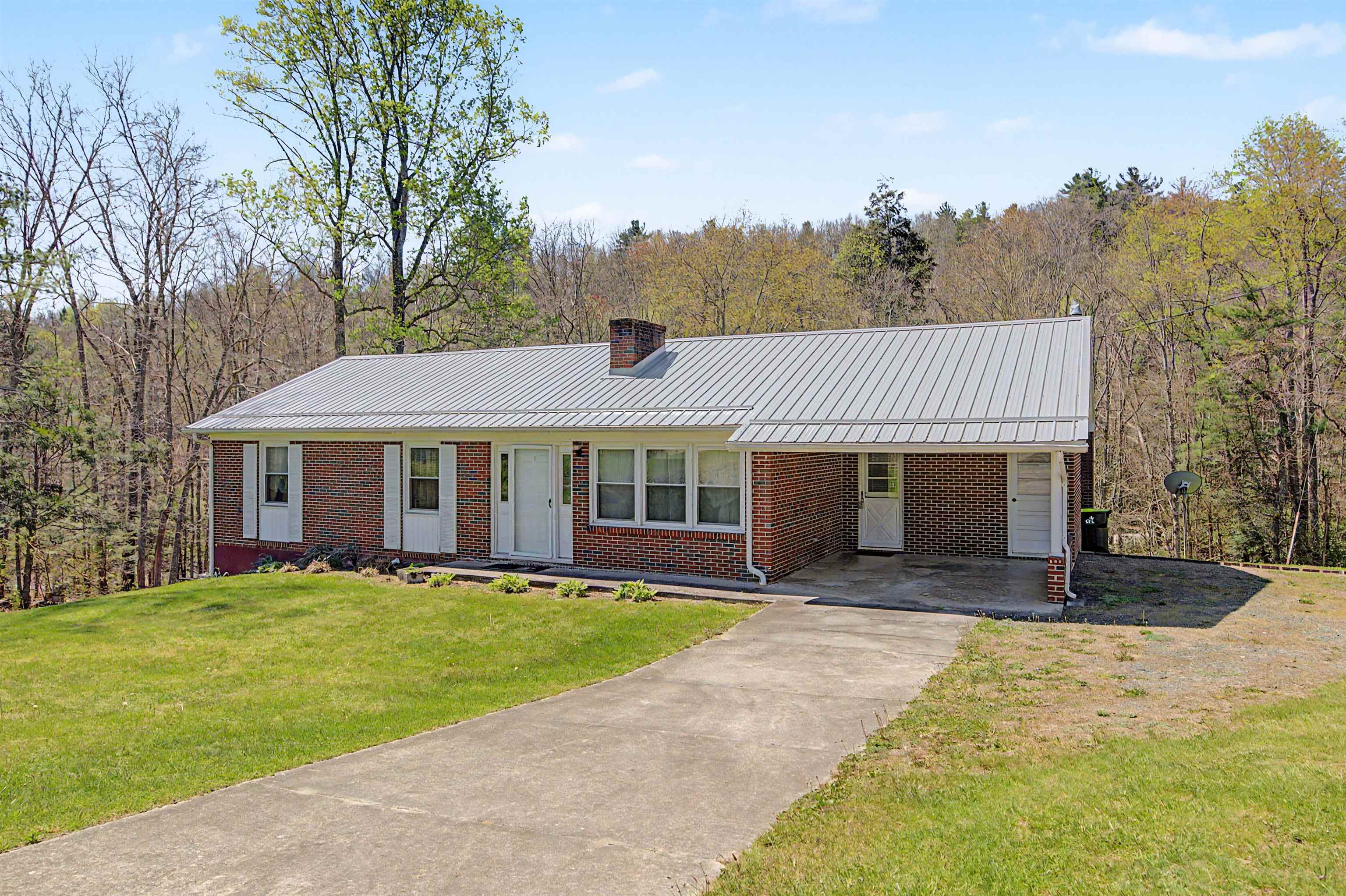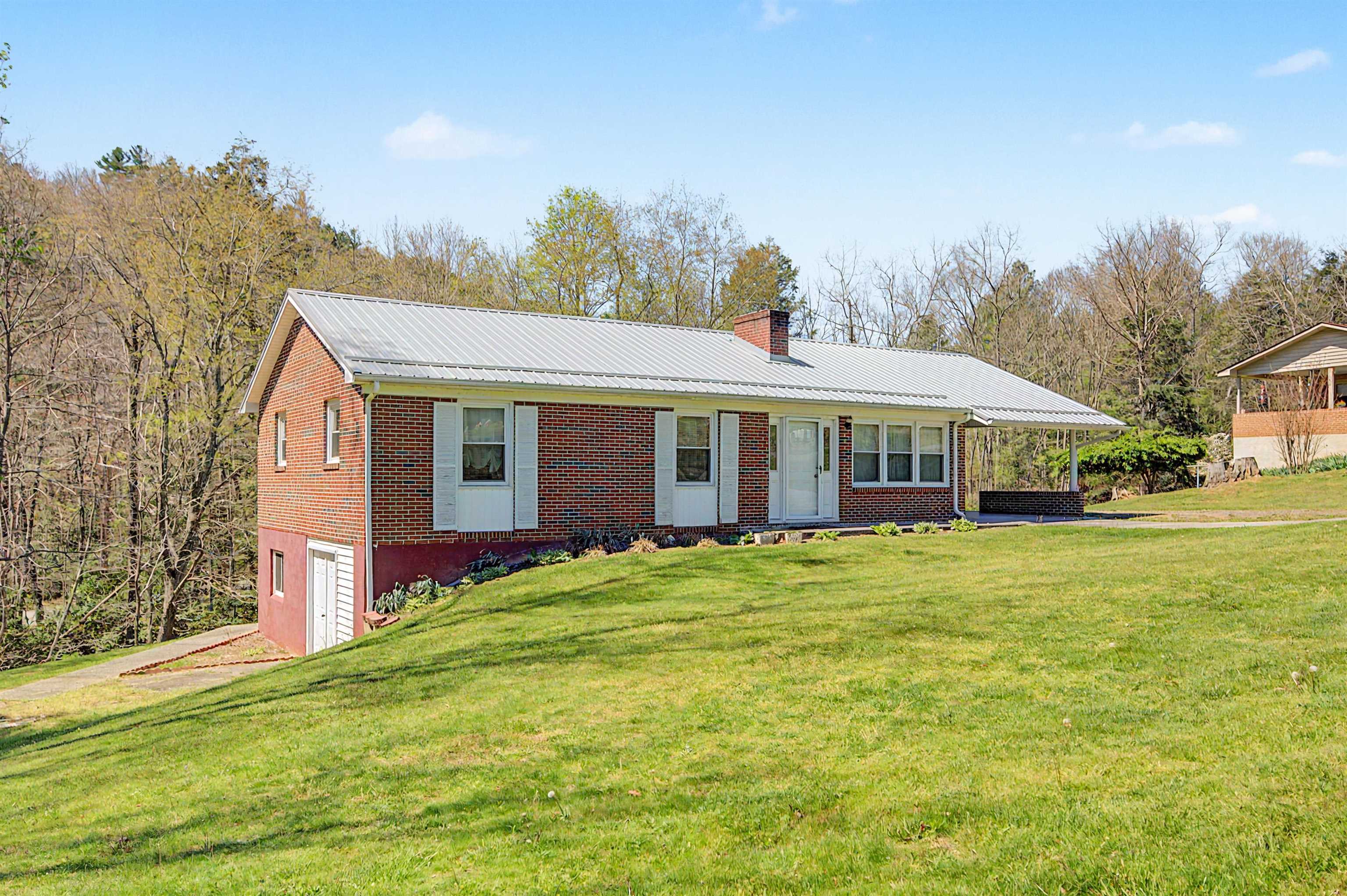 Well-maintained brick ranch in Ivanhoe that has served as a church parsonage for 40 years. Situated on just over 2 acres, this corner lot offers privacy on three sides and features a scenic creek along the back. Located about 20 minutes from Iron Mountain Horse Camp and just minutes from the Jefferson National Forest, with easy access to horseback riding, hiking, fishing, boating, and hunting. Inside features laminated wood flooring, two wood-burning fireplaces, and a spacious kitchen with hickory cabinets and three Lazy Susans. Kitchen remodeled in 2018 and roof replaced within the last 5 years. Full basement with inside/outside access includes a finished bonus room for office or guest space. Heat pump, attached carport, and all furnishings and appliances convey. Suitable for full-time living or short-term rental. Within two hours of Roanoke, Blacksburg, Winston-Salem, and Greensboro.