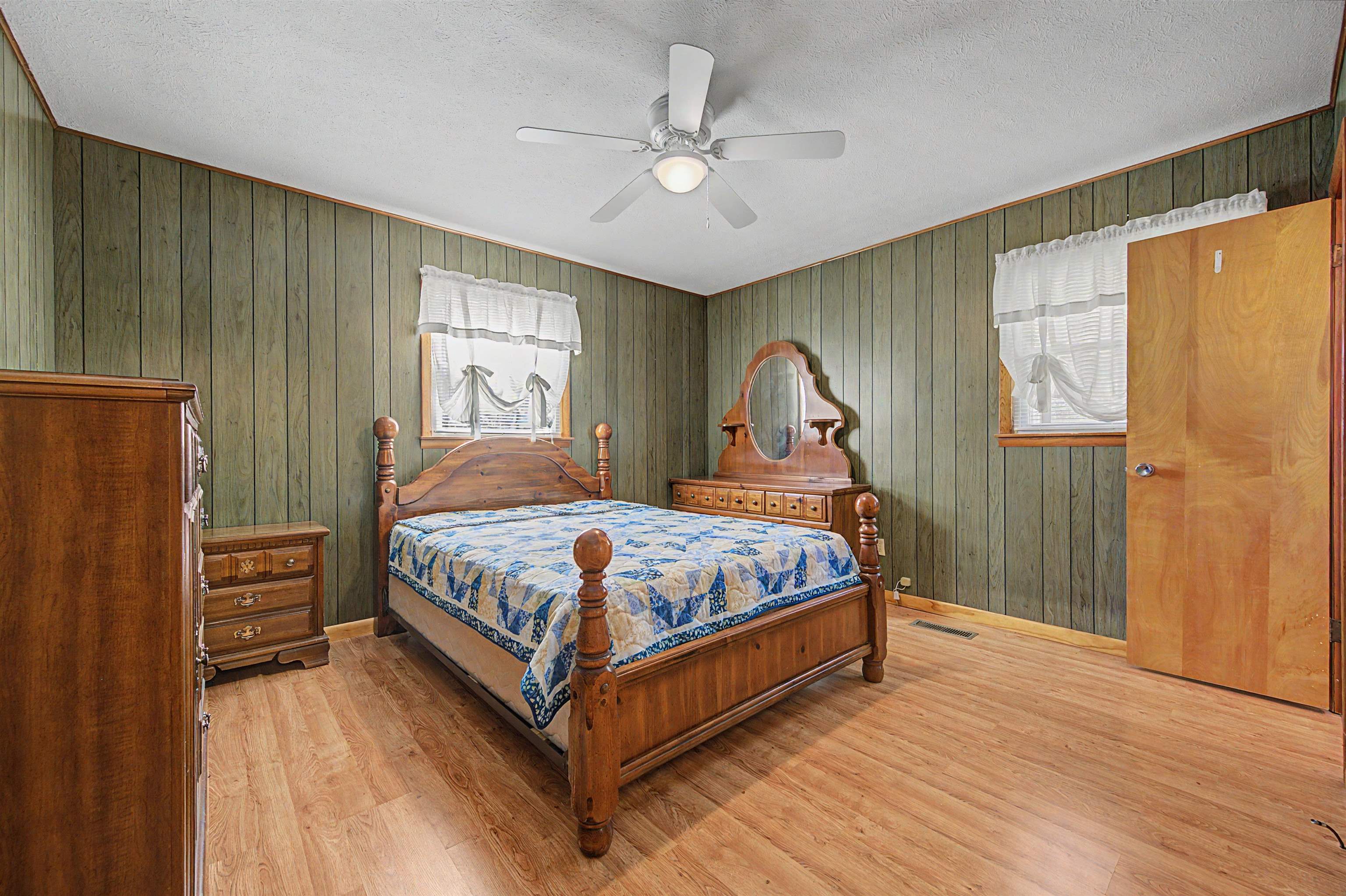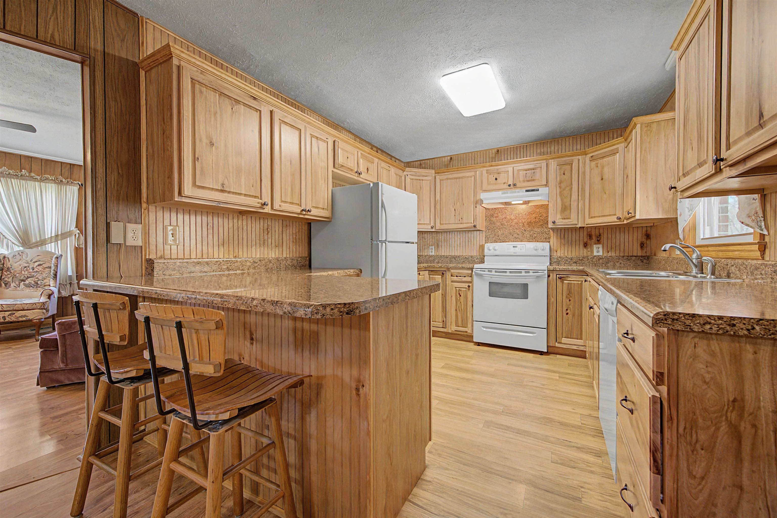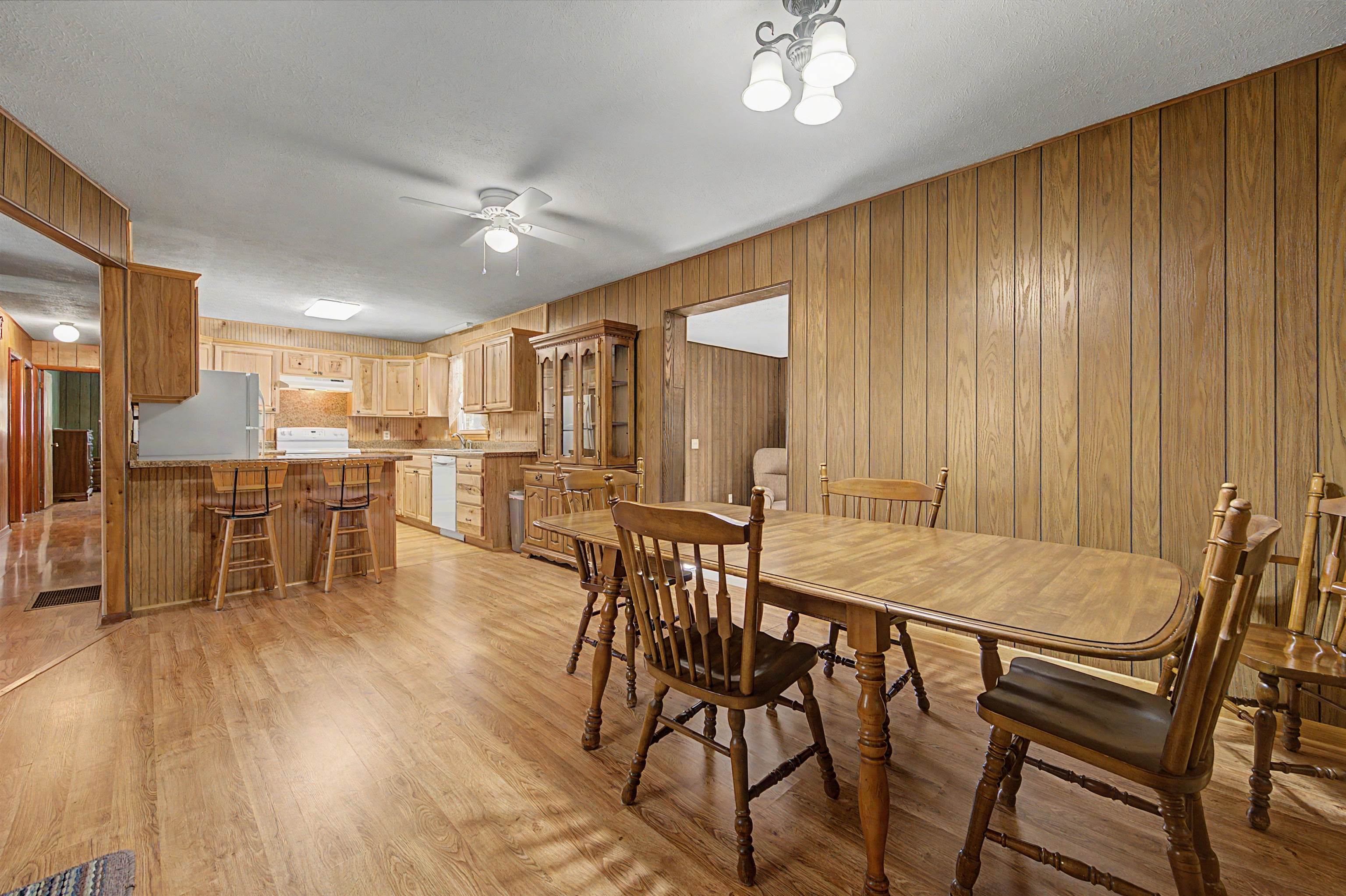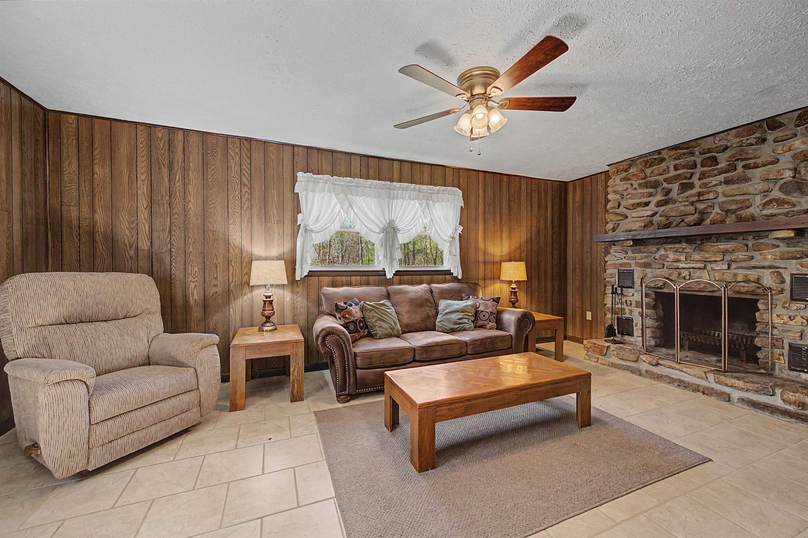 Well-maintained brick ranch in Ivanhoe that has served as a church parsonage for 40 years. Situated on just over 2 acres, this corner lot offers privacy on three sides and features a scenic creek along the back. Located about 20 minutes from Iron Mountain Horse Camp and just minutes from the Jefferson National Forest, with easy access to horseback riding, hiking, fishing, boating, and hunting. Inside features laminated wood flooring, two wood-burning fireplaces, and a spacious kitchen with hickory cabinets and three Lazy Susans. Kitchen remodeled in 2018 and roof replaced within the last 5 years. Full basement with inside/outside access includes a finished bonus room for office or guest space. Heat pump, attached carport, and all furnishings and appliances convey. Suitable for full-time living or short-term rental. Within two hours of Roanoke, Blacksburg, Winston-Salem, and Greensboro.