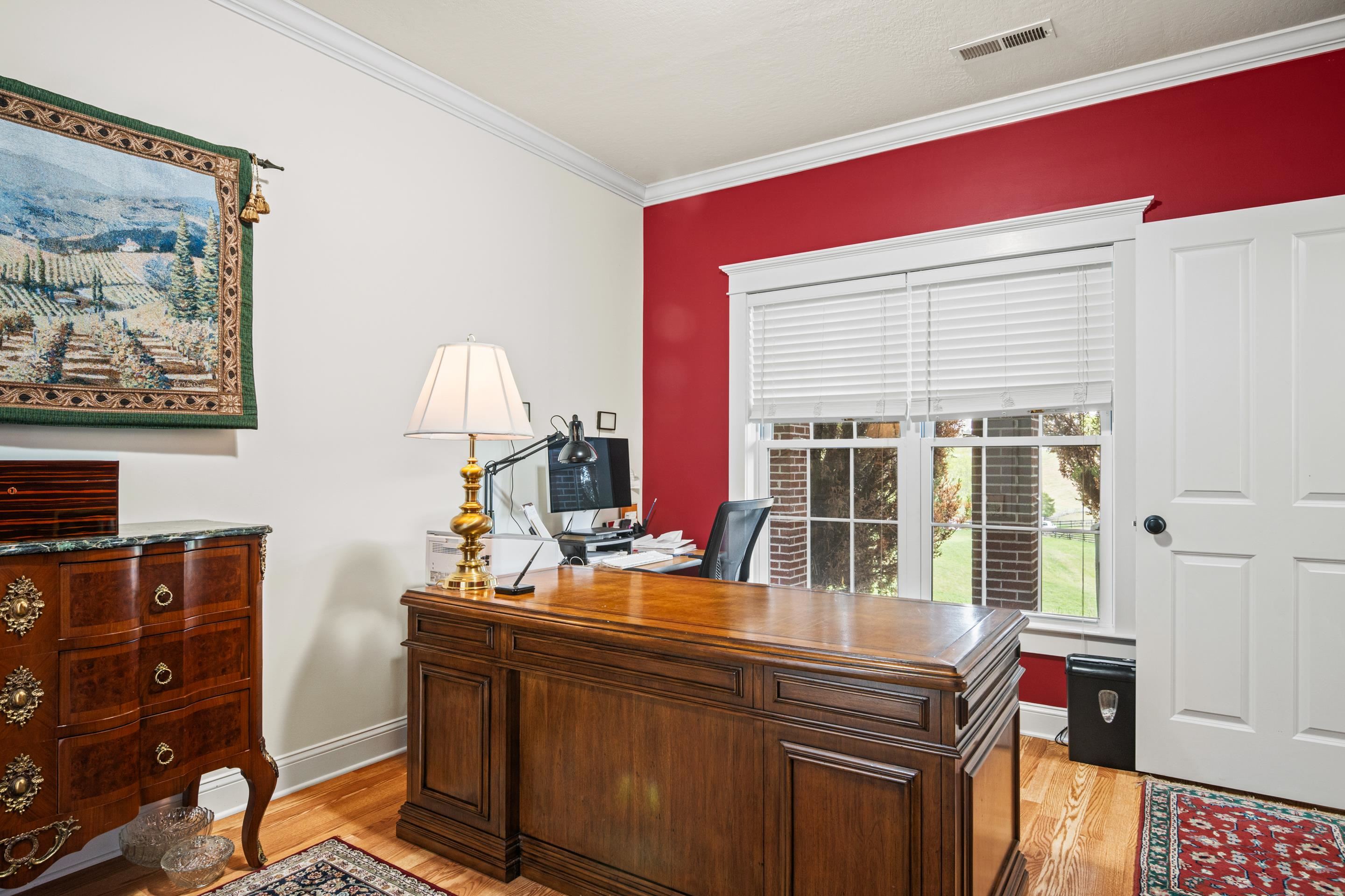 Nestled on nearly 6 acres in the coveted Smith Creek Subdivision, this stunning 2,500 sq. ft. home at 1471 Red Hawk Run combines premium craftsmanship with modern comfort. The residence features 4 bedrooms and 3.5 baths, including an upper-level primary suite with a walk-in closet and a private basement guest suite with its own full bath. Built with 6" framed exterior walls, the home boasts 9' ceilings, crown molding, and select-grade hardwood floors throughout. The gourmet kitchen is a chef’s dream, outfitted with custom cherry cabinets, granite countertops, stainless appliances, and an exterior vented range hood. Relax by the vented gas fireplace in the family room or enjoy the outdoors from the expansive 48' covered front porch. The property offers exceptional utility with upper and lower asphalt driveways, a 2-car garage, and a fenced backyard. This Christiansburg gem perfectly balances high-end interior finishes with the tranquility of a massive, private lot. Call to tour today!
